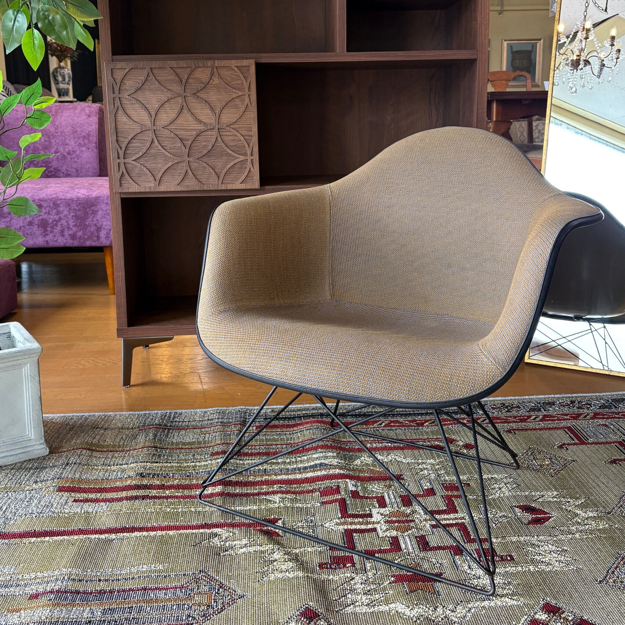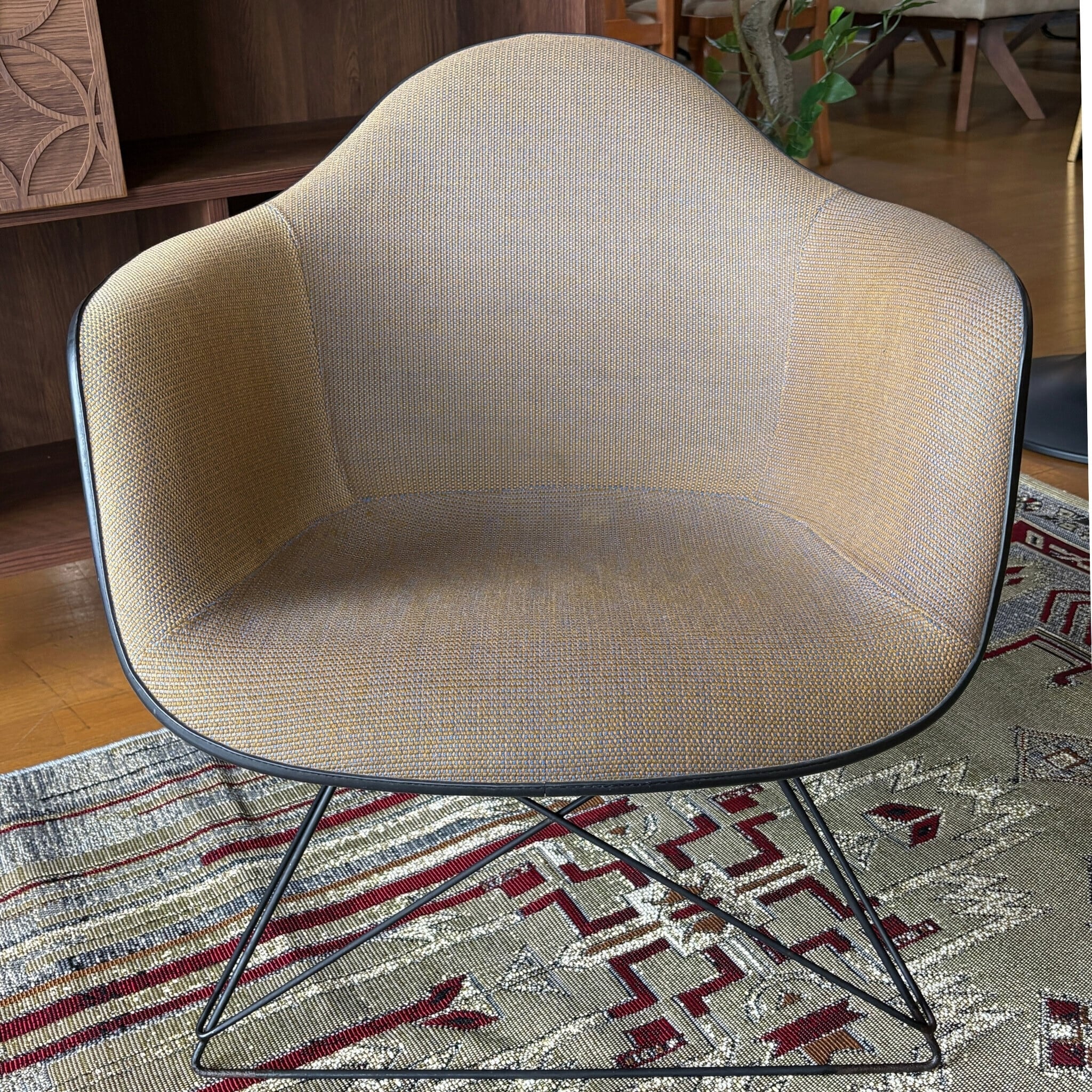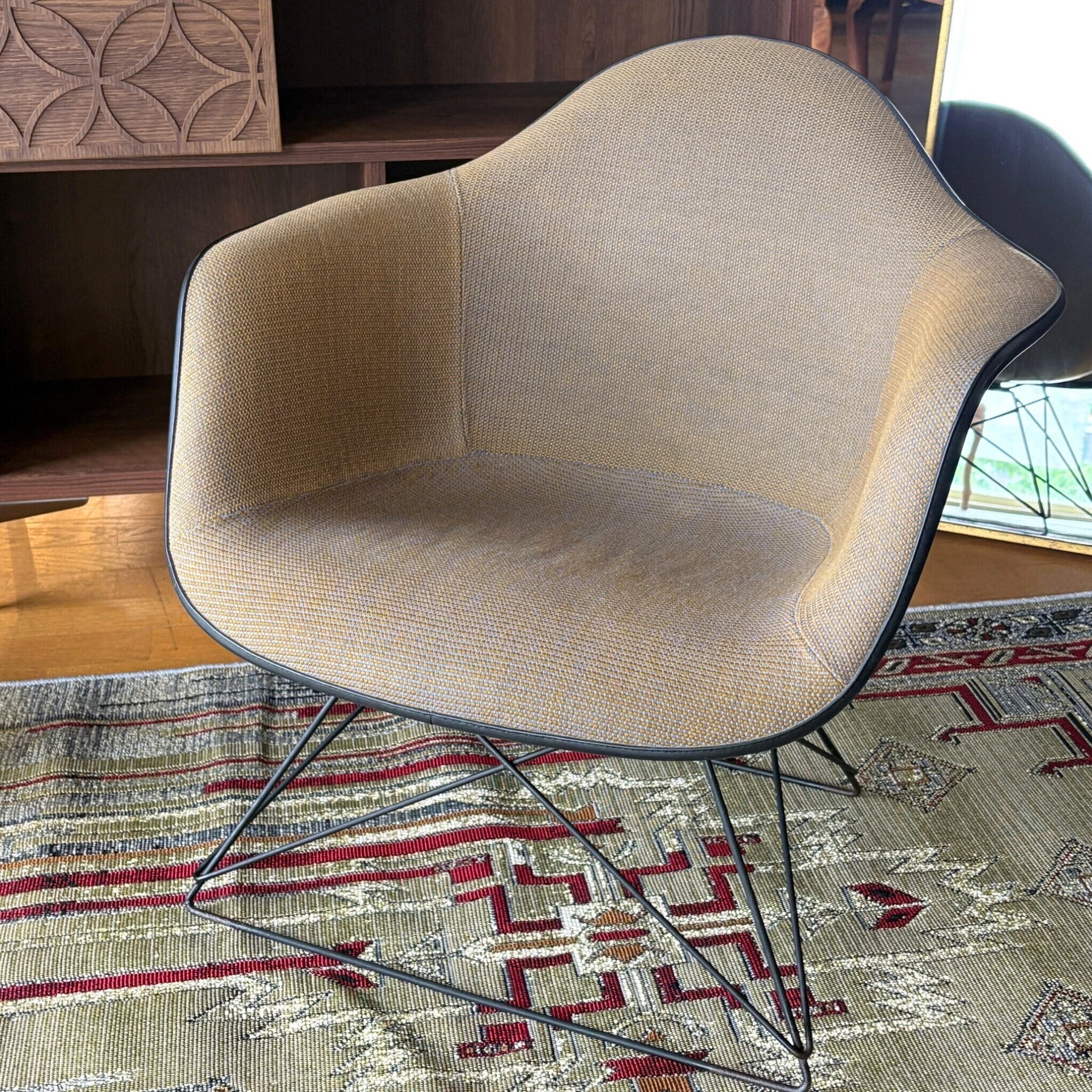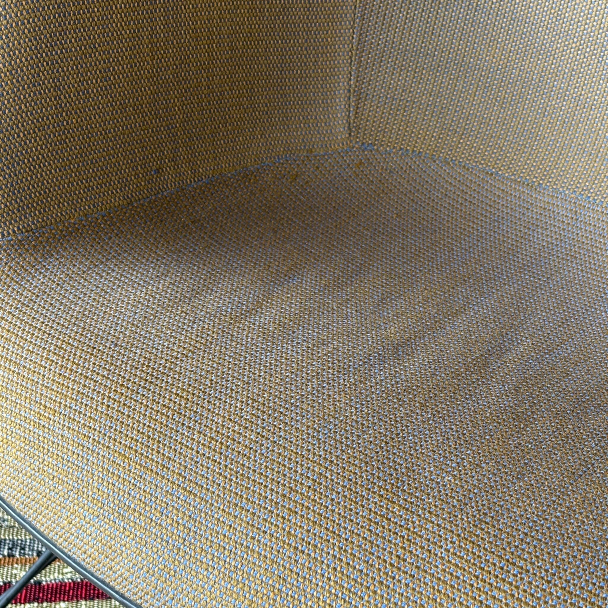 FRP製のヴィンテージシェルチェア自体が高値で取引されますが、そこに「張りぐるみ」という要素が加わることでさらに価値が上がります。オリジナルのファブリックがここまで綺麗な状態で残っているのは珍しいです。
