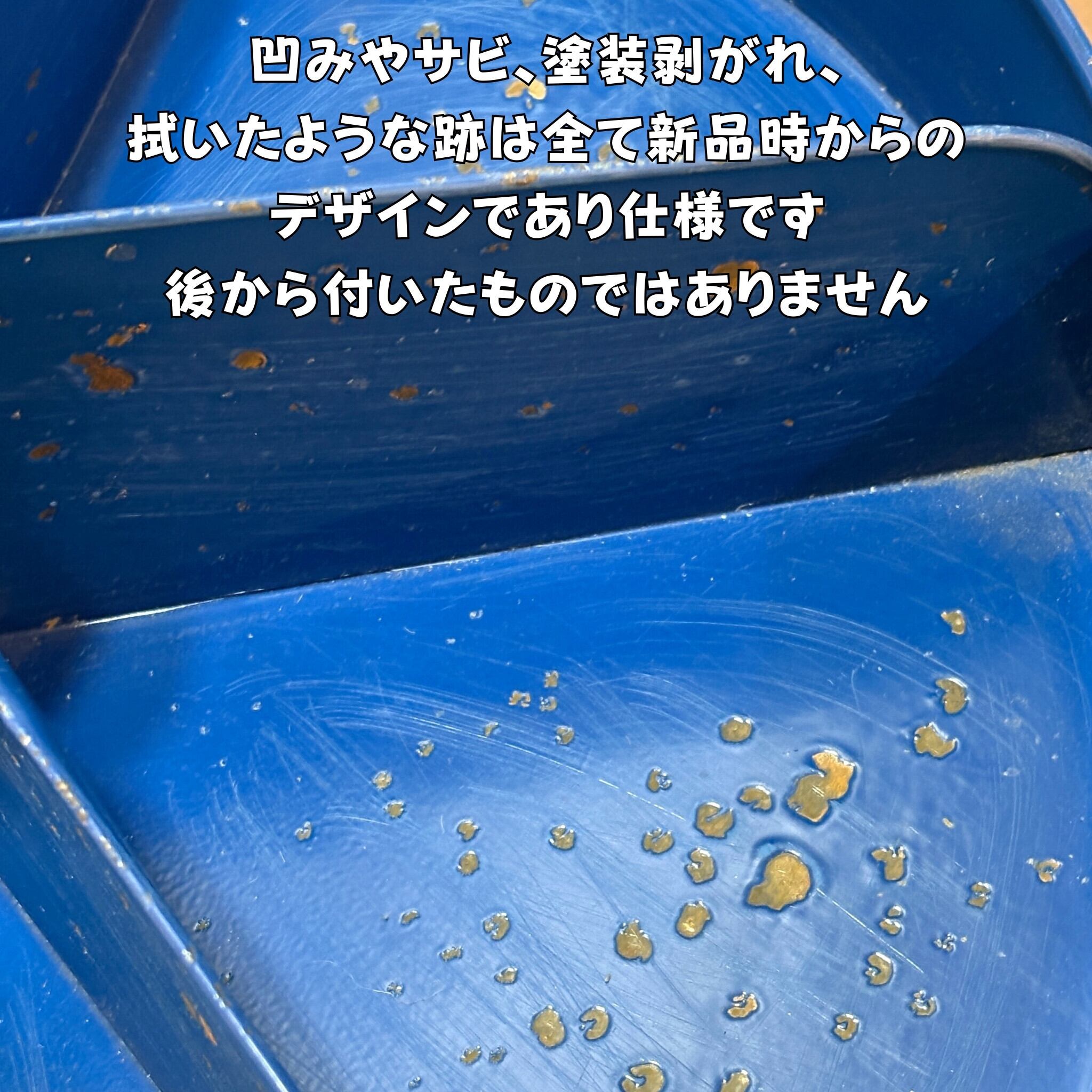 鮮やかなインダストリアルブルーのボディにはDULTONならではのエイジング加工が施されています。塗装の剥がれ、サビ、凹み、使い込んだような拭き跡は全てデザインの一部であり後から付いた傷や汚れではございません。このユーズド感が唯一無二のヴィンテージスタイルを演出します。