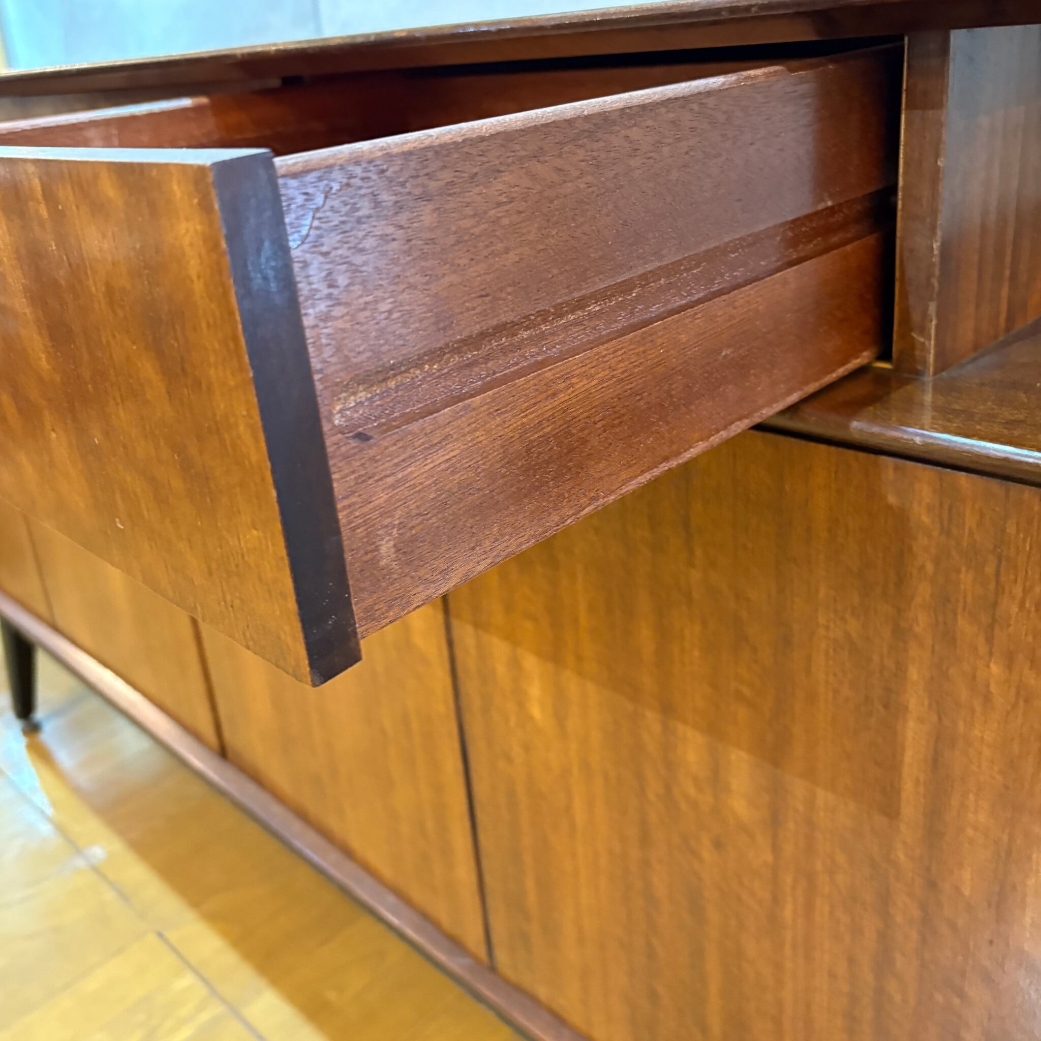 1958年から1960年代頃にE. Gomme社によって製造されたこのサイドボードは、当時のイギリス・ミッドセンチュリーデザインの象徴とも言える逸品です。