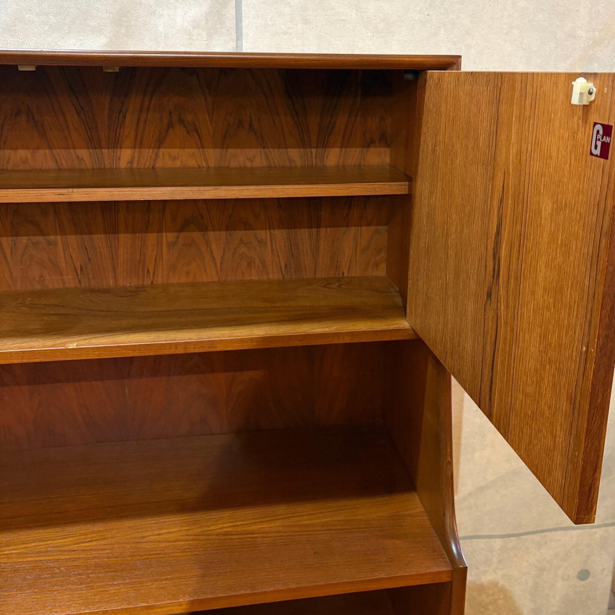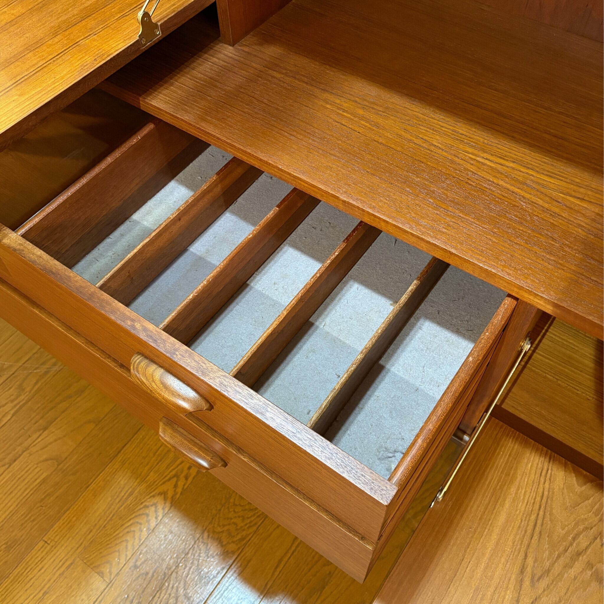 内部の棚板や引き出しも当時の実用性を考慮してしっかりと作られており日常使いにも充分耐えうる堅牢さを持っています。そしてこのキャビネットが本物のG-PLANヴィンテージである証としてロゴがデザインされたシールがしっかりと残されています。 これは当時からのオリジナル性が保たれていることの貴重な証です。