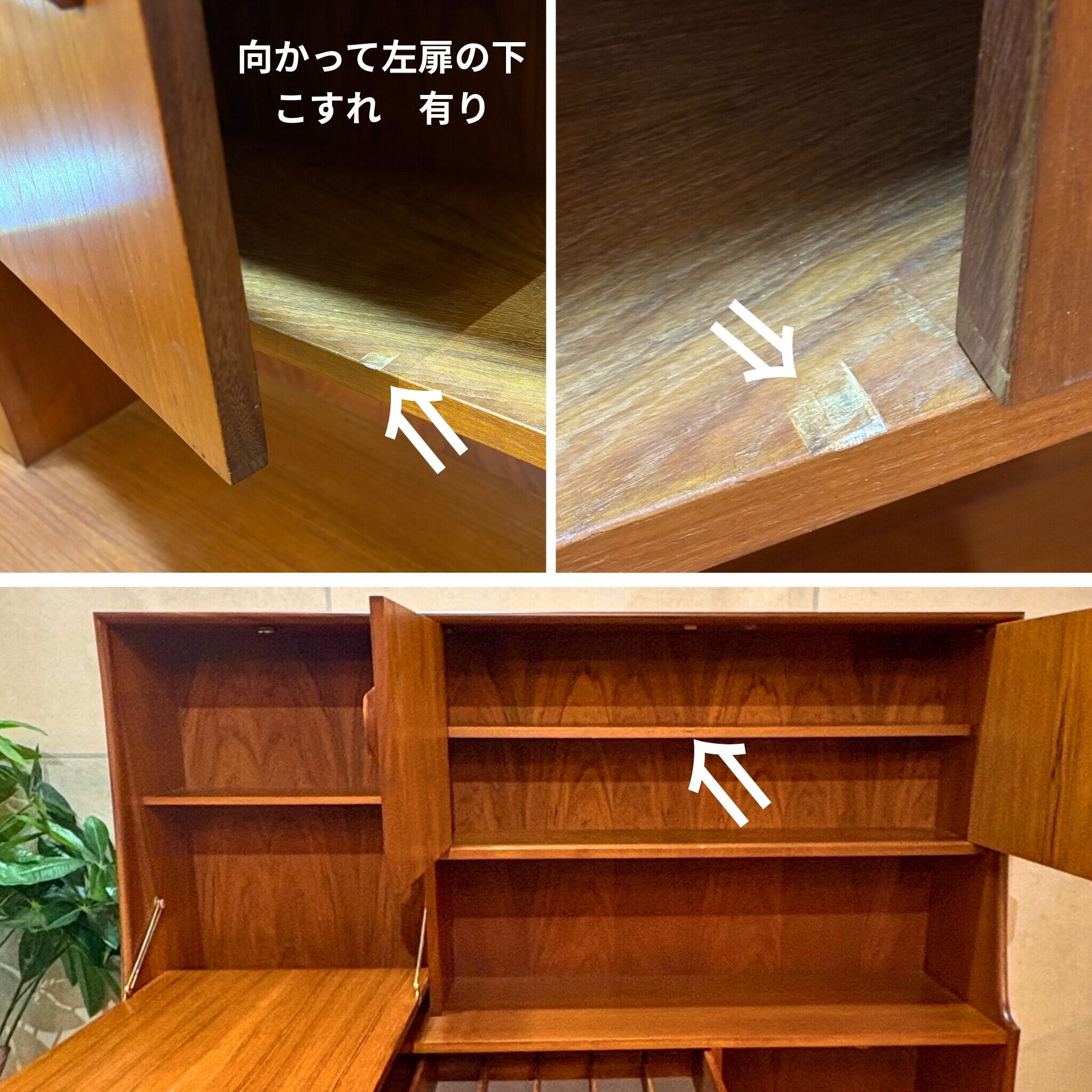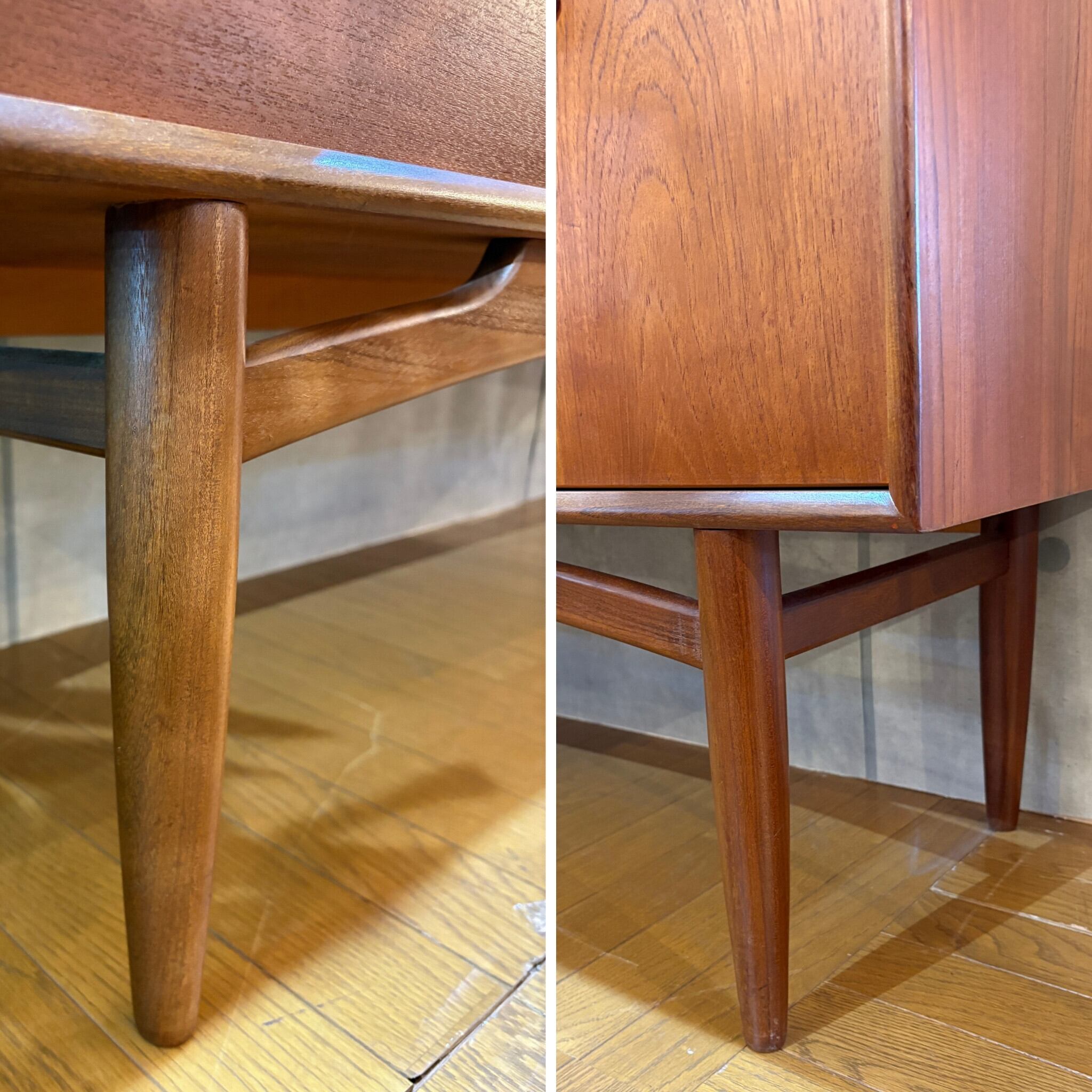 特徴: 扉と引き出し前面の彫刻的な波状デザイン(リップルデザイン)、G-PLANロゴシール残存
