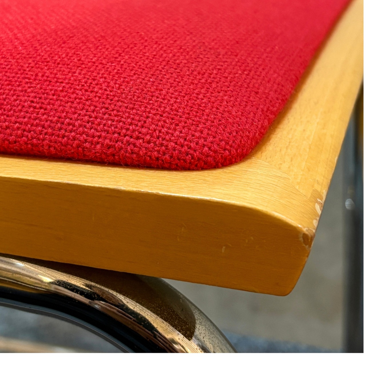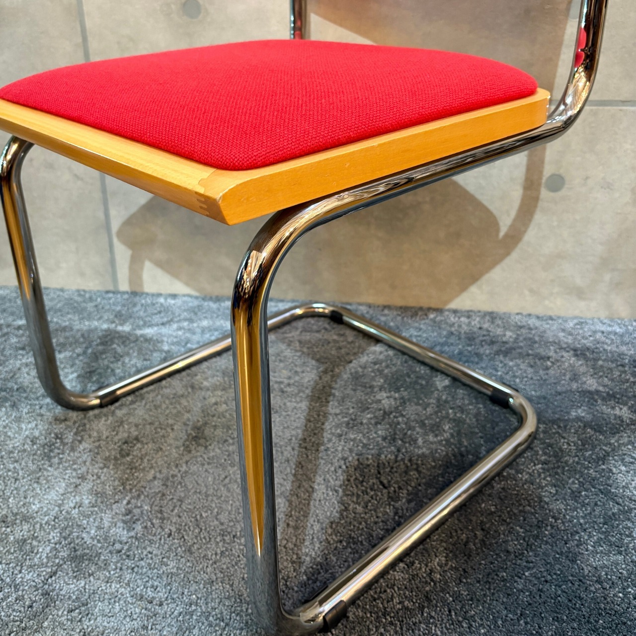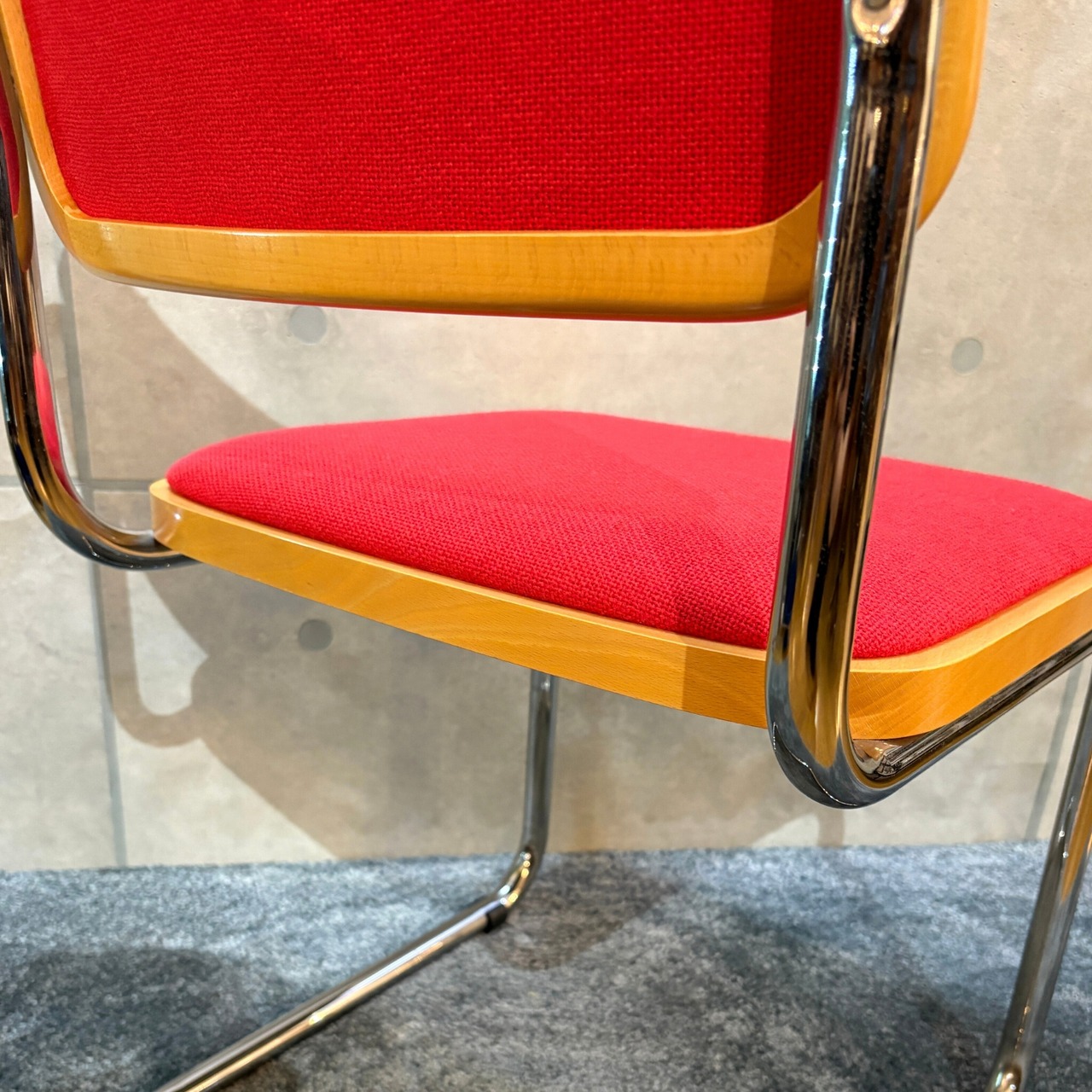 【USED】リプロダクト マルセル・ブロイヤー チェスカチェア (Cesca Chair) | イタリア製 ファブリック張り ブナ材 ダイニングチェア レッド