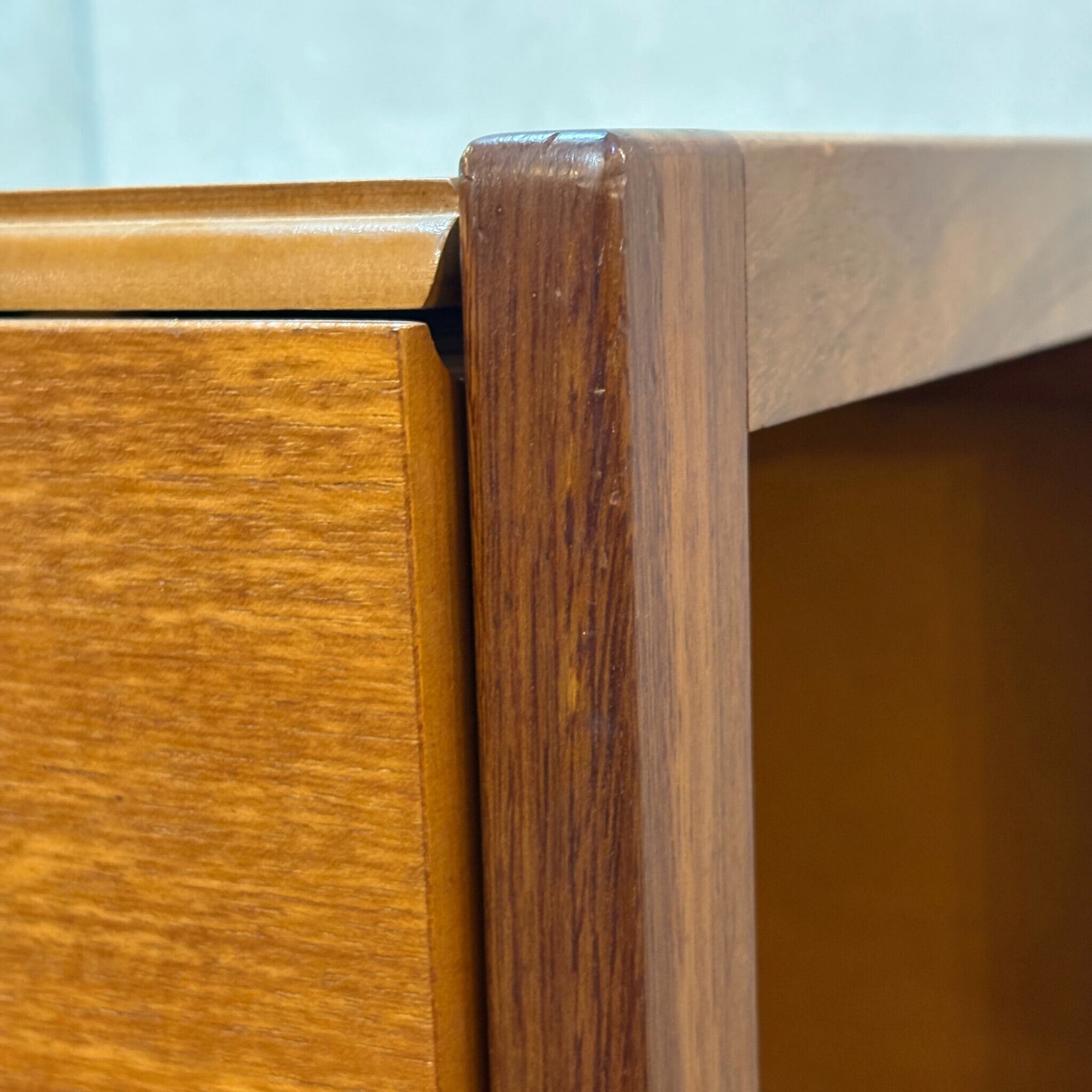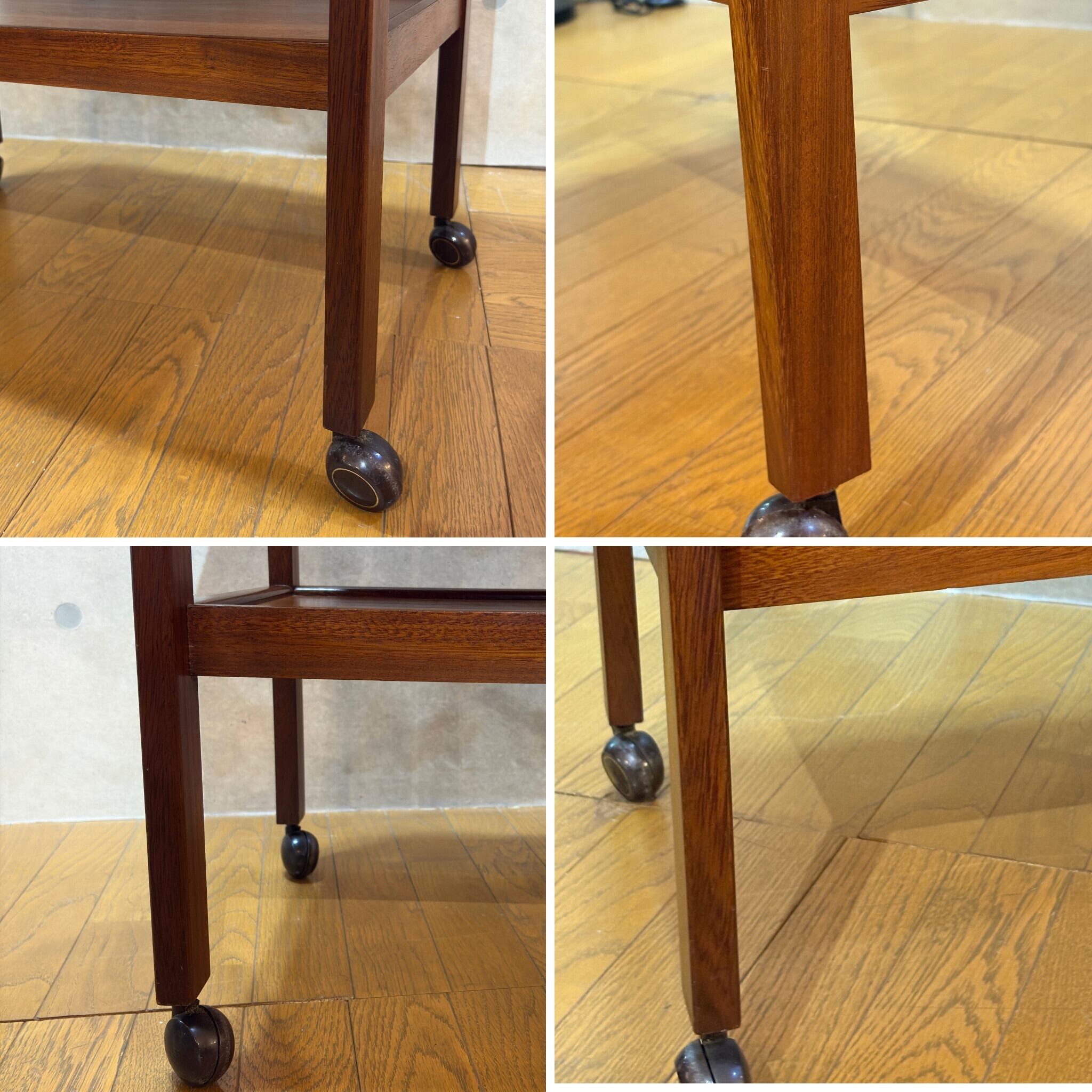 このワゴンは当時高級家具の素材として多用された希少なチーク材がふんだんに使用されています。チーク材は木目が美しく耐久性や耐水性に優れることから「木の宝石」とも呼ばれています。時を経て深みを増した飴色の美しい木肌はヴィンテージならではの存在感を放ち、空間を格調高く彩ります。