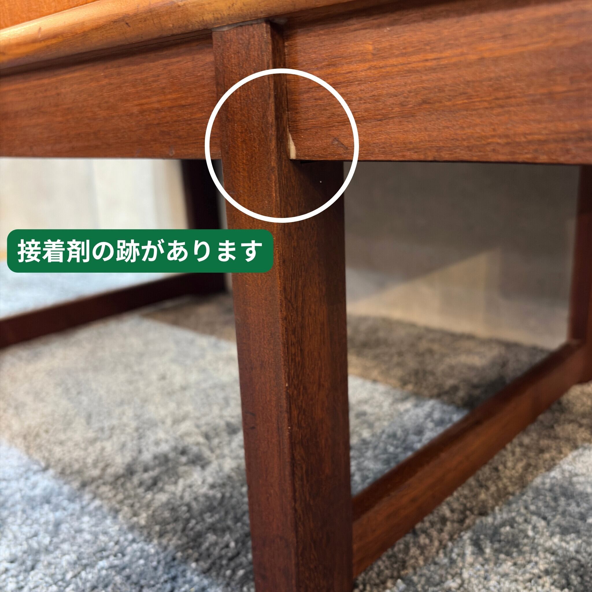 主材には当時高級家具の素材として多用された希少なチーク材が使用されています。木目が美しく耐久性にも優れるチーク材は時を経るごとに深みを増す飴色の木肌がヴィンテージならではの温かい雰囲気を醸し出します。