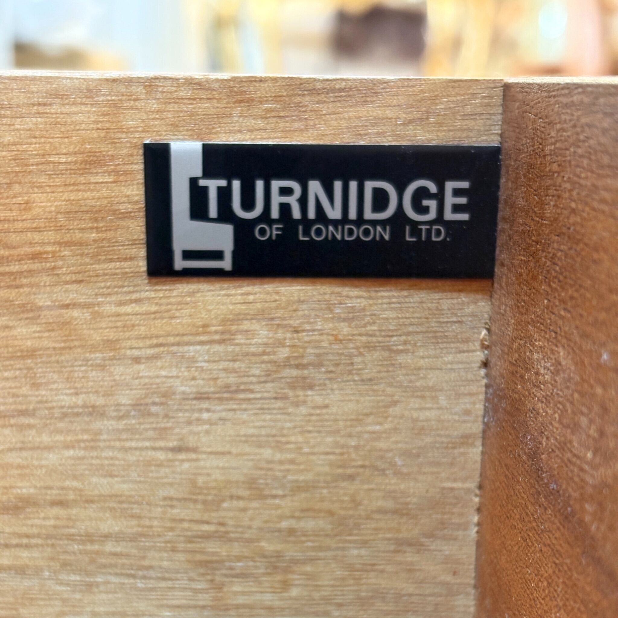 イギリスのミッドセンチュリー期に活躍した家具メーカー、TURNIDGE(ターニッジ)のヴィンテージキャビネットが入荷しました。ロンドンを拠点に高品質な家具を製造していたブランドで引き出し内部には当時のロゴプレートが残っています。