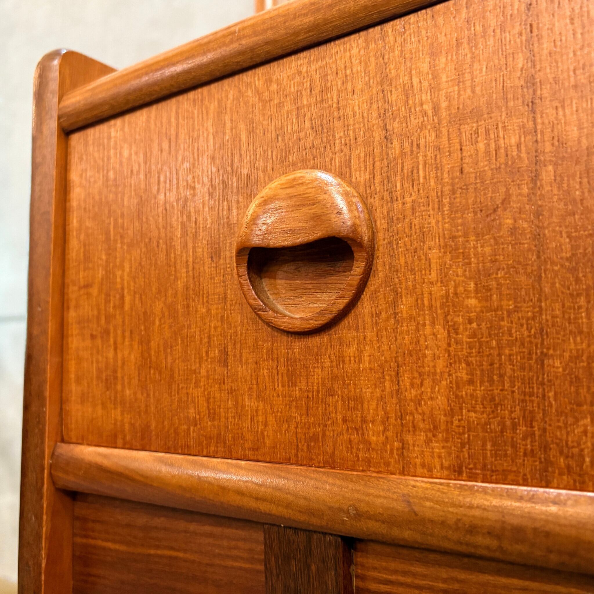 特徴: TURNIDGE製、チーク材、個性的な取っ手、日本の住宅にも馴染む控えめな高さ、UKヴィンテージ