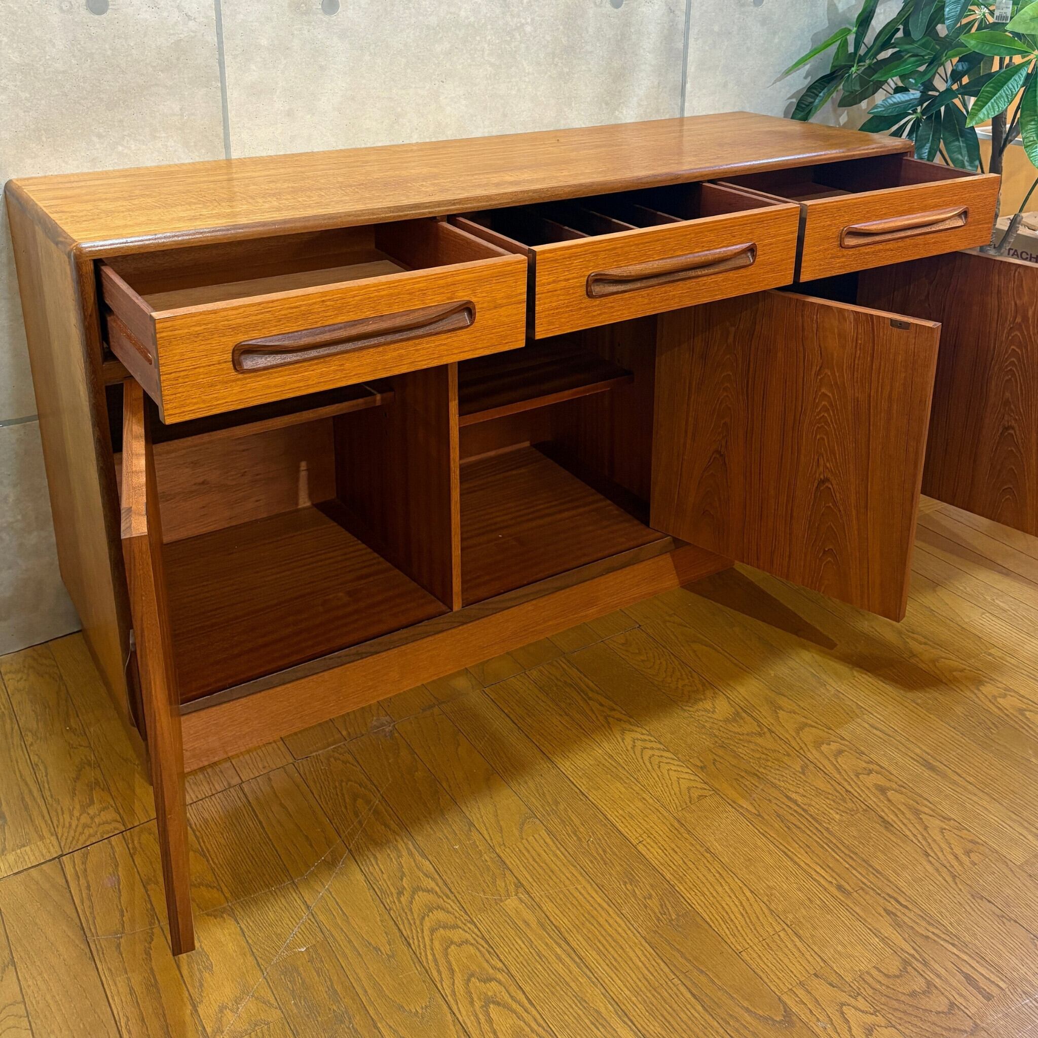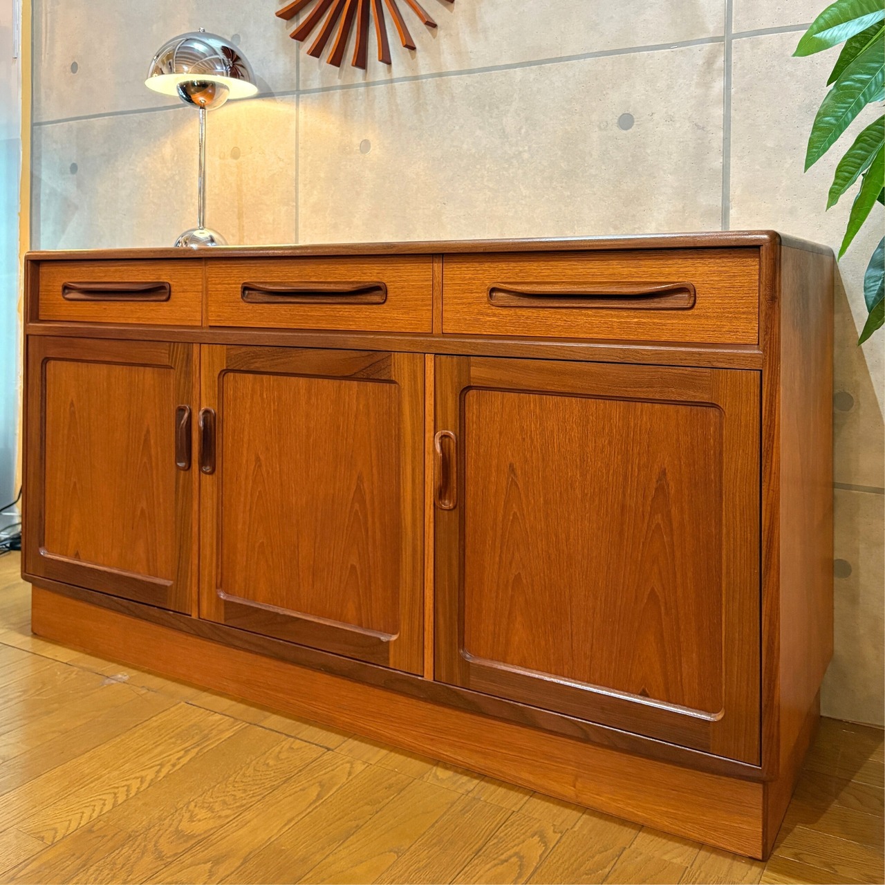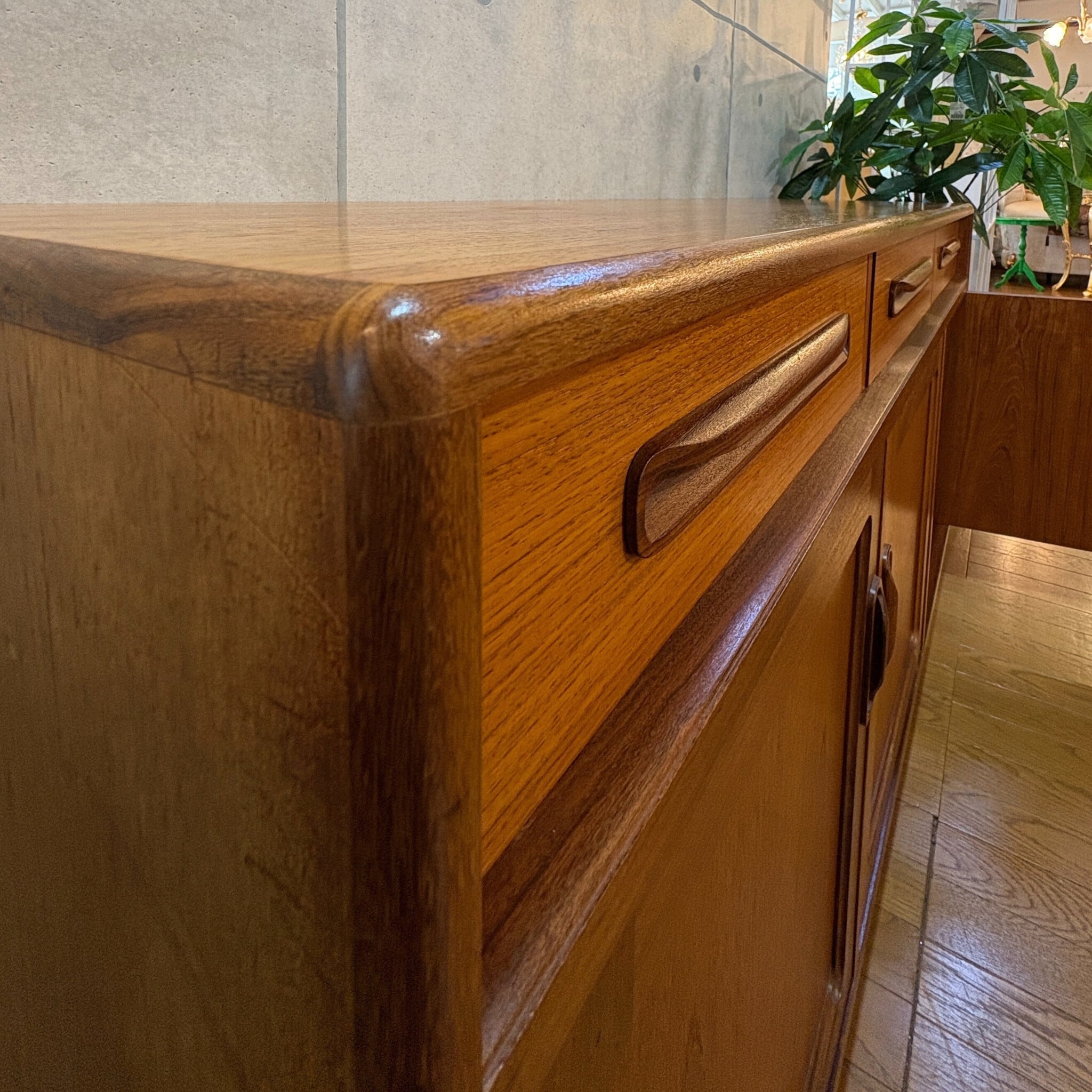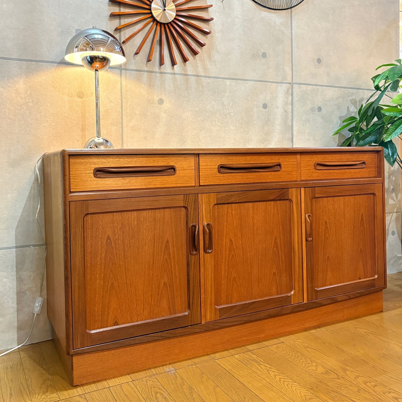 イギリスのミッドセンチュリー期を代表する家具ブランド、G-PLAN(ジープラン)のヴィンテージサイドボード「Fresco(フレスコ)」が入荷しました。FrescoシリーズはG-PLANの中でも特にアイコン的な存在として知られ1965年から1970年代中頃にかけて製造されました。