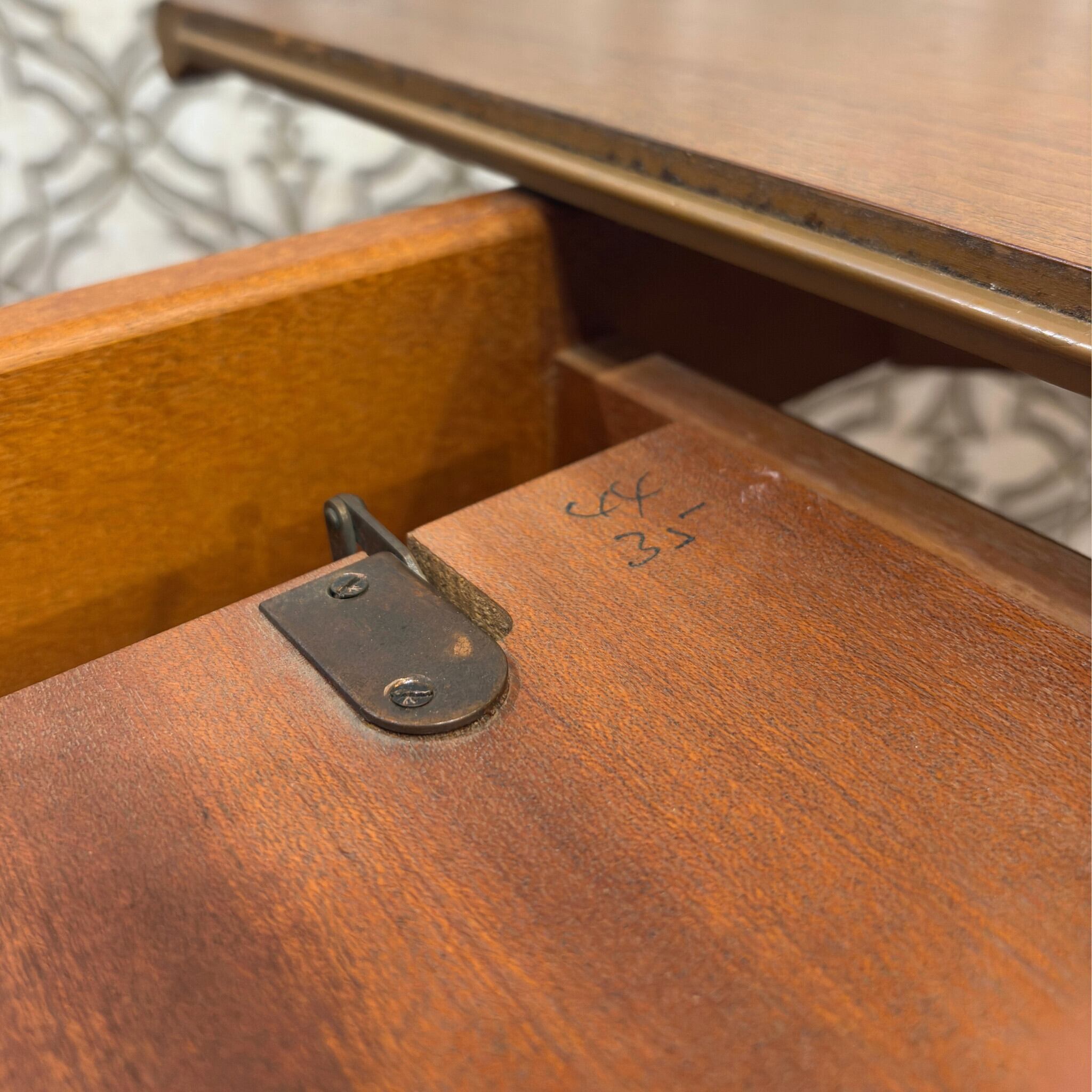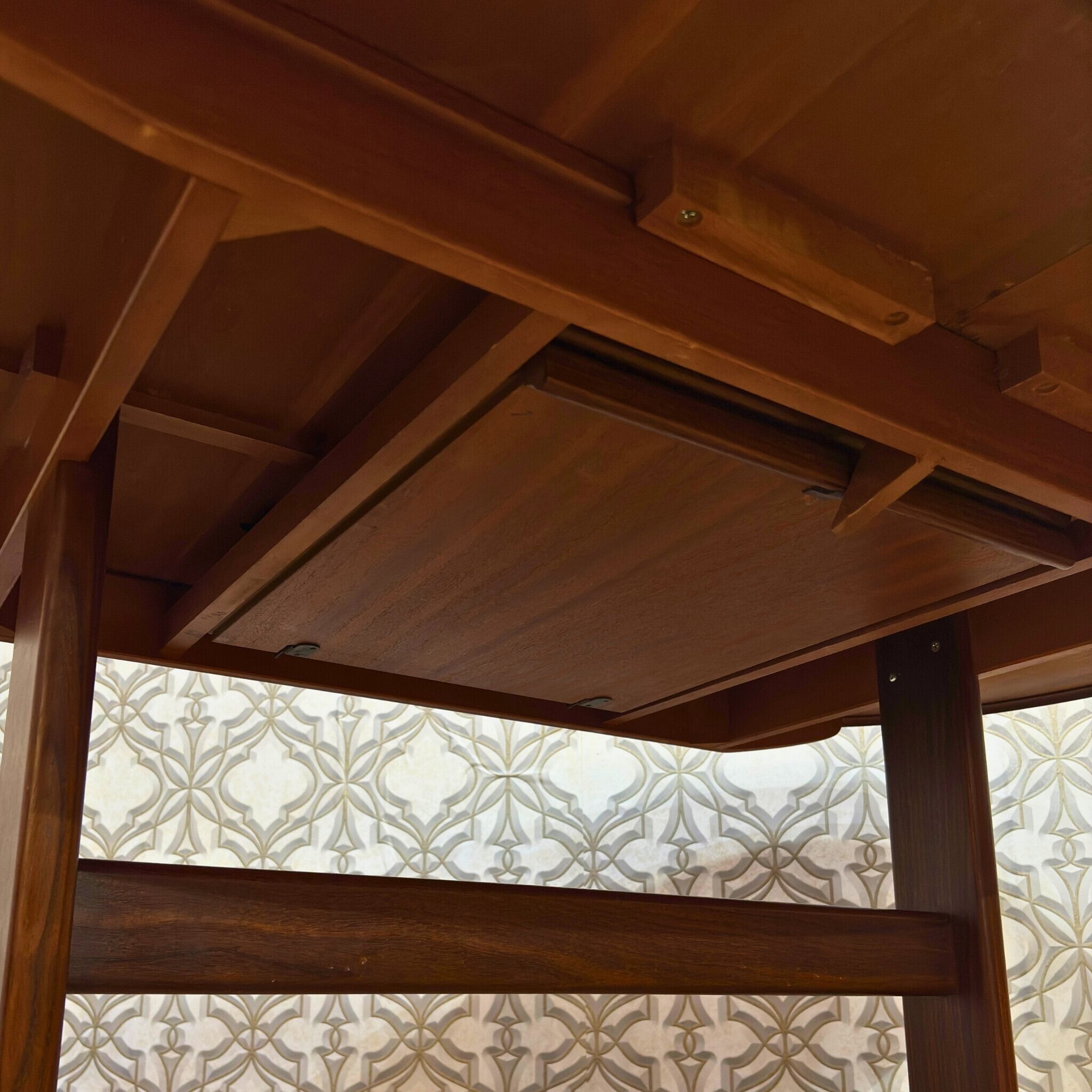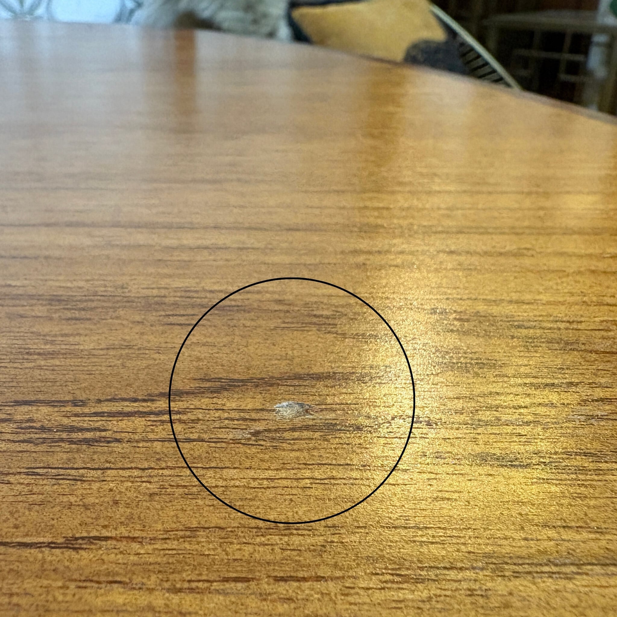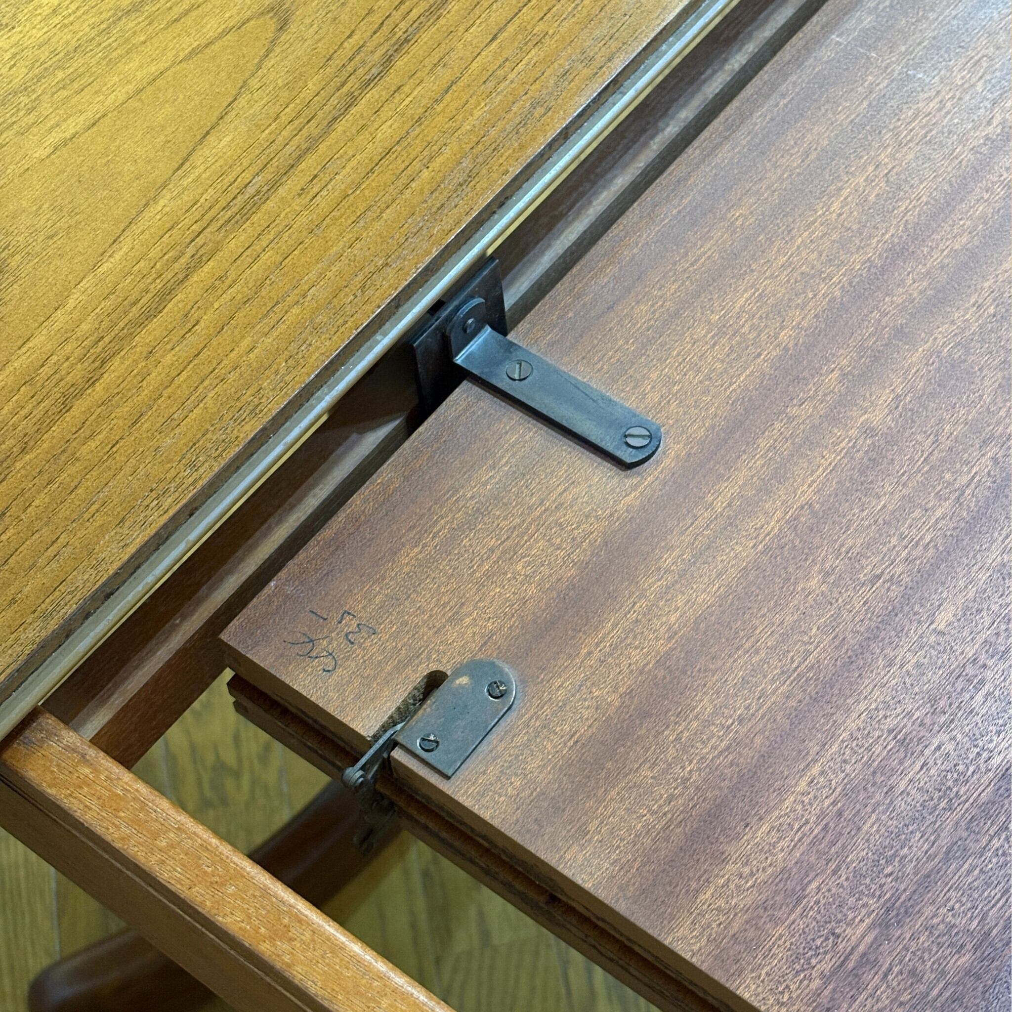 主材には当時高級家具の素材として多用されたチーク材が使用されています。表面の汚れを落としワックスによるメンテナンスを丁寧に施しました。ヴィンテージならではの温かい飴色の木肌と美しい木目をお楽しみいただけます。