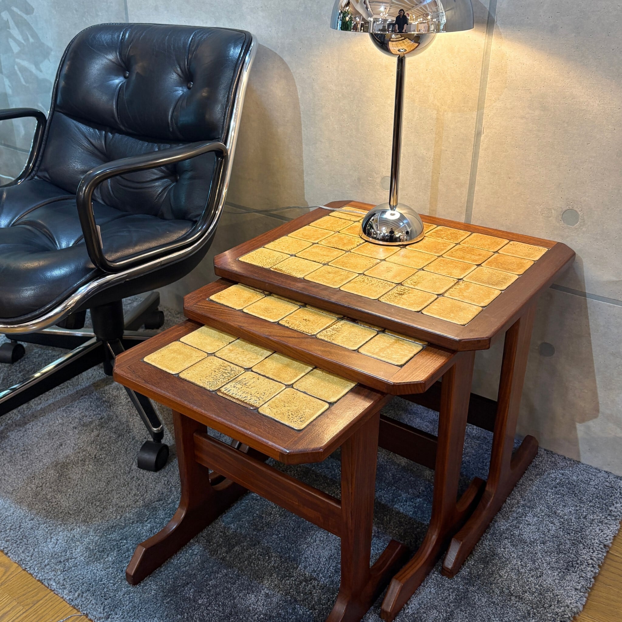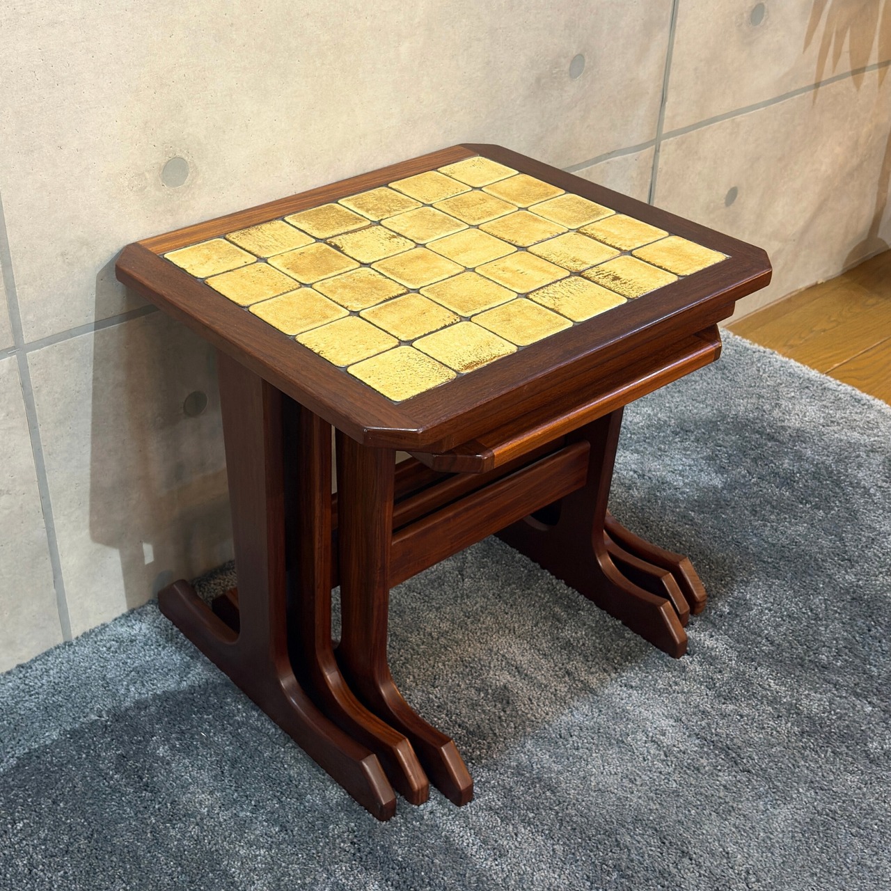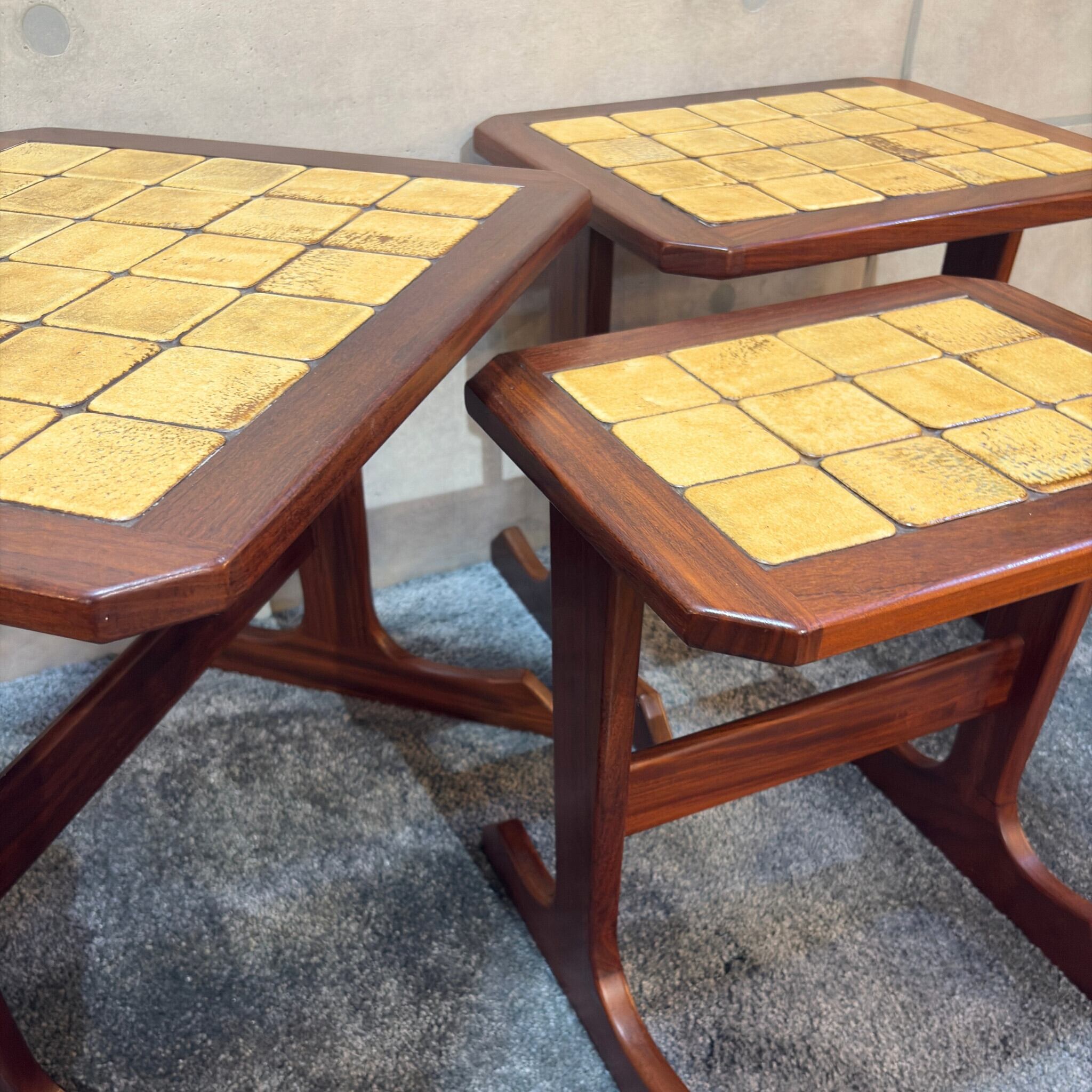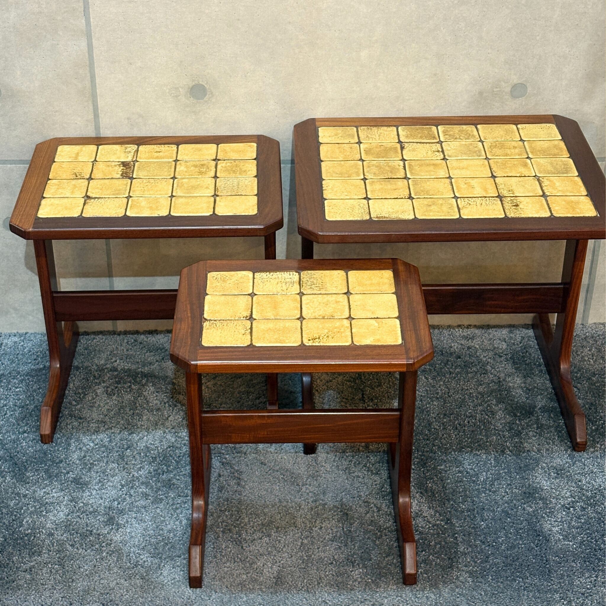 【VINTAGE】G-PLAN(ジー・プラン)タイルトップ ネストテーブル | 1965〜1975年頃 | チーク材 | 大中小の3点セット | UKヴィンテージ