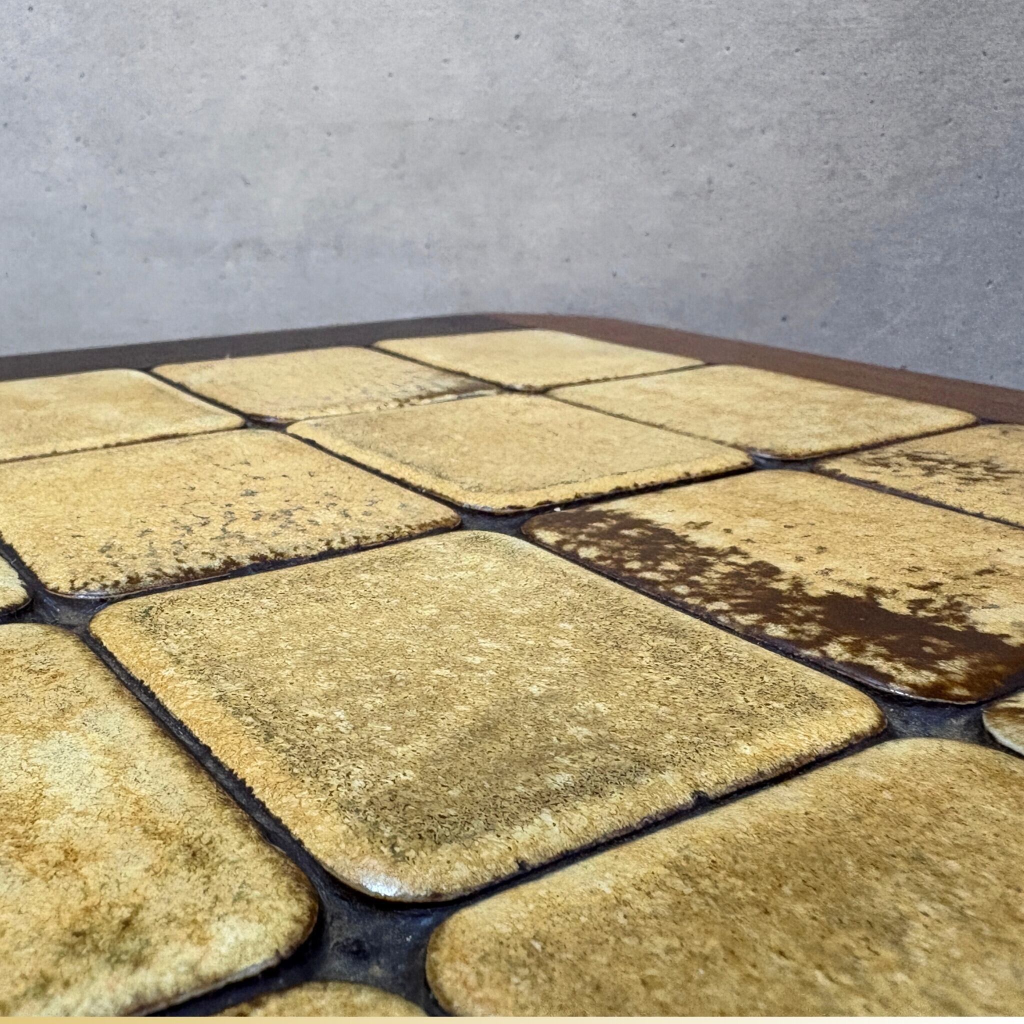 タイルは熱や水に強いため実用性にも優れています。熱い飲み物を直接置いたり、多少水滴がついても安心してご使用いただけます。