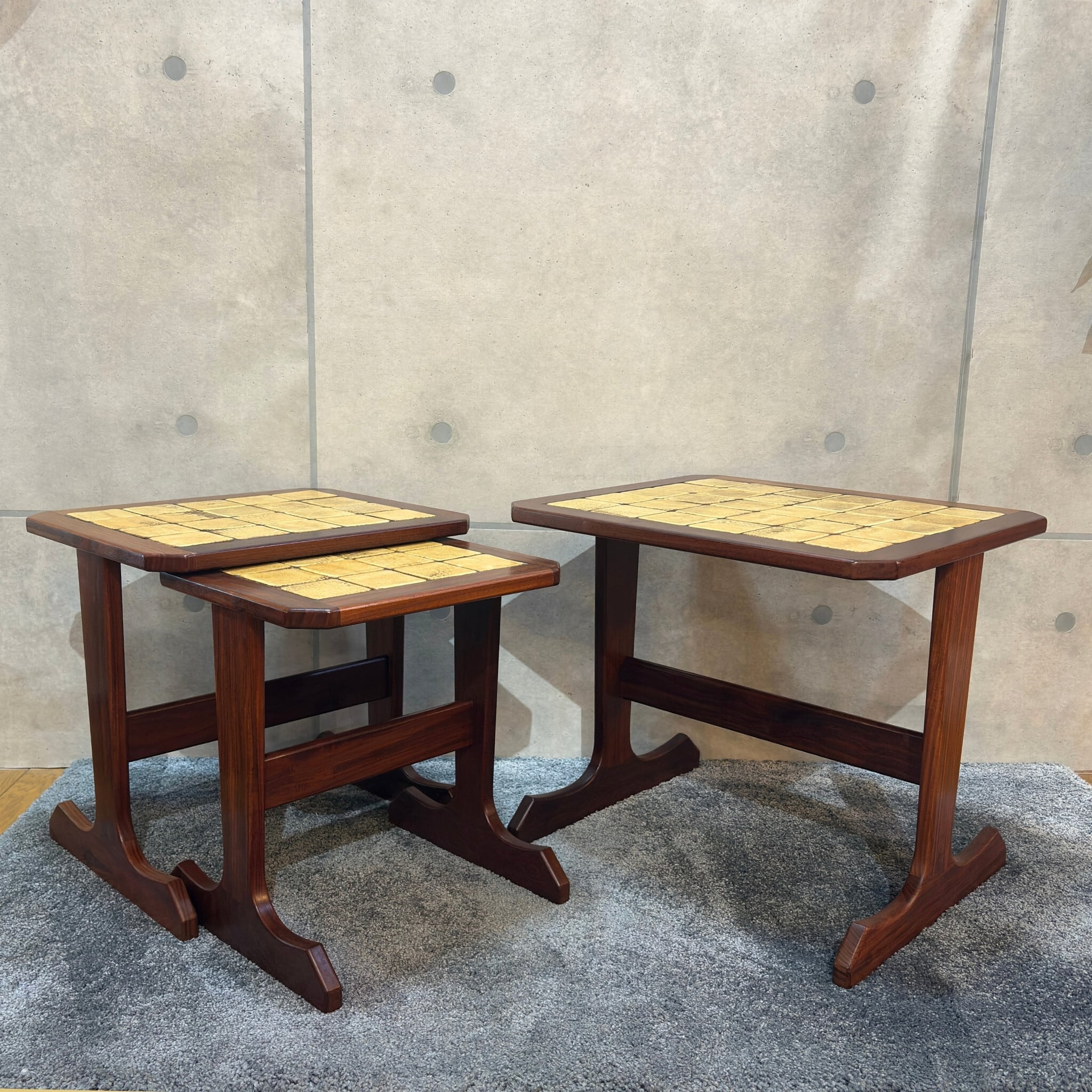 特徴: タイルトップ、3点セット、入れ子式、チーク材