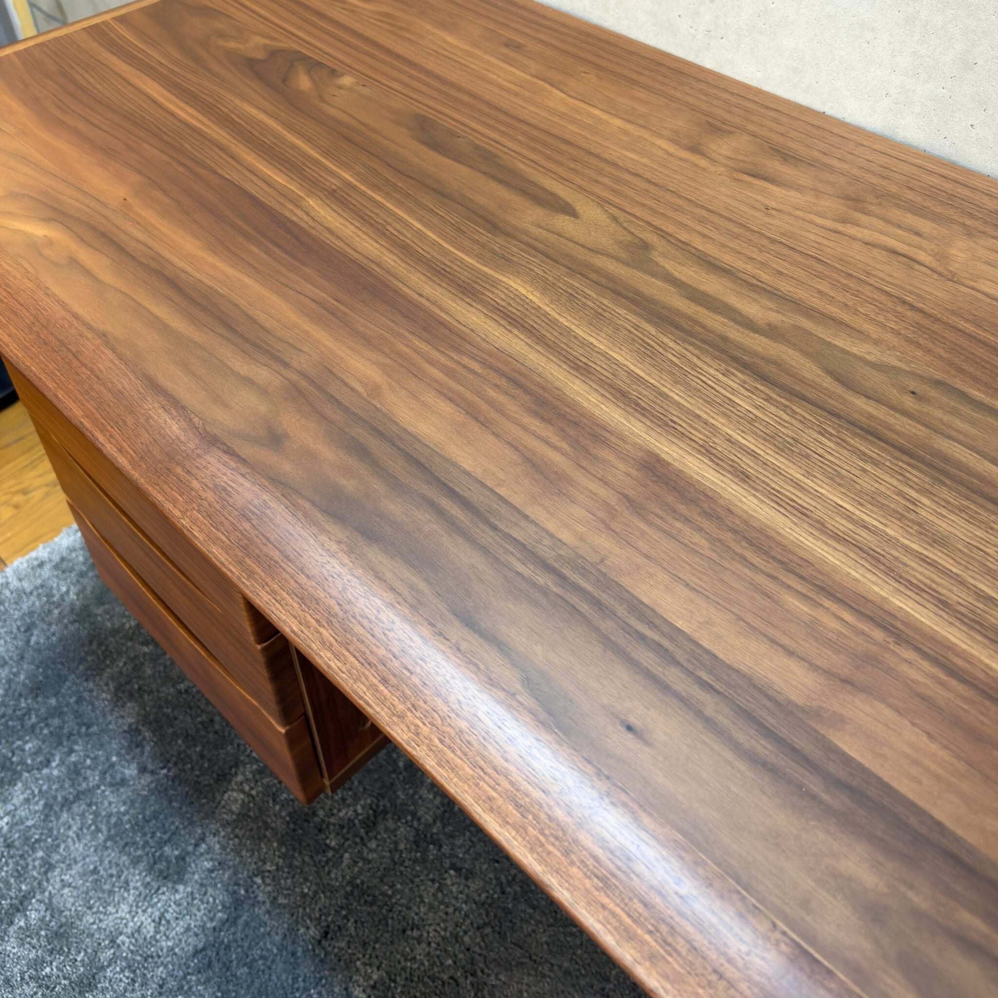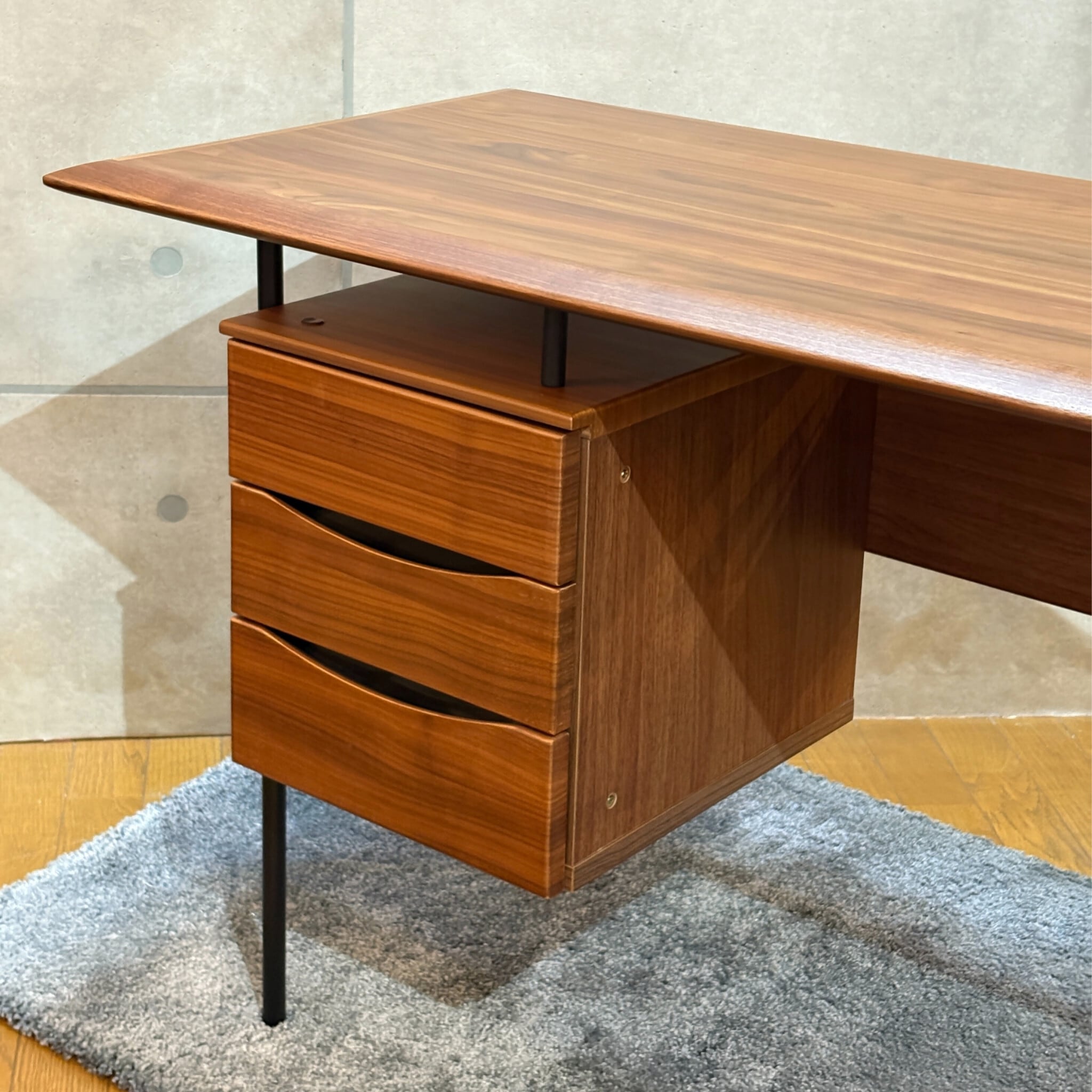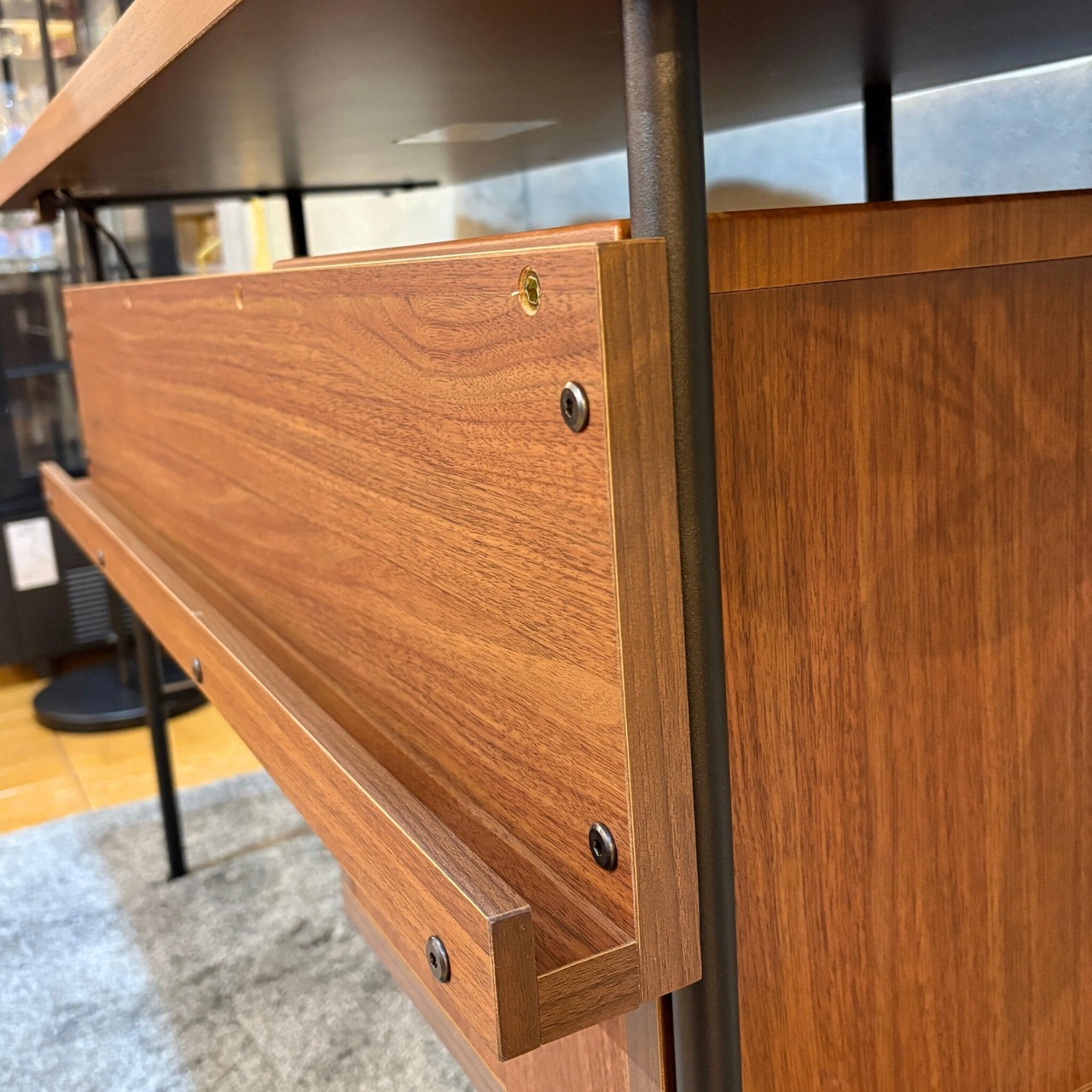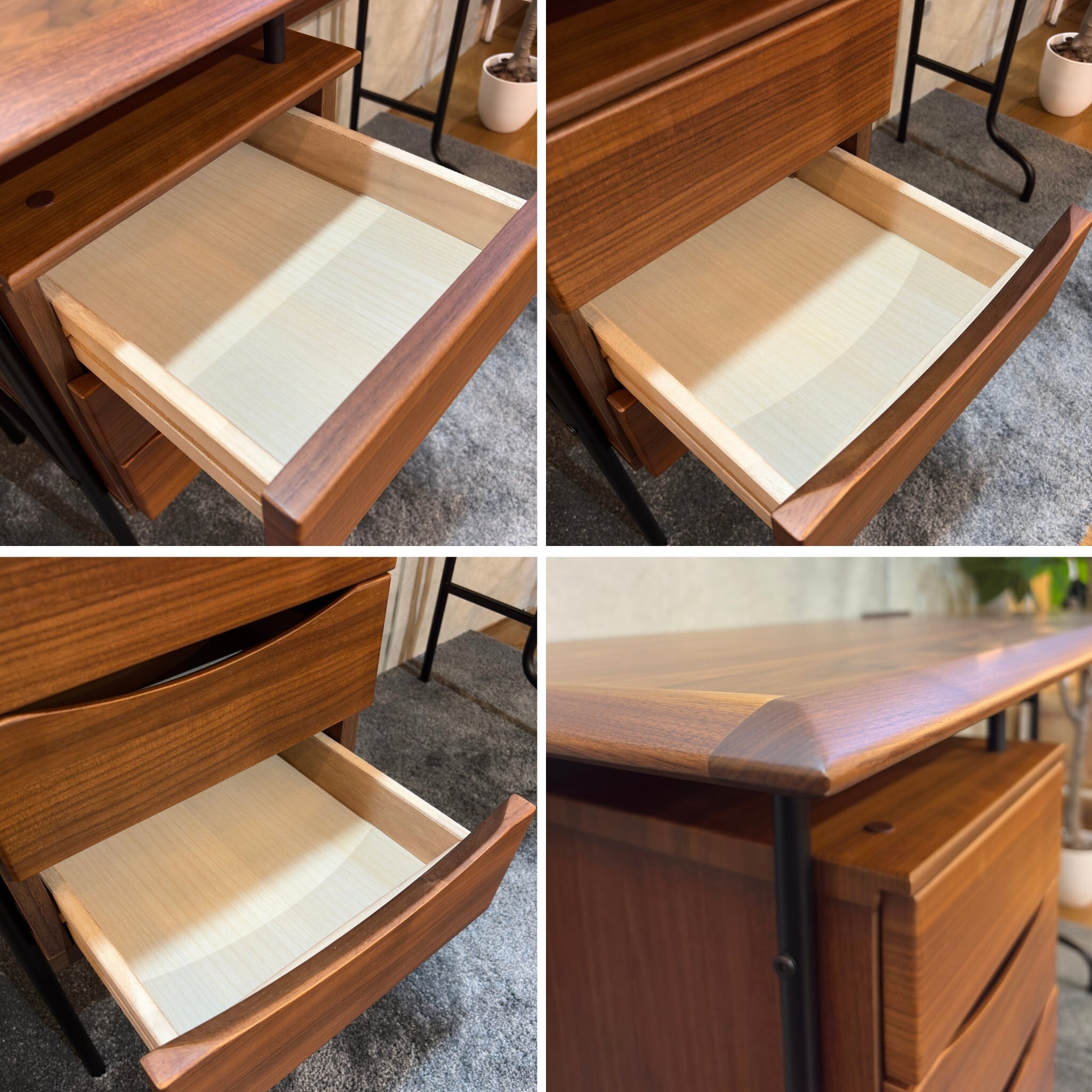 ウォールナット突板とブラックアイアンの組み合わせが美しいワークデスクです。ヴィンテージ家具やミッドセンチュリーデザインを彷彿とさせる洗練されたスタイルが魅力です。