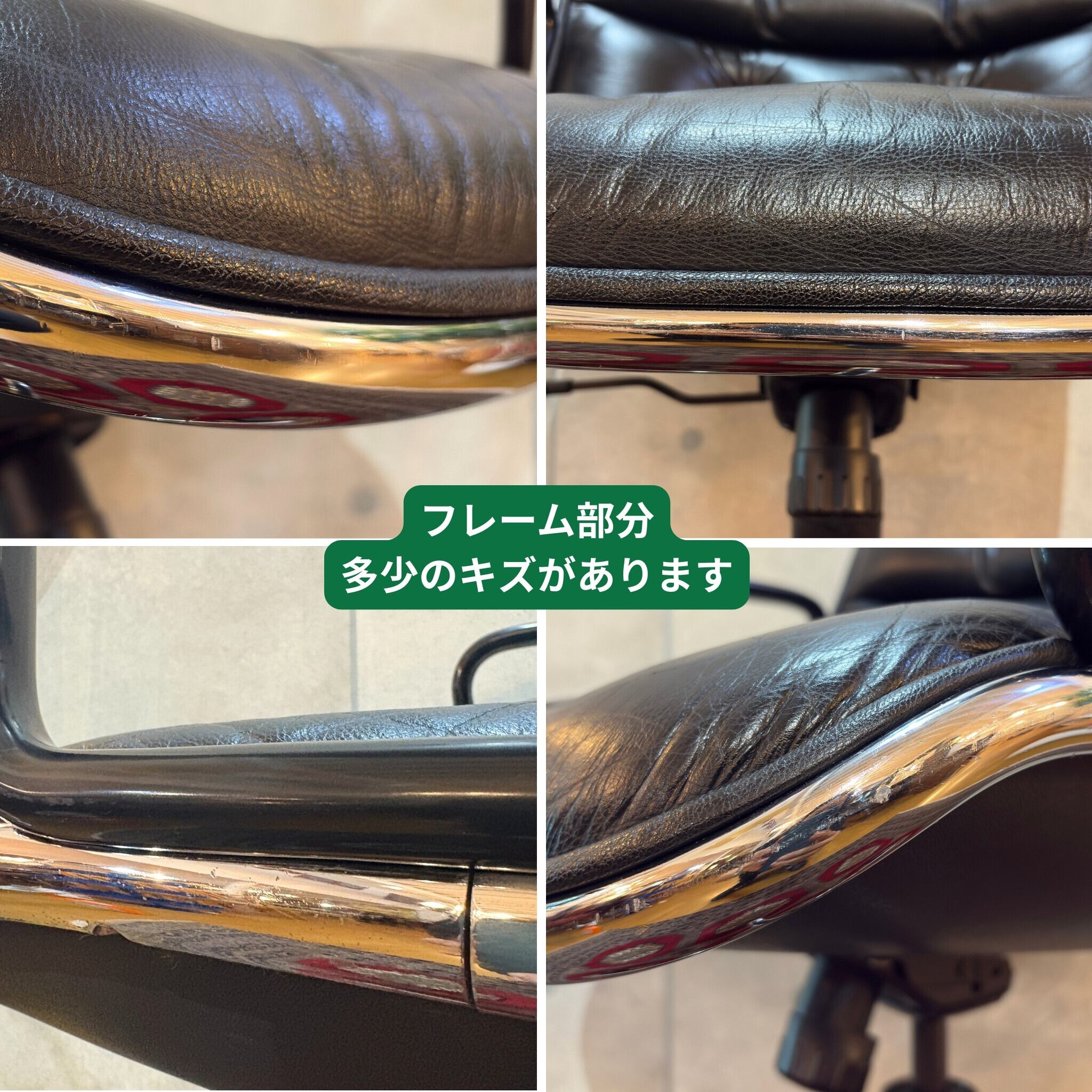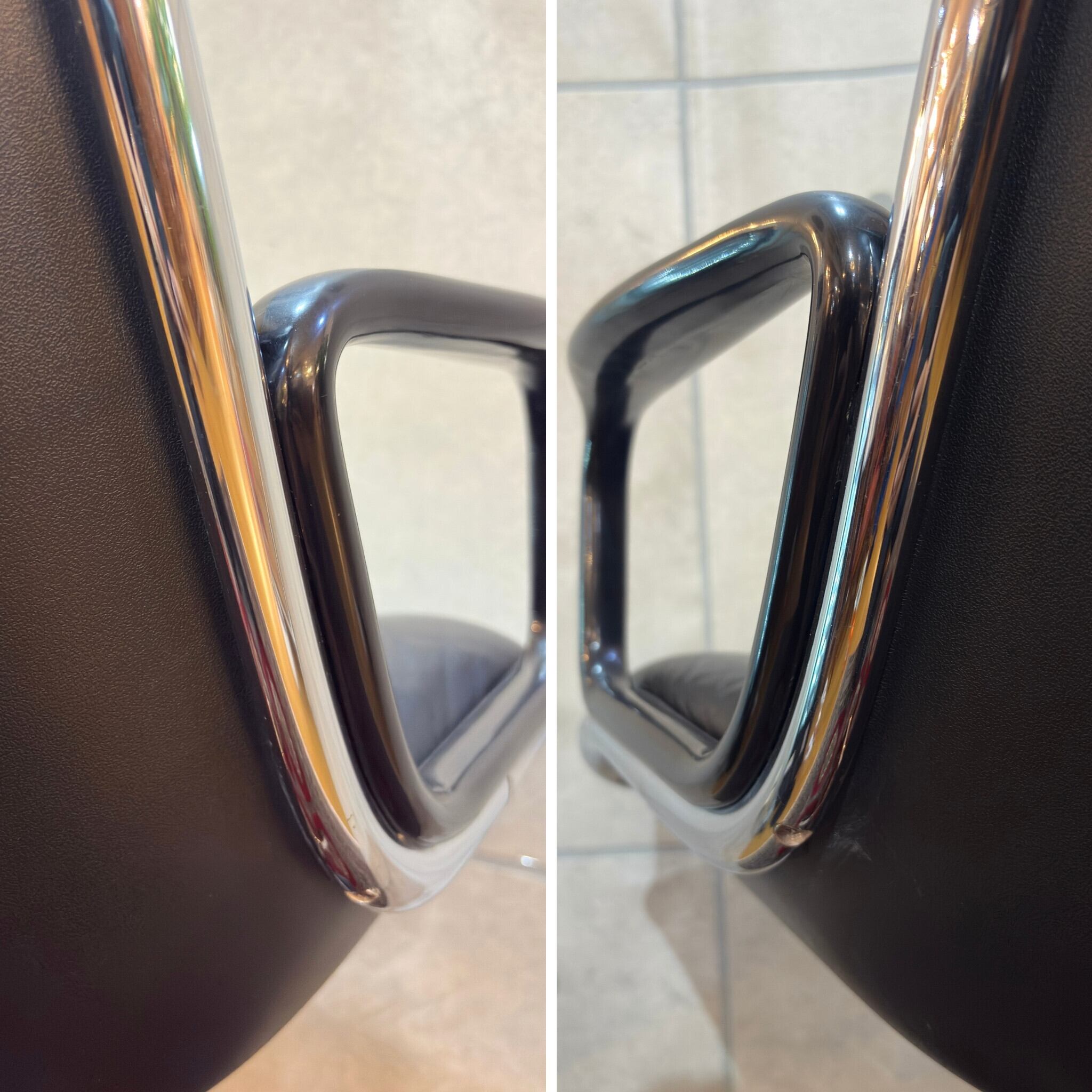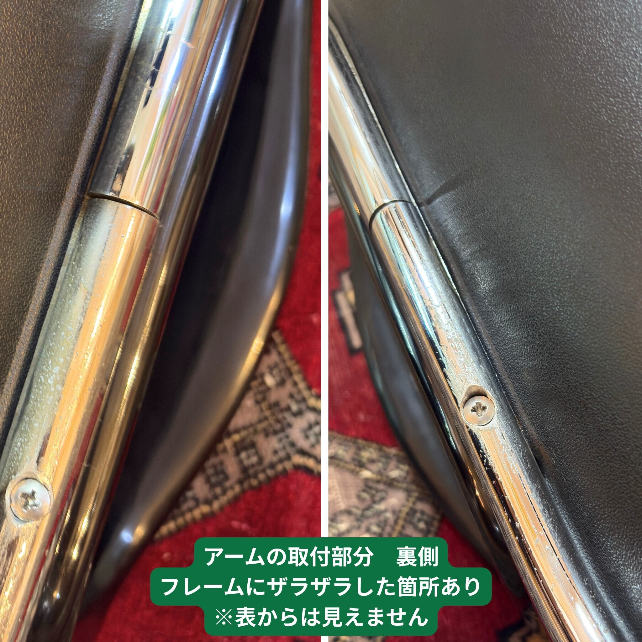 オフィスで使われていたものが再流通する事が多く、デスクにぶつけてしまう事でフレームに多くのキズがある個体がほとんどです。しかし、この個体は私たちが多数のポロックチェアを見てきた中でもキズが少ない非常に良い状態を保っています。