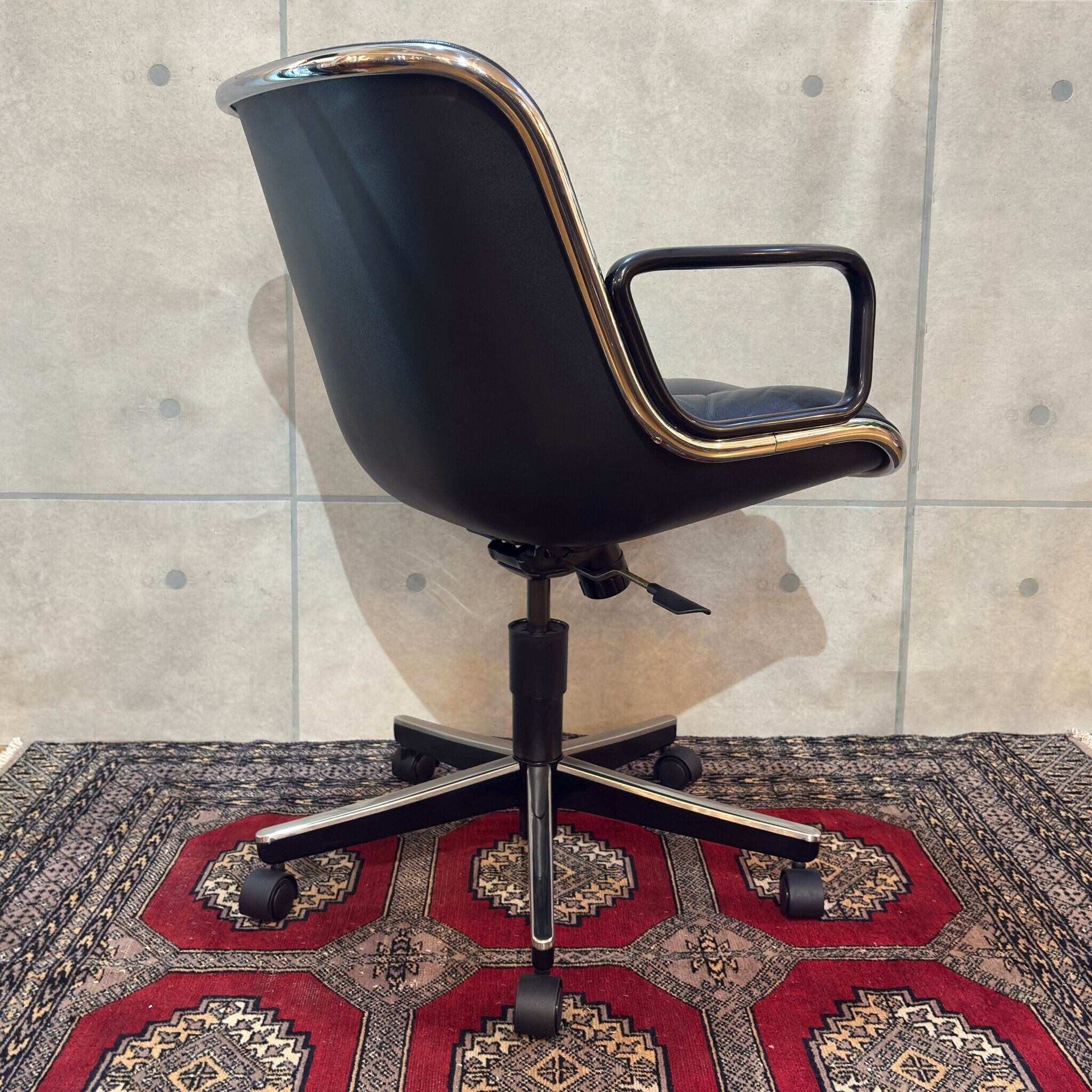 今回ご紹介する「ポロックチェア」はそんなKnollを代表するプロダクトの一つです。その名の通りデザイナーのチャールズ・ポロックが1963年に発表したこの椅子はオフィスチェアに初めてアルミ製の縁(リム)を大胆に取り入れ従来の概念を覆した革新的なデザインで知られています。