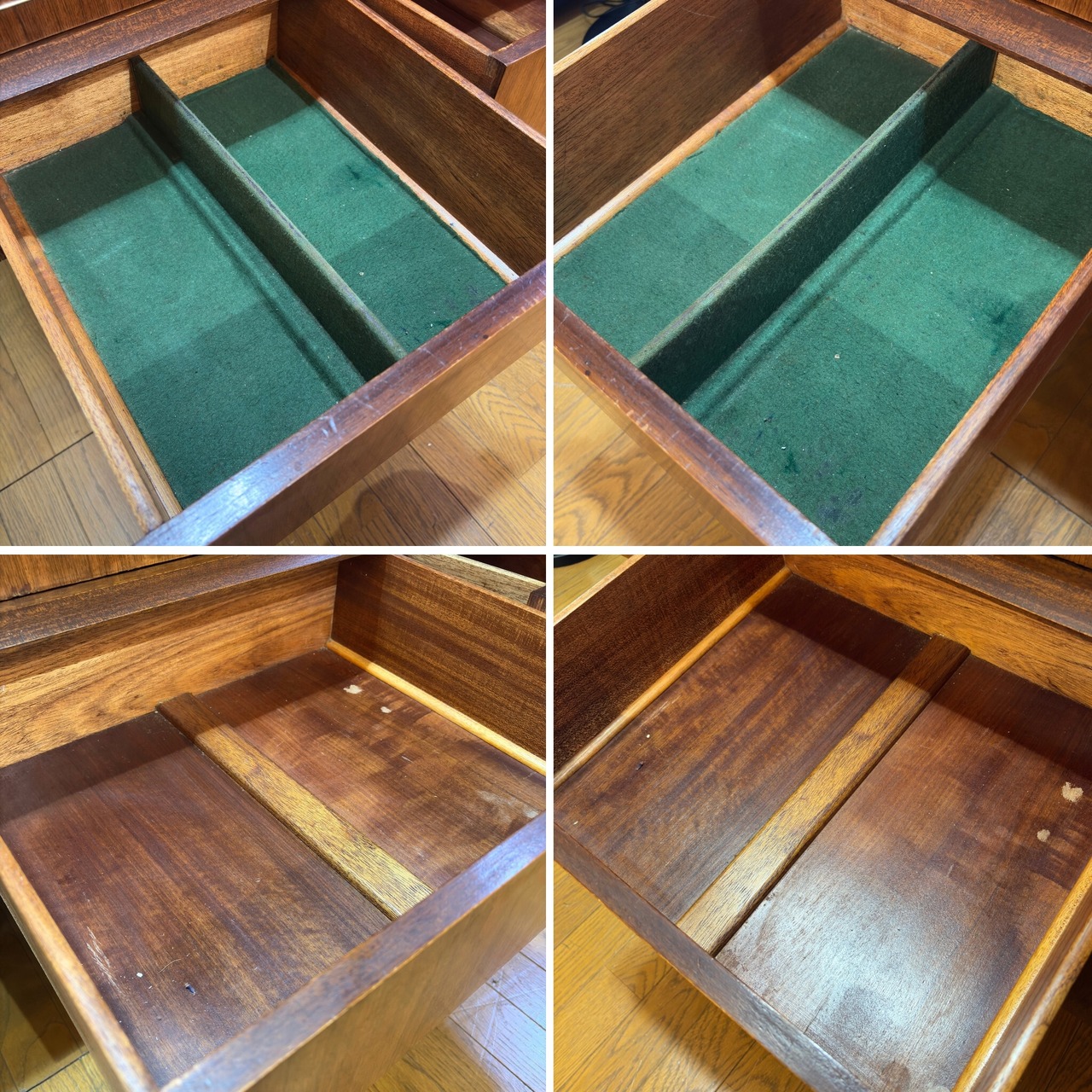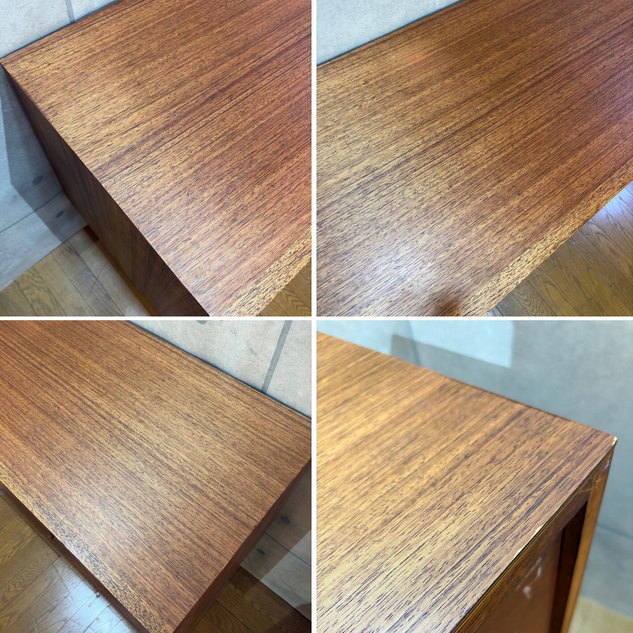 専用のクリーナーとワックスで丁寧にメンテナンスを施しチーク材の美しい木目を蘇らせました。大きなキズもなく、年代物のヴィンテージとしては非常に良好な状態を保っています。