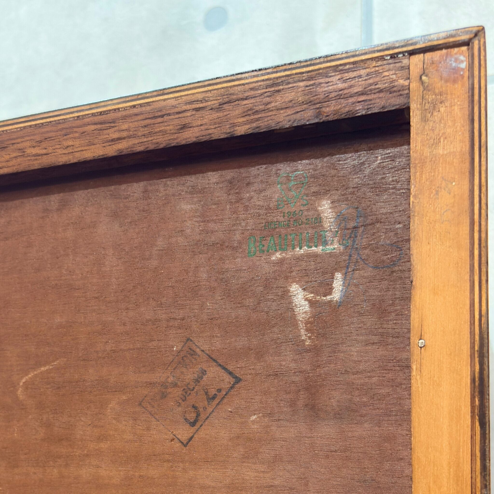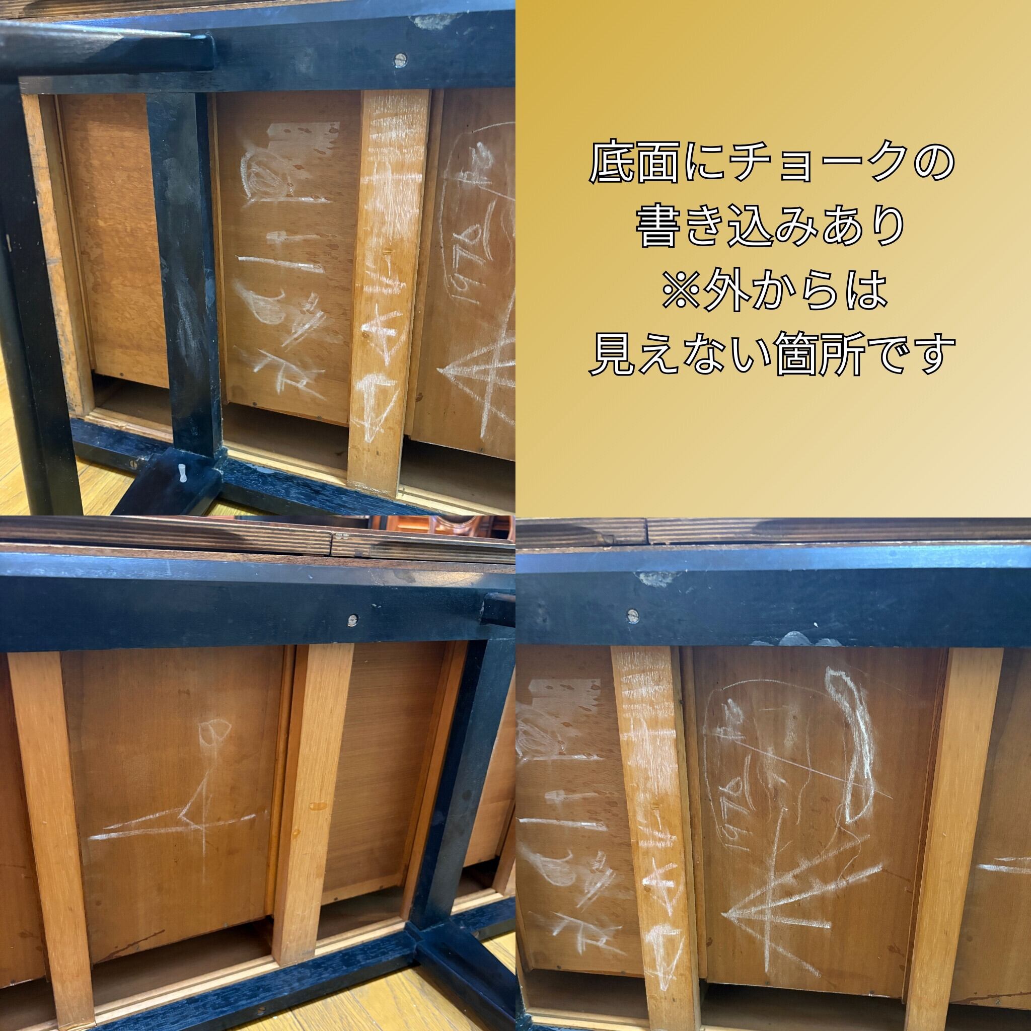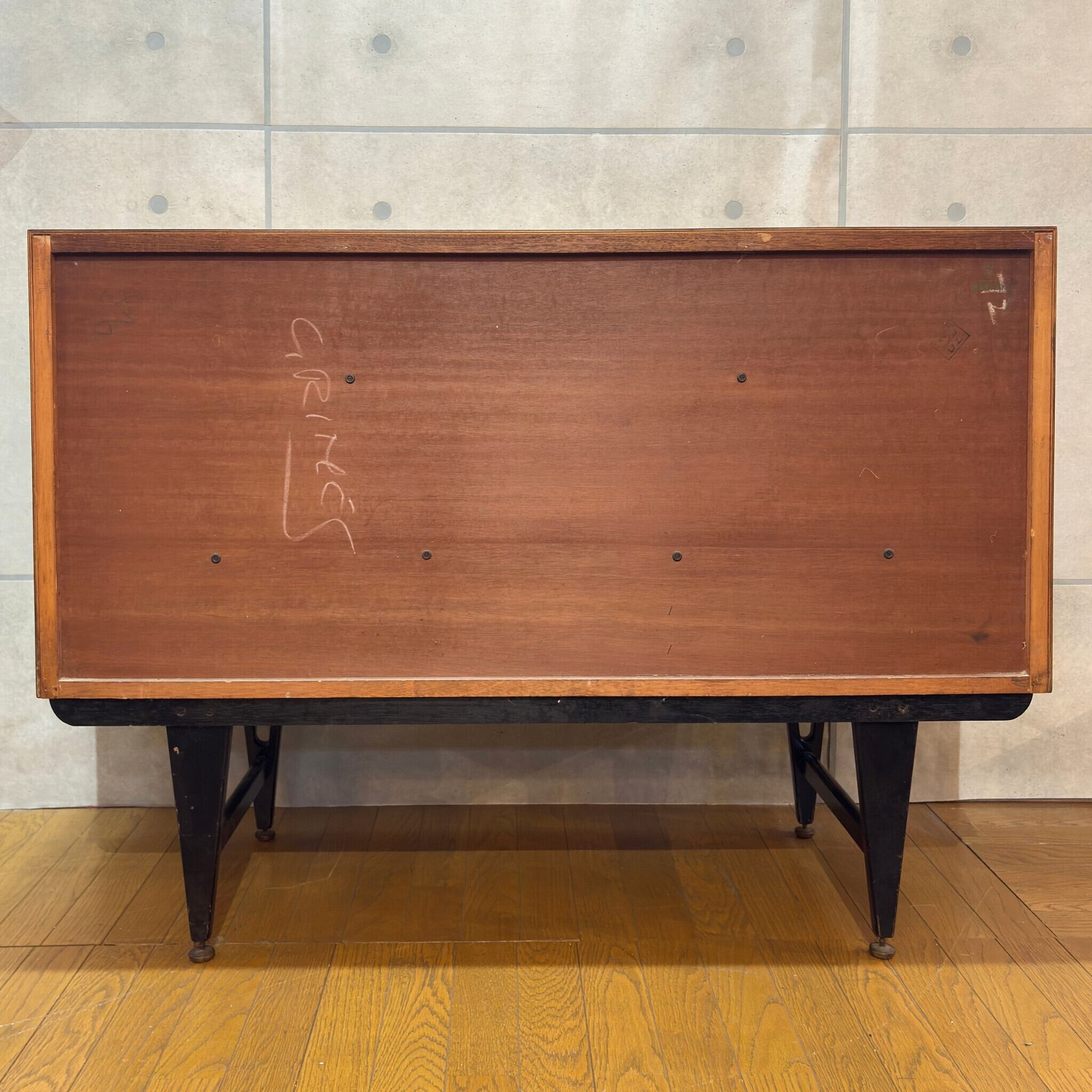 底面には製造時に書かれたと思われるチョークの文字が残っています。これは当時にこの家具が作られた証でありあえてそのままにしてあります。本物のヴィンテージ品ならではのストーリーと魅力を感じていただけます。