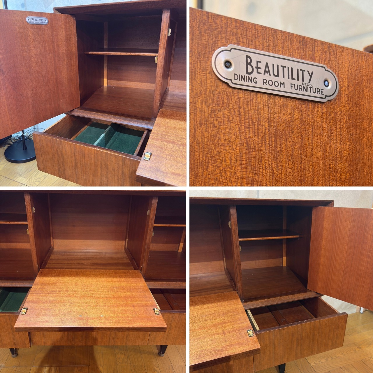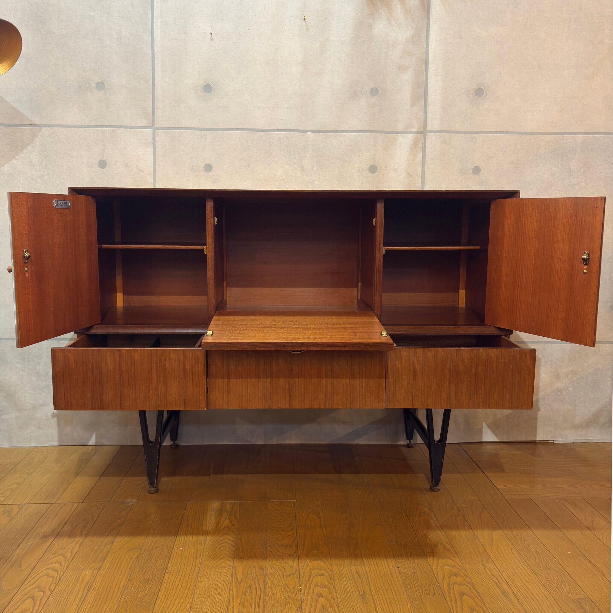 このサイドボードはBeautility社が最も勢いがあったとされる1960年代頃に製造された同社を象徴する作品です。現代の家具にはない当時の職人のこだわりと丁寧な仕事が随所に感じられます。