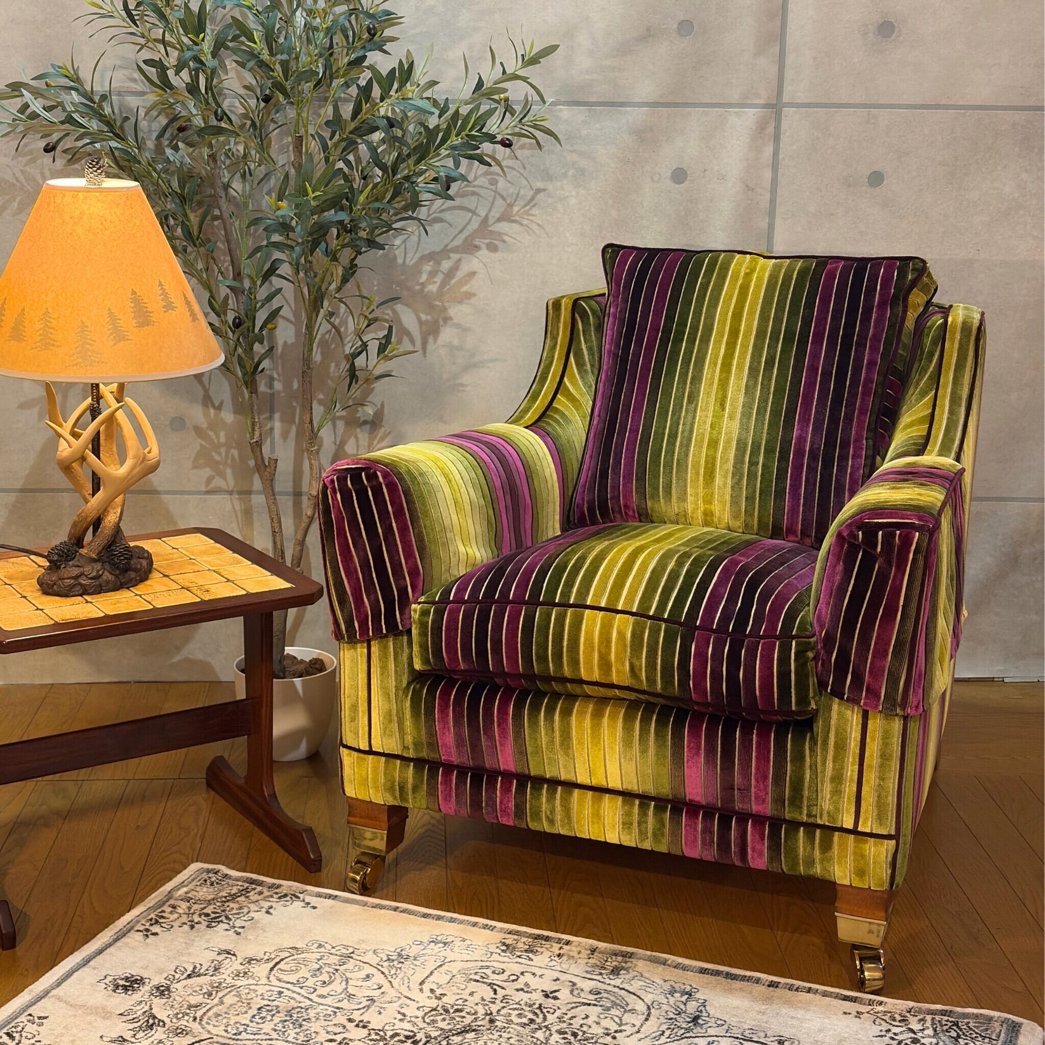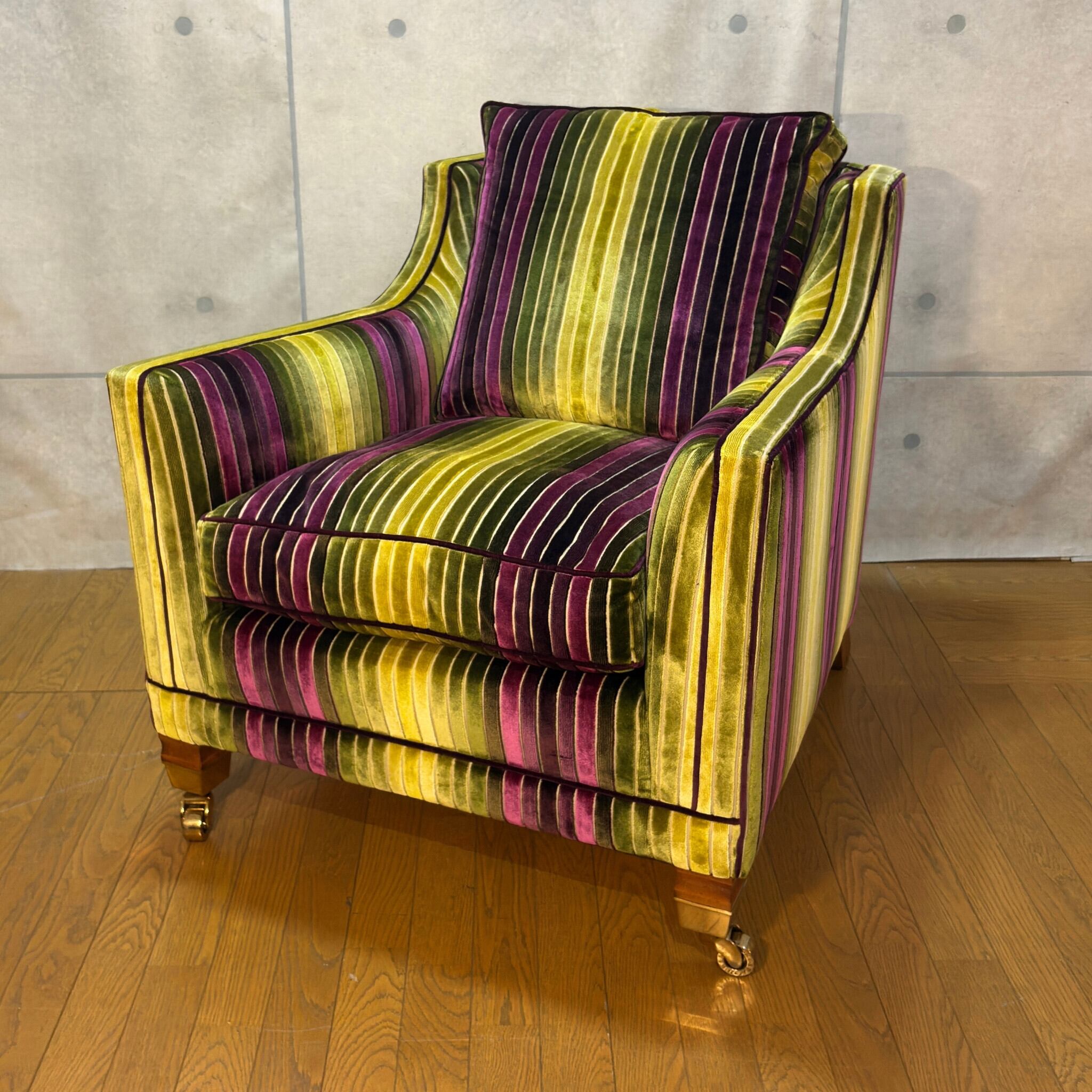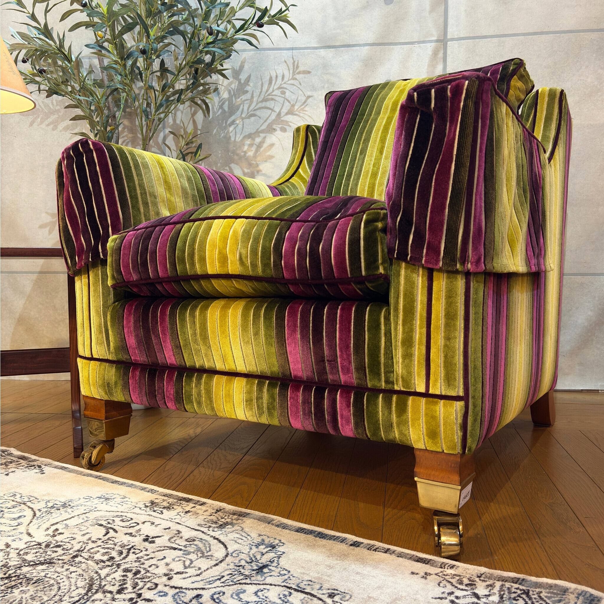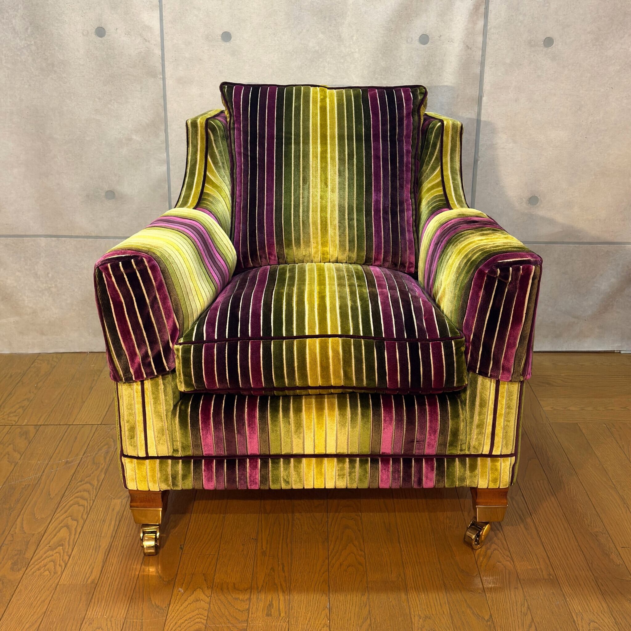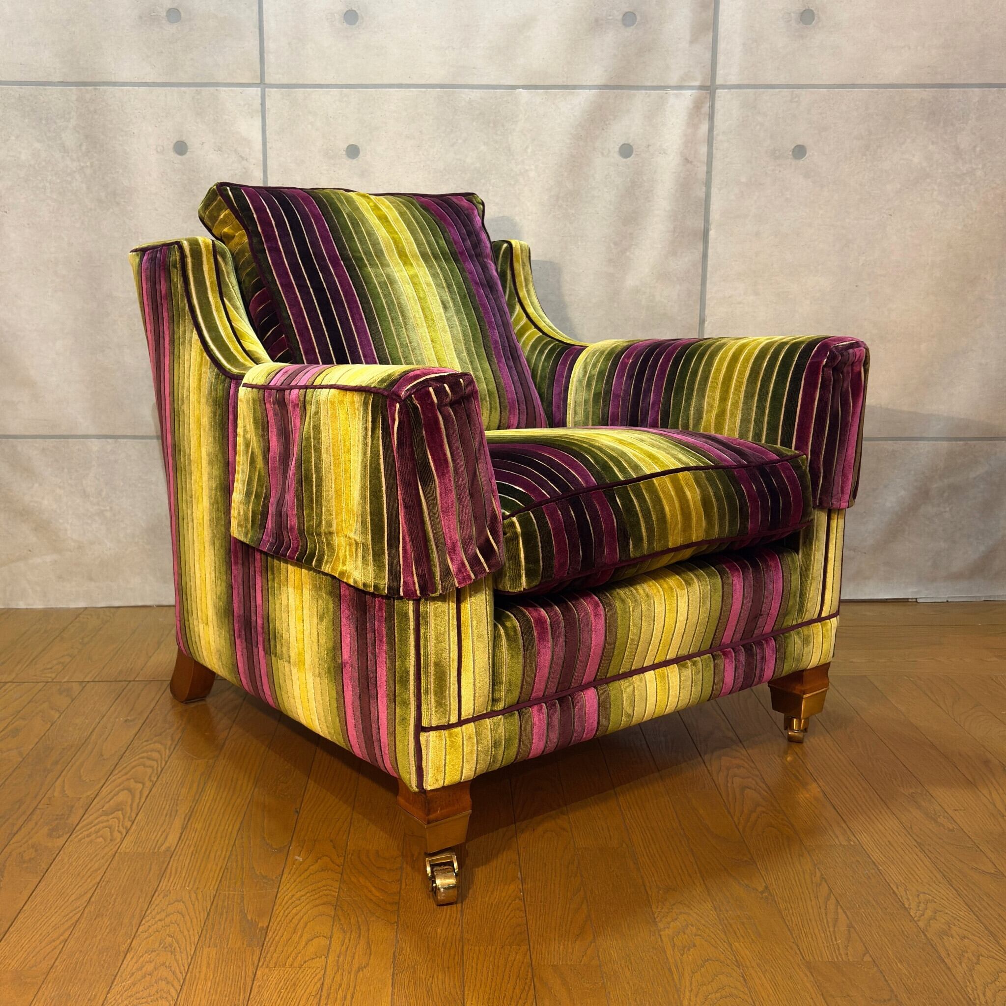 【USED】DURESTA(デュレスタ)Trafalgar 1人掛けソファ | 英国王室御用達 トラファルガー ベルベット ストライプ イギリス UK