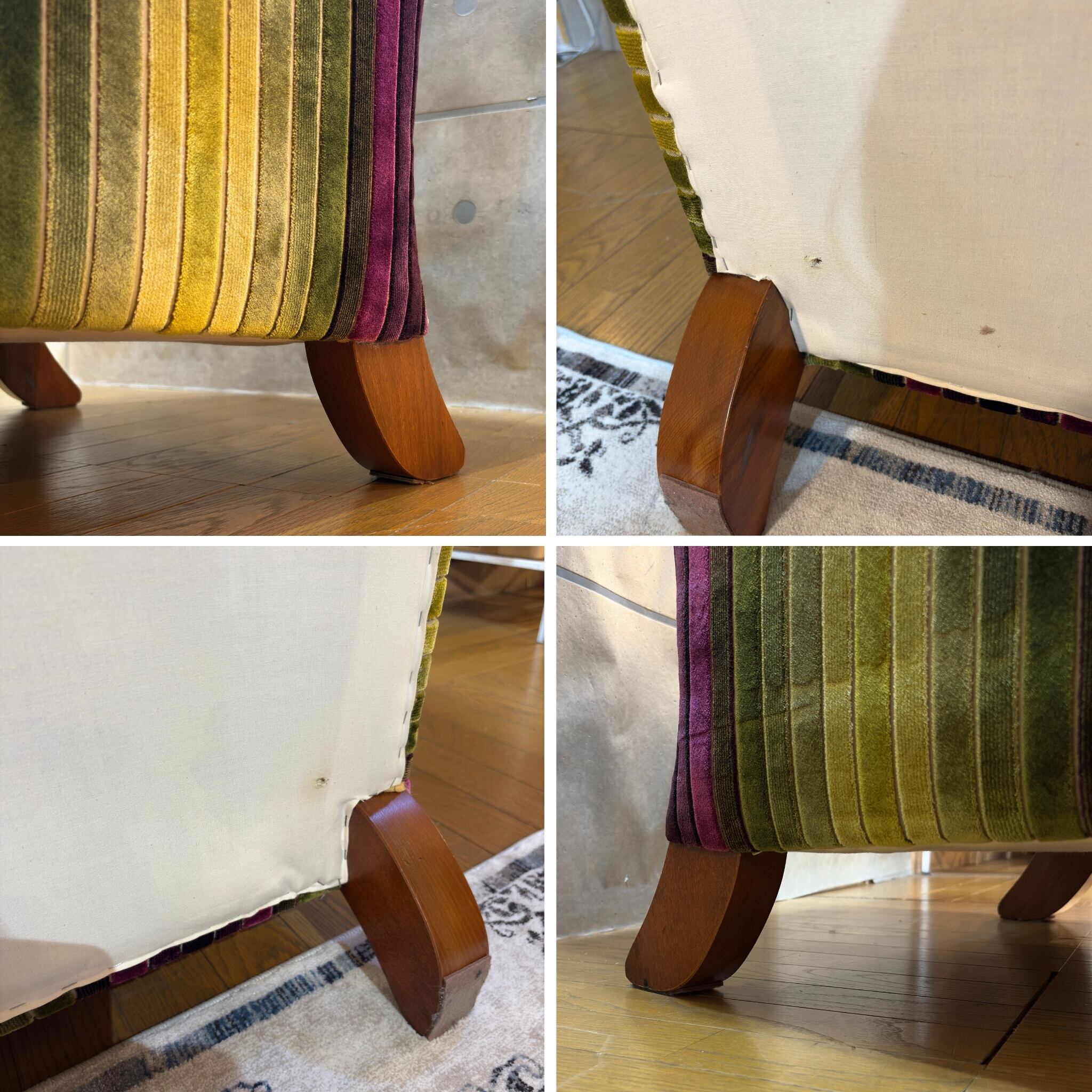 張り地: ベルベットの光沢とストライプの柄は非常に美しく保たれており目立つ汚れや大きな傷みはありません。