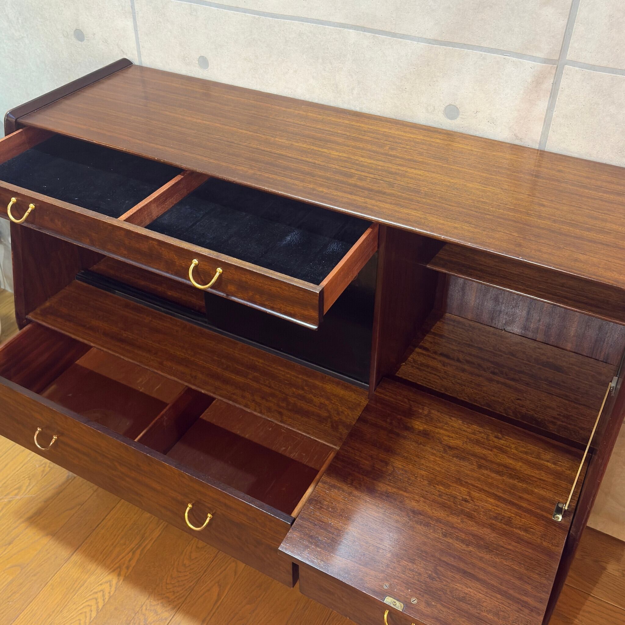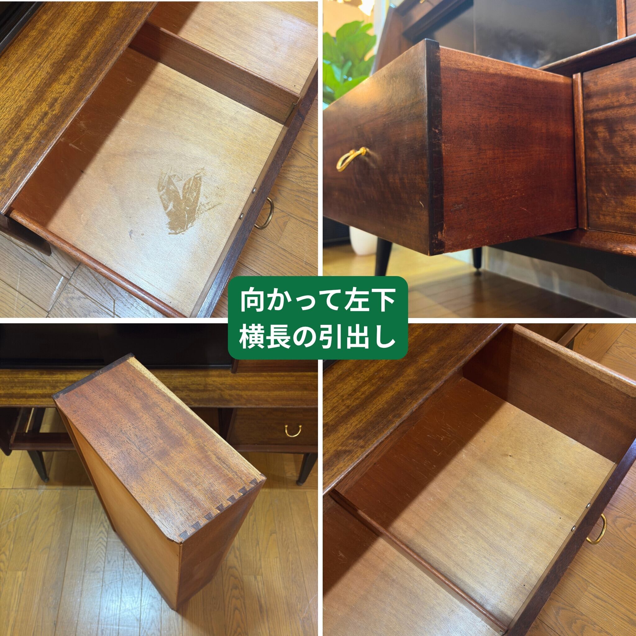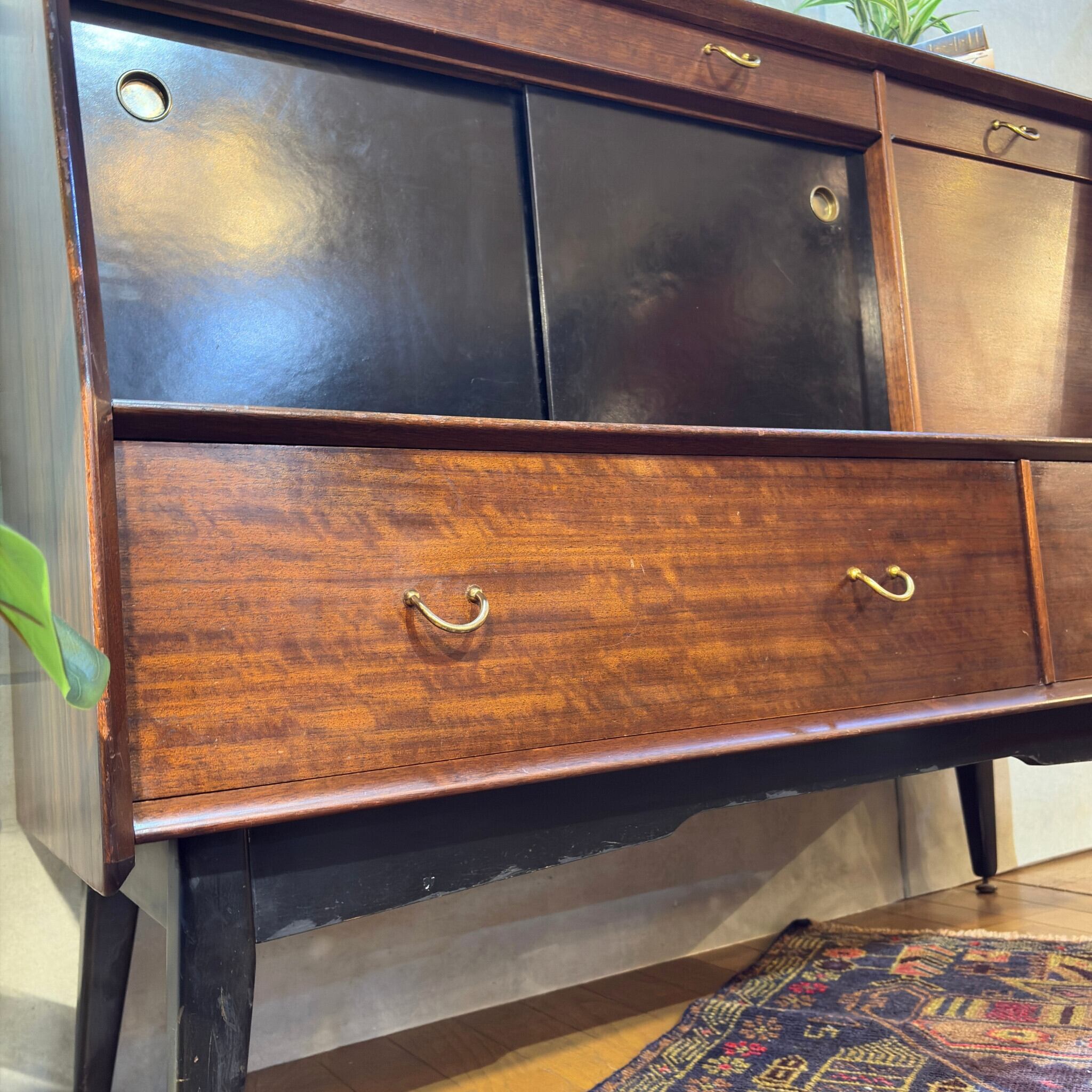 このサイドボードはG-PLANの歴史の中でも特に希少な1950年代の初期デザインを象徴するTola & Black(トーラ&ブラック)シリーズ Librenza(リブレンザ)スタイルです。G-PLANがスカンジナビア・モダンを導入する以前の最も実験的でエレガントな時代を体現しています。