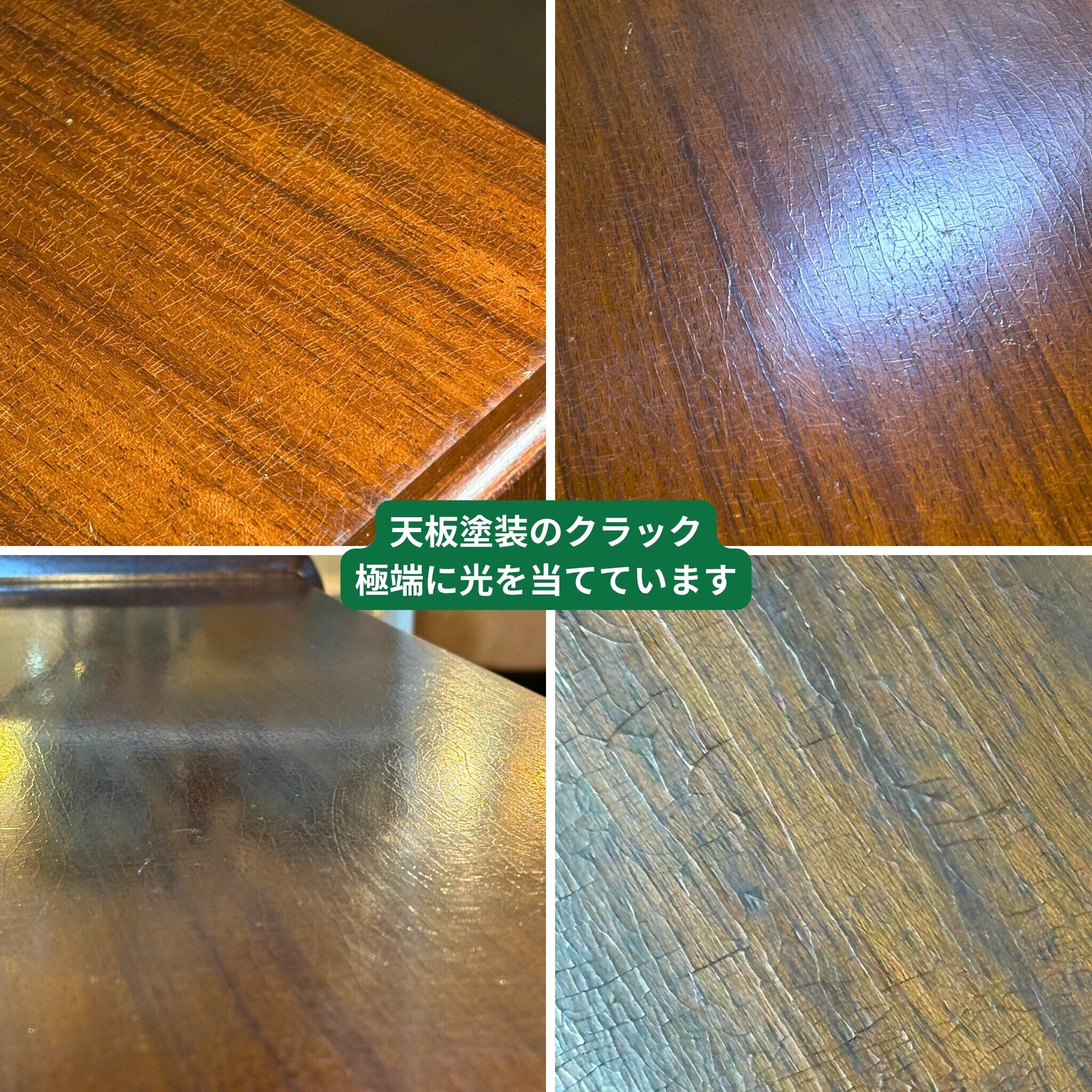 天板表面には当時のオリジナル塗装が経年変化により生じた細かな塗装のひび割れ(クラック)が確認できます(画像参照)。表面がバリバリに割れているのではなく、離れて見たりクラックがあることをお伝えしていない状態で見ても気が付かない事があるかと思います。拡大写真は極端に光を当てた上でカメラの倍率も上げて撮影しています。