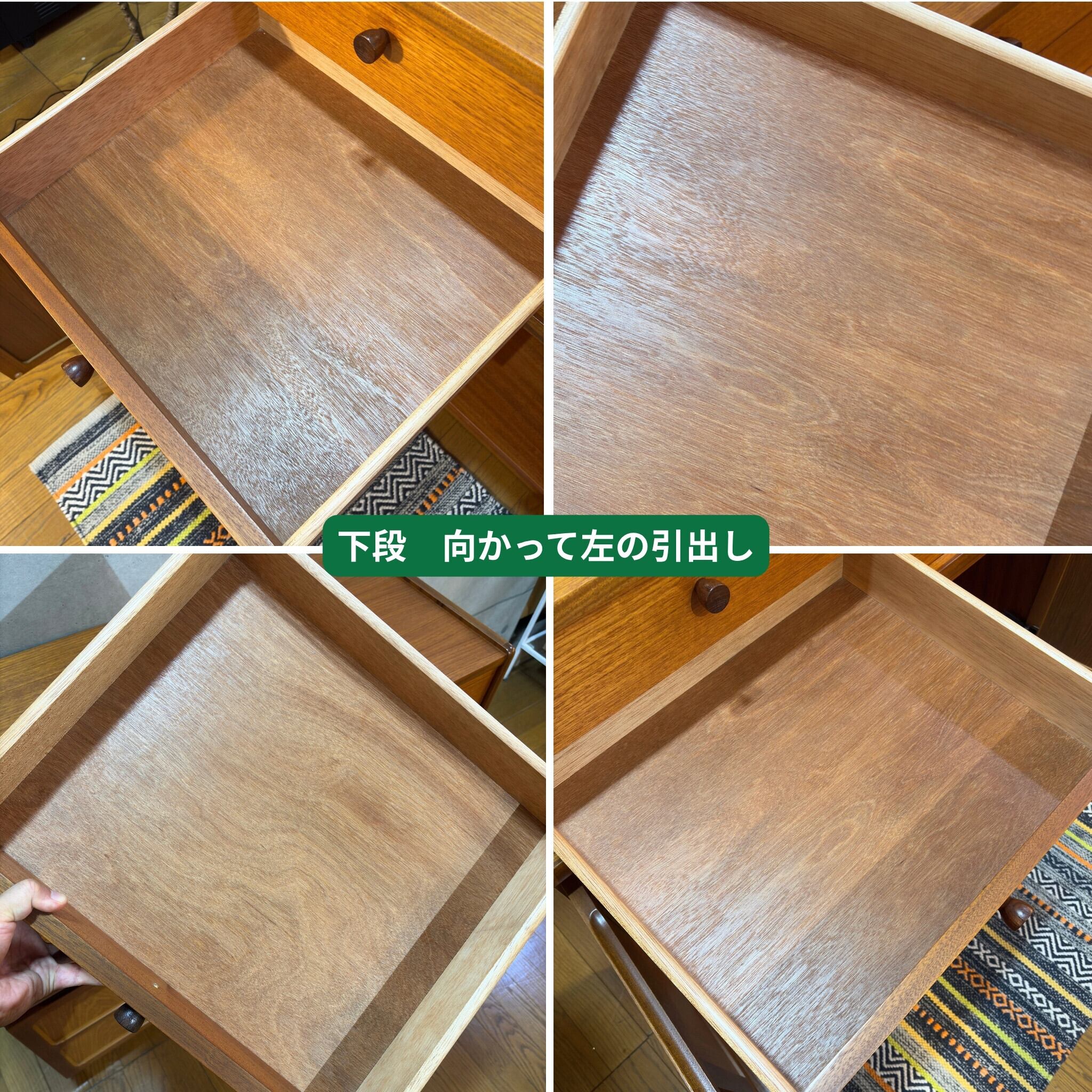 4杯の引き出しは細かな雑貨や書類の整理に便利です。プラスチックにグリーンのフェルトが貼られたオリジナルのカトラリーケース(インサート)が1点付属しており、撮影時は上段/向かって右側に入れていますが他の引出しに移動も可能です。