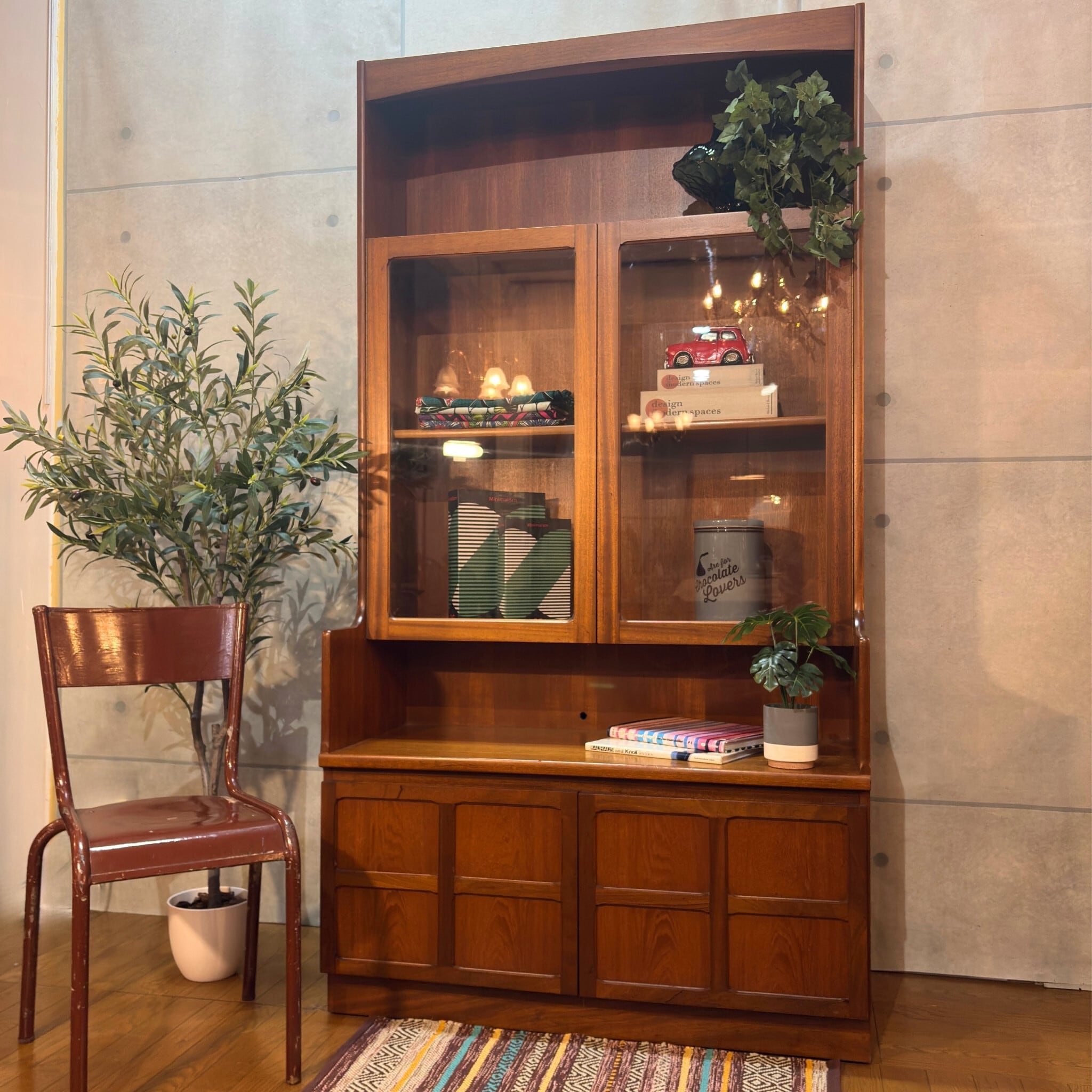 壁際に設置することを前提とした背の高い大型の収納ユニットを指します。複数の収納モジュール(棚、キャビネット、引き出し)が一つの大きなフレームに組み込まれているためリビングの壁面を効果的に使い「見せる収納」と「隠す収納」を両立させることができます。このユニットは当時のモダンリビングを象徴するアイテムでした。