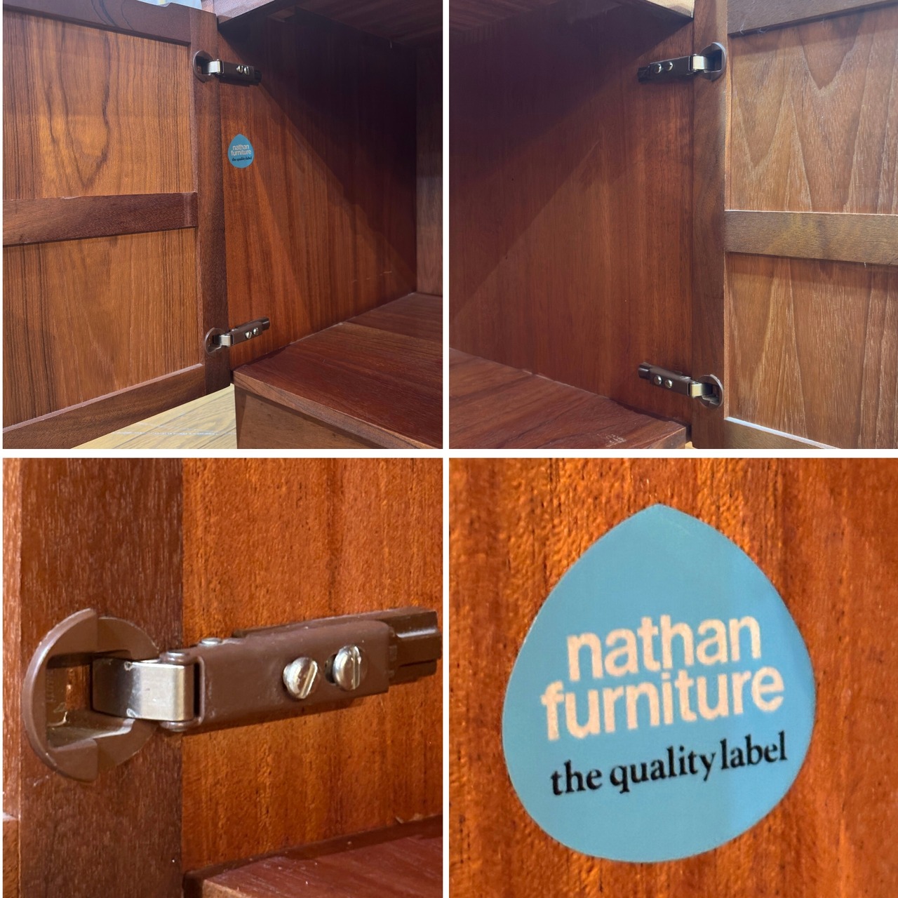 扉内部に残るNathan独自の品質シールのデザインや構造からネイサンがParker Knoll(パーカーノール)の傘下に入る1981年以前、すなわち1970年代初頭〜中期のネイサン独立時代の全盛期に製造されたものと推定されます。