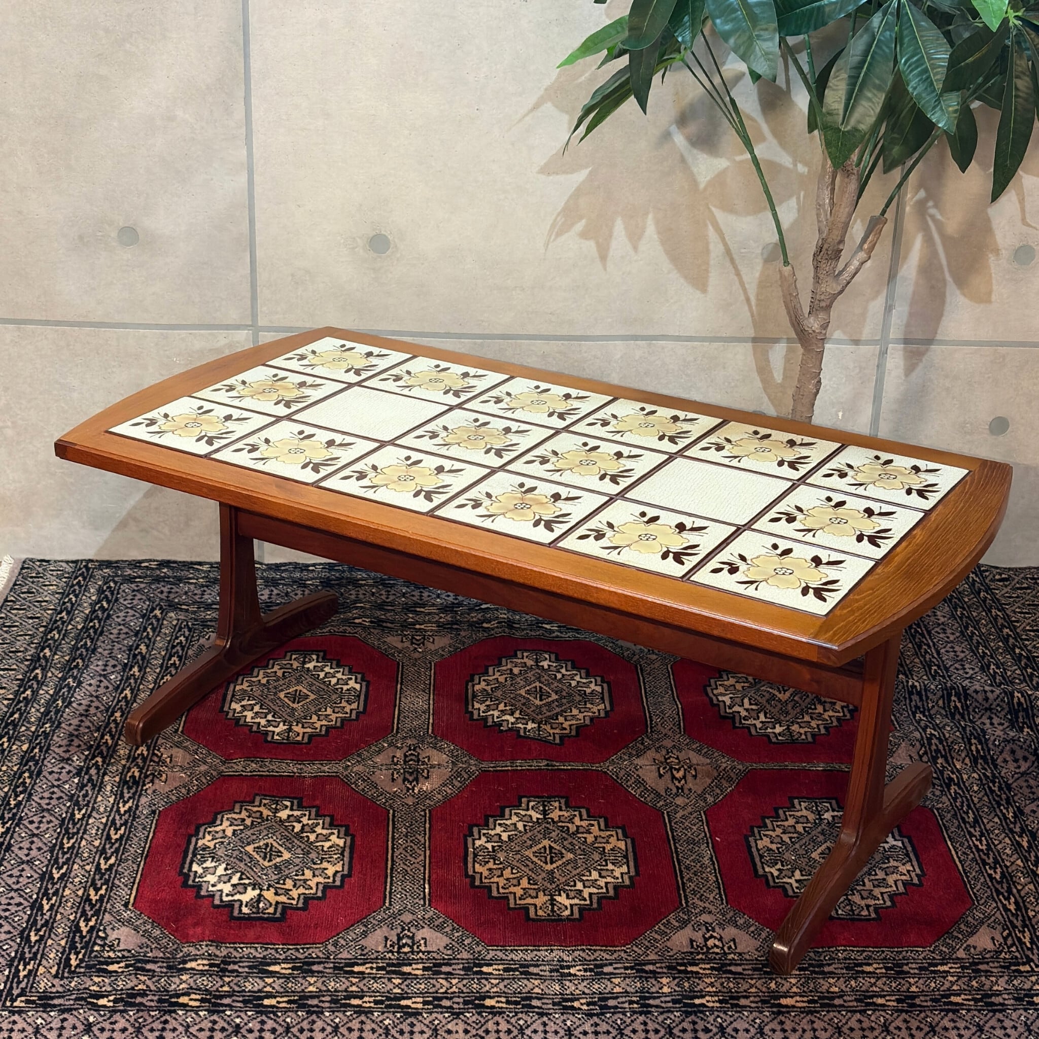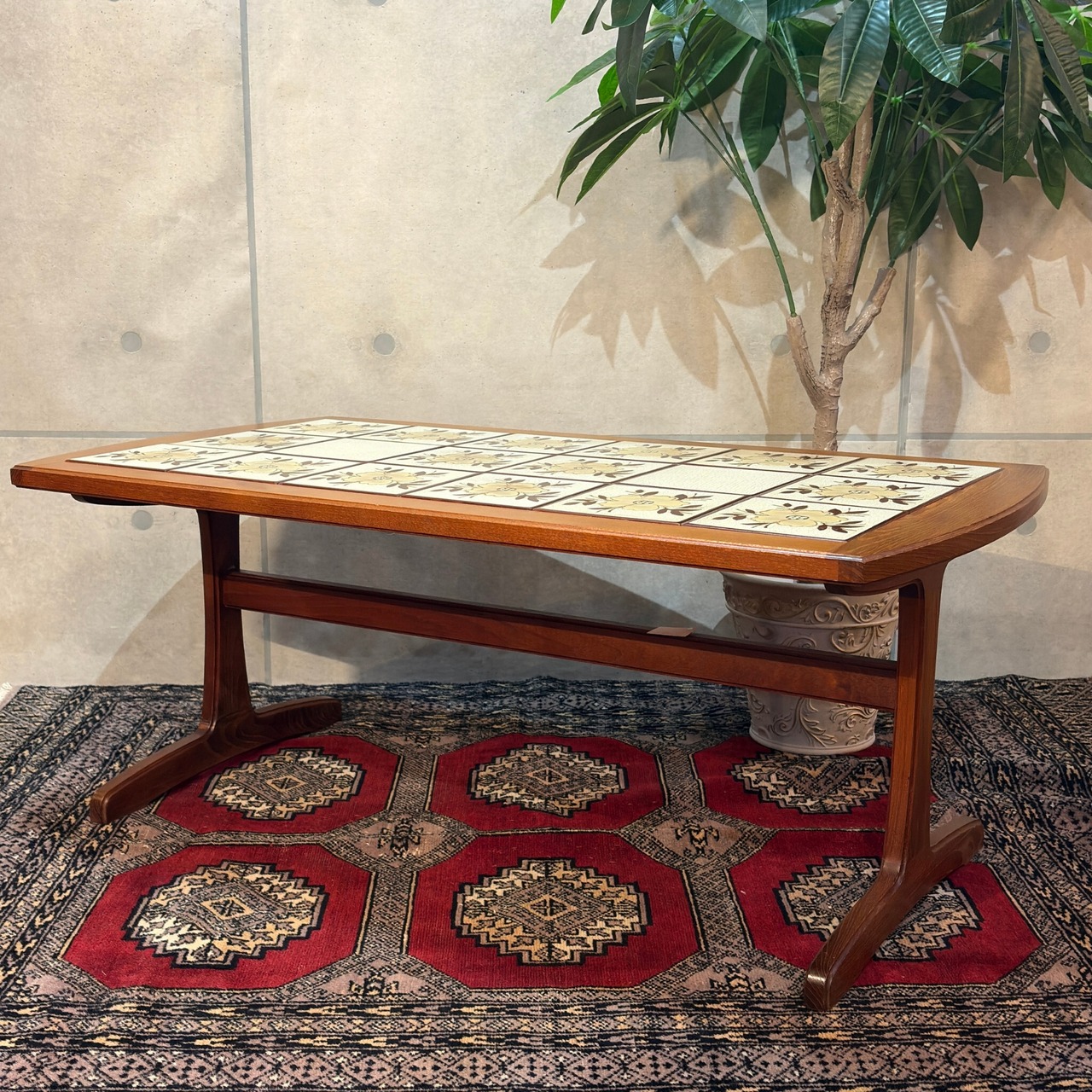 【VINTAGE】タイルトップ センターテーブル リビングテーブル | 1960s デンマーク様式 トレッスルベース UKヴィンテージ ミッドセンチュリー