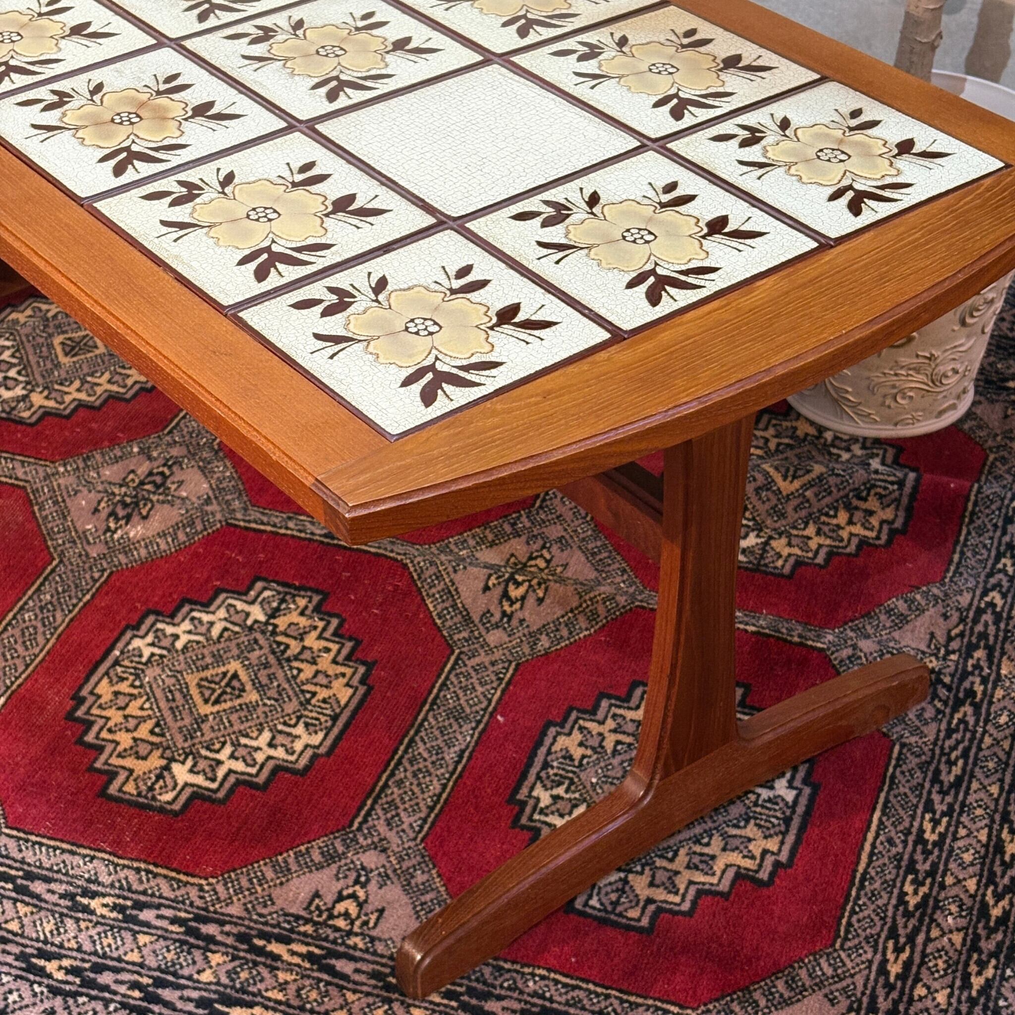 チーク材とセラミックタイルが組み合わされた1960年代の英国ヴィンテージ・コーヒーテーブルです。当時における北欧モダンの影響を受けたデザインが魅力です。