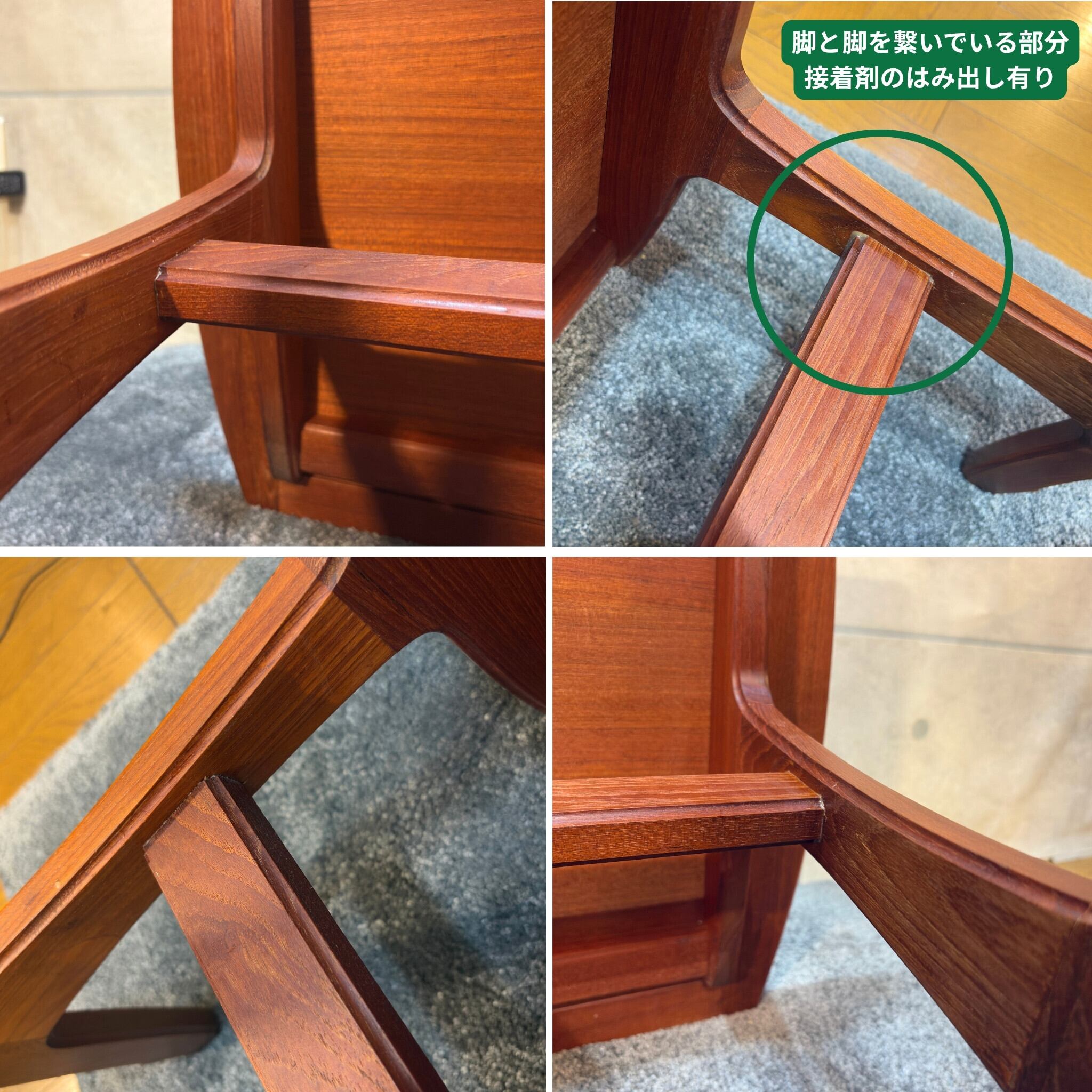 脚の接合部に接着剤のはみ出しが残っています。この時代における手仕事の痕跡であり、個性としてご理解ください。