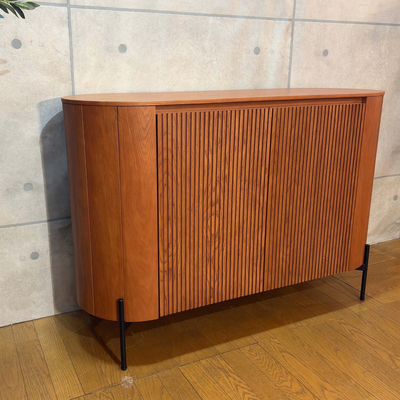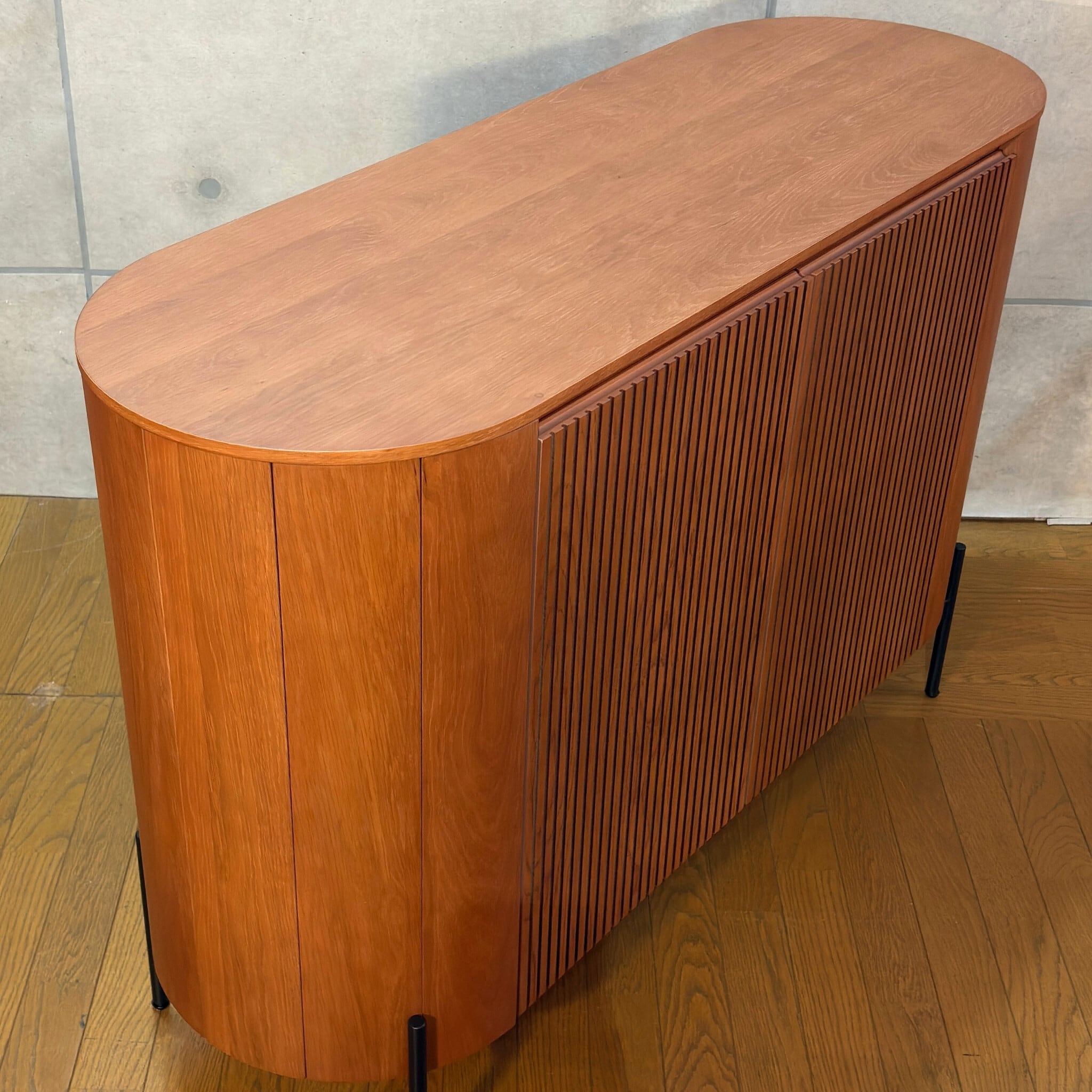 【新品】Mid-Century Oval Sideboard / ミッドセンチュリーデザイン オーバル サイドボード 幅120 オーク材 キャビネット 間仕切り