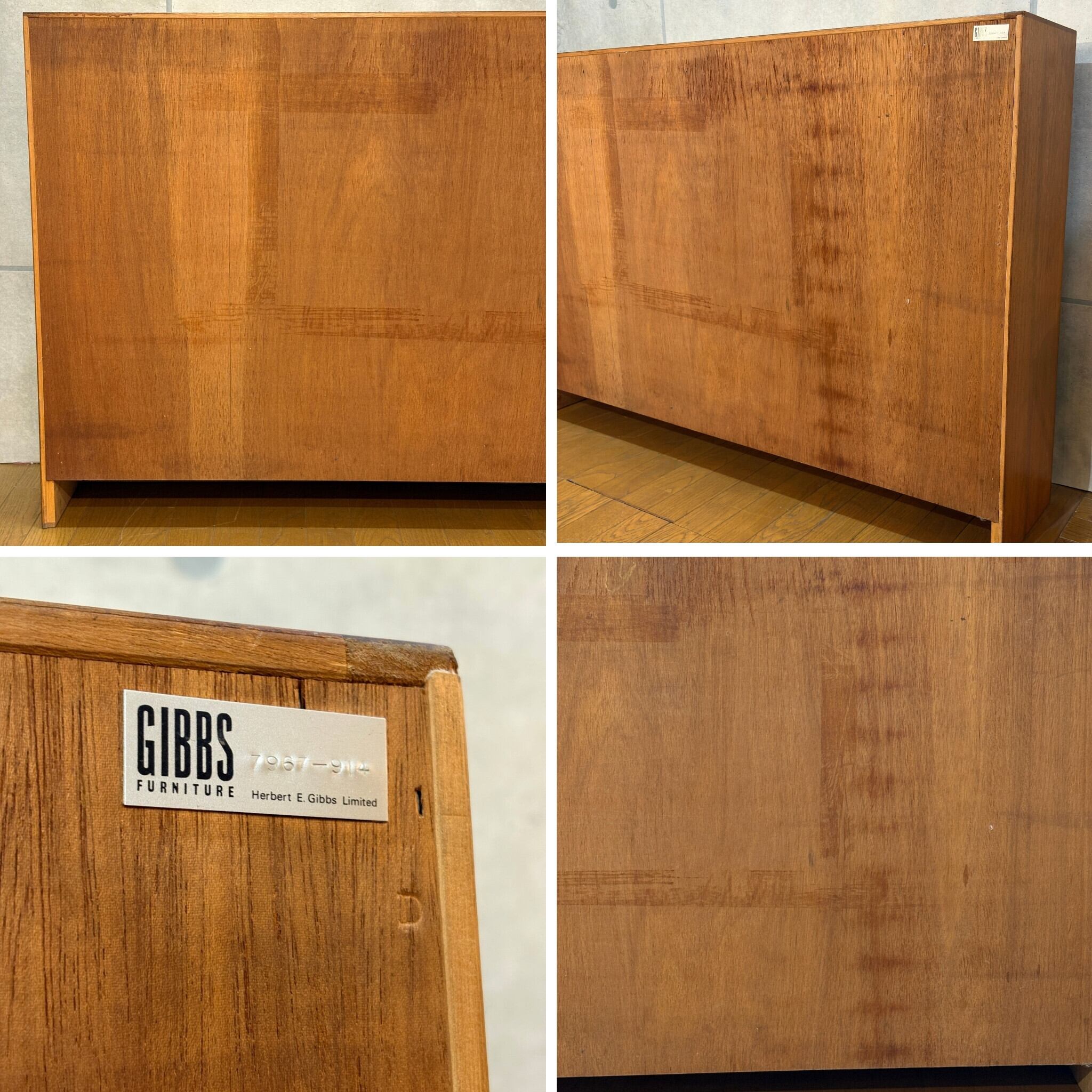 本商品はその全盛期である1960〜70年代頃の貴重なヴィンテージ品と推定されます。背面に残る「GIBBS FURNITURE Herbert E Gibbs Limited」のロゴプレートが確かな出自を証明しています。