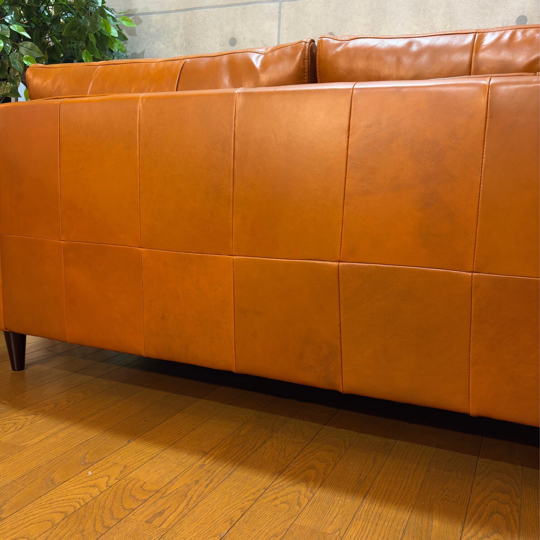 市場には「本革ソファ」という表記で人の肌が触れない背面や側面などに合成皮革(合皮)を使用しているモデルが多く存在します。本商品は座面・背面・側面・裏側まで全ての面をオイルレザーで覆った総革張り仕様で360度、革本来の美しいエイジング(経年変化)をお楽しみいただけます。側面や背面から見ても美しく、リビングの間仕切りとして配置しても空間を格調高く演出してくれます。