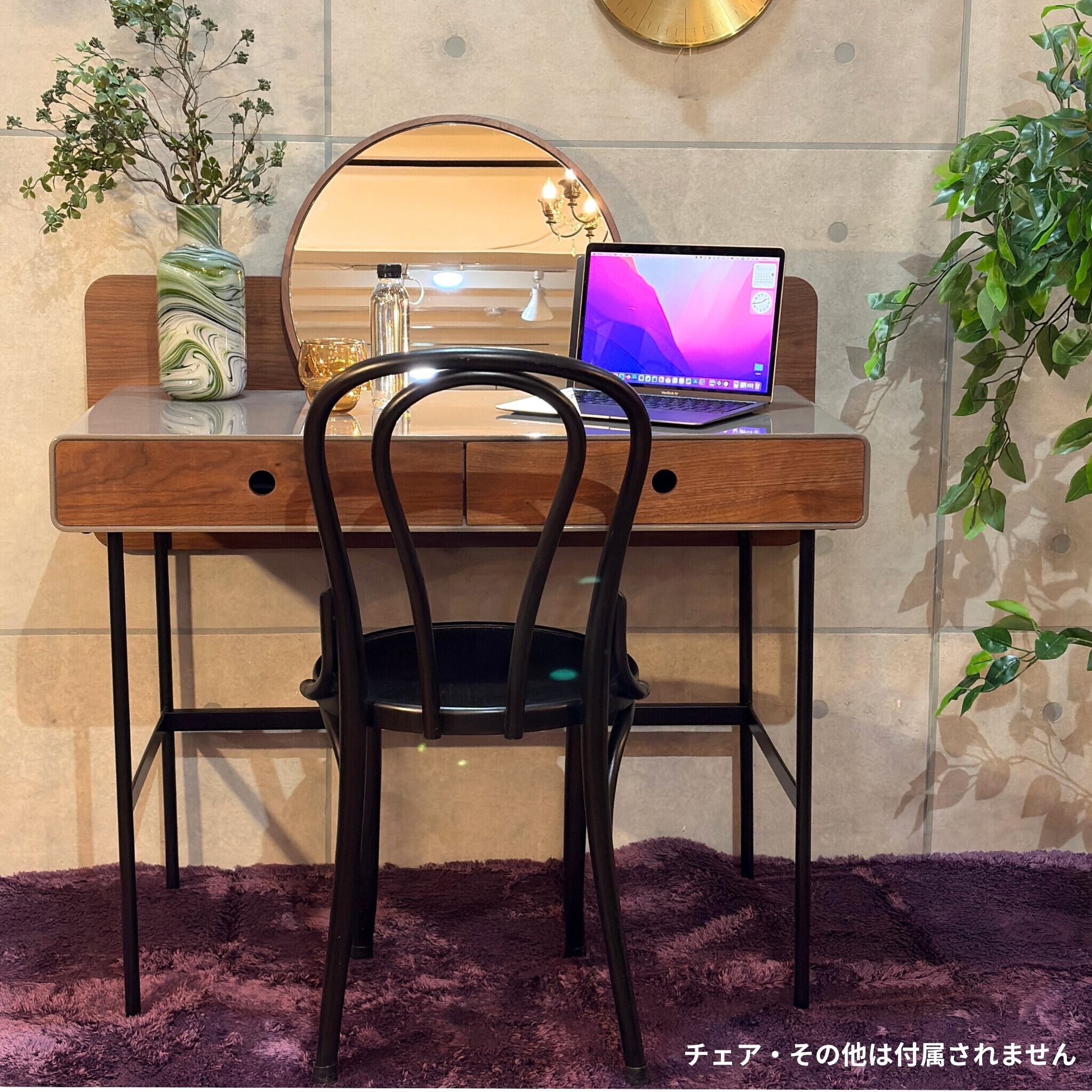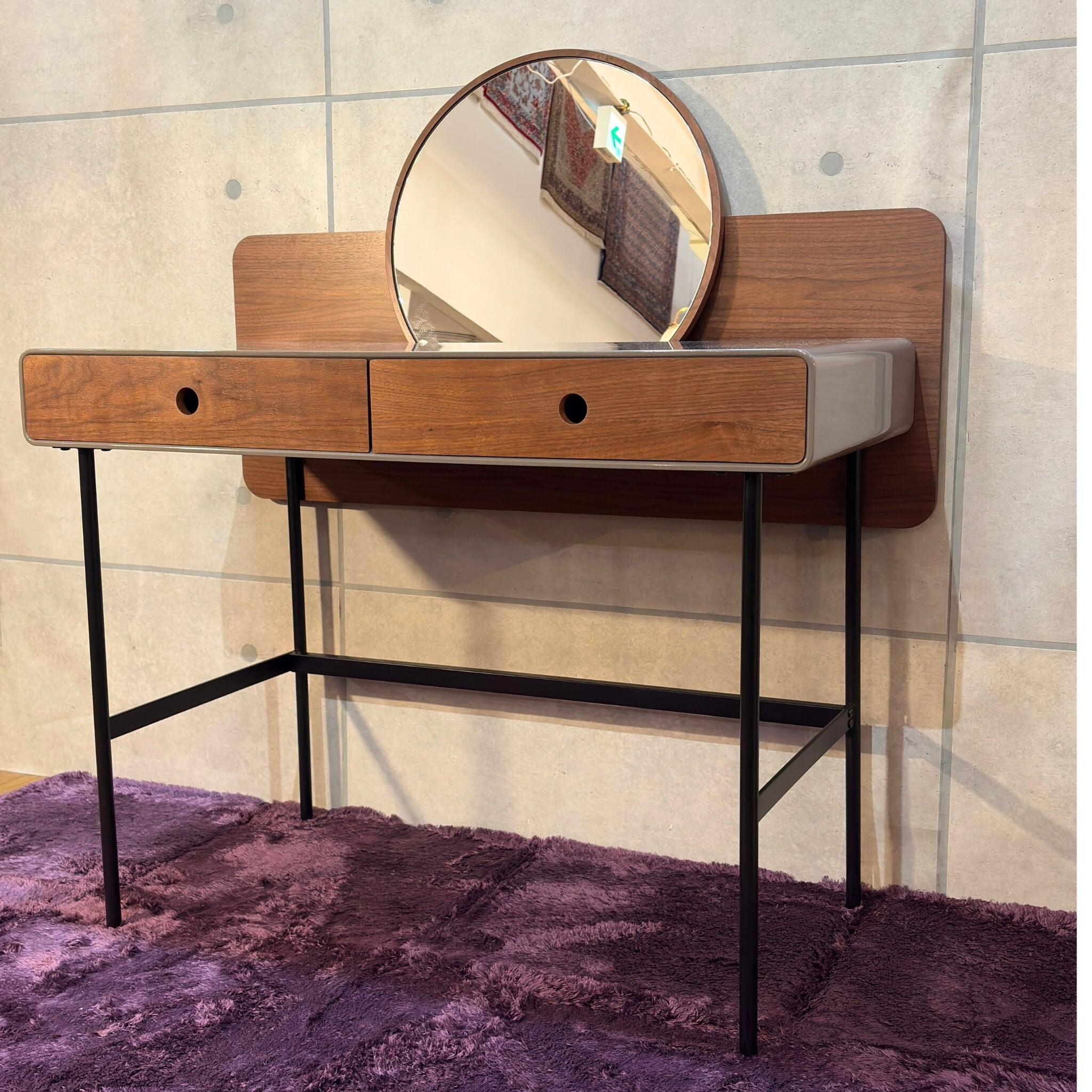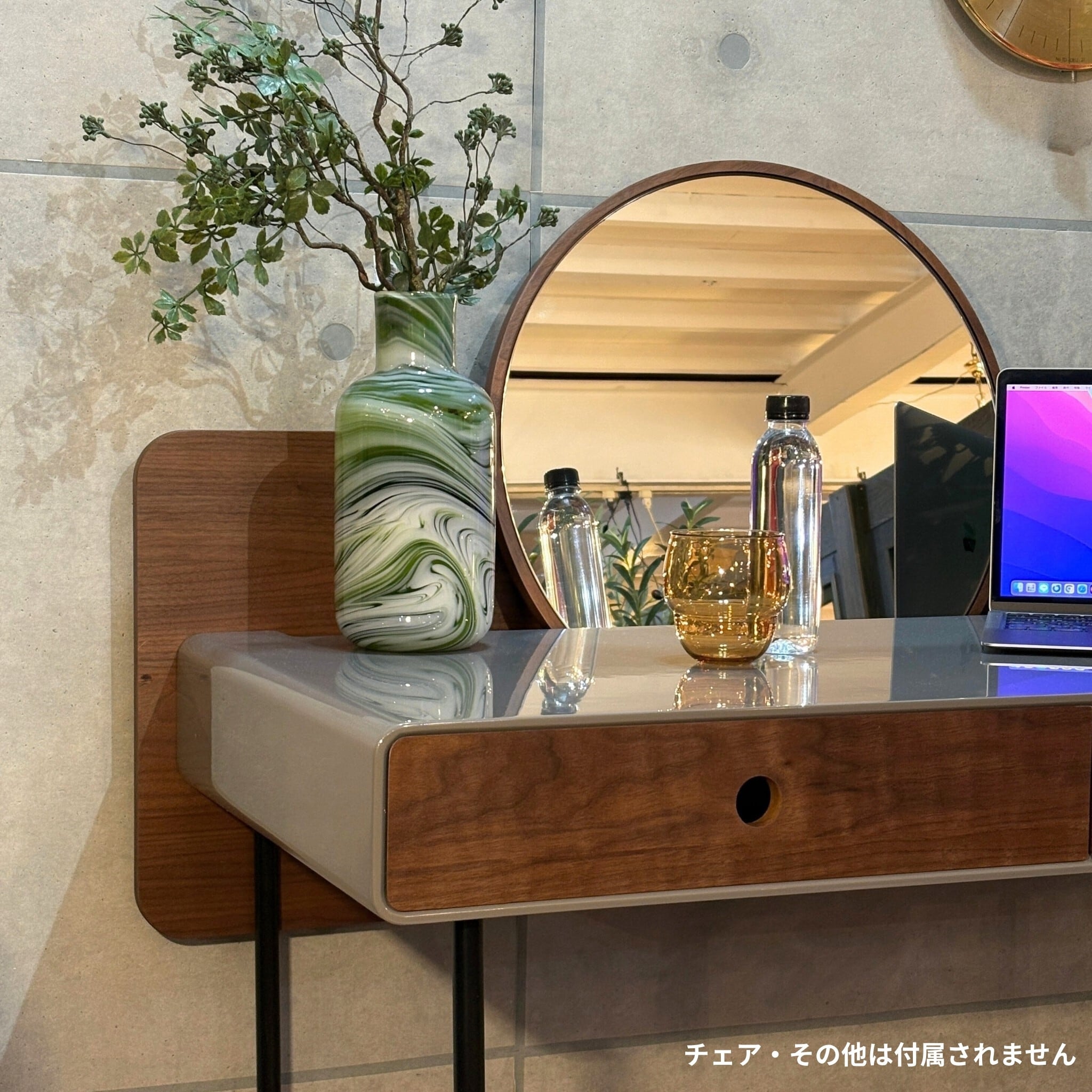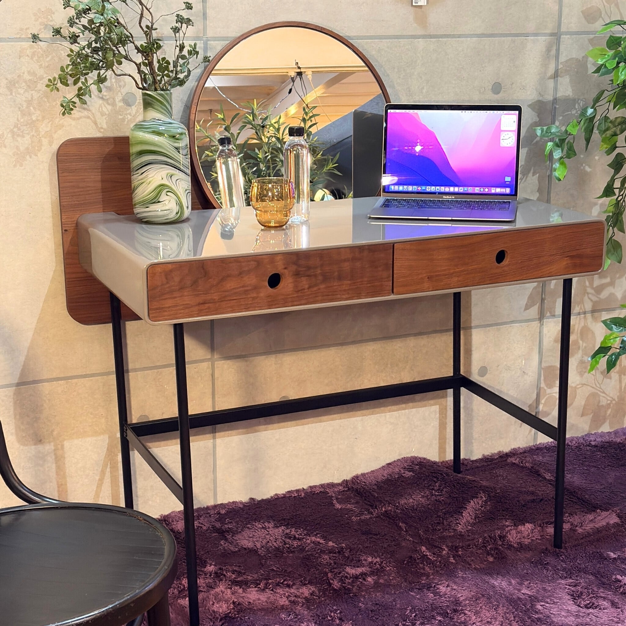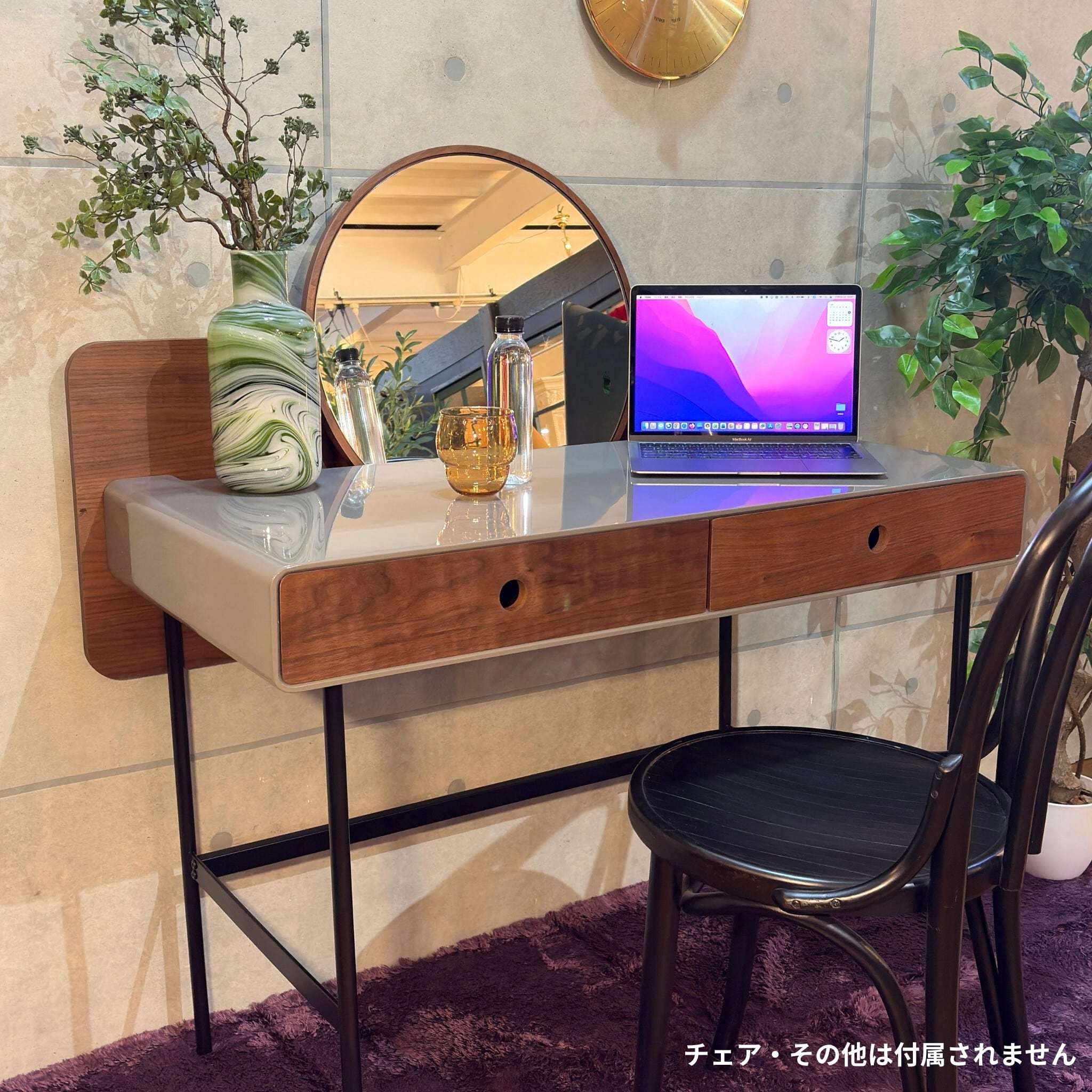 ウォルナット材の温もりとスタイリッシュなグレートーンの天板が見事に融合したモダンデザインのドレッシングデスクです。ドレッサー、ワークデスク、コンソールテーブルとして多用途に活躍します。
