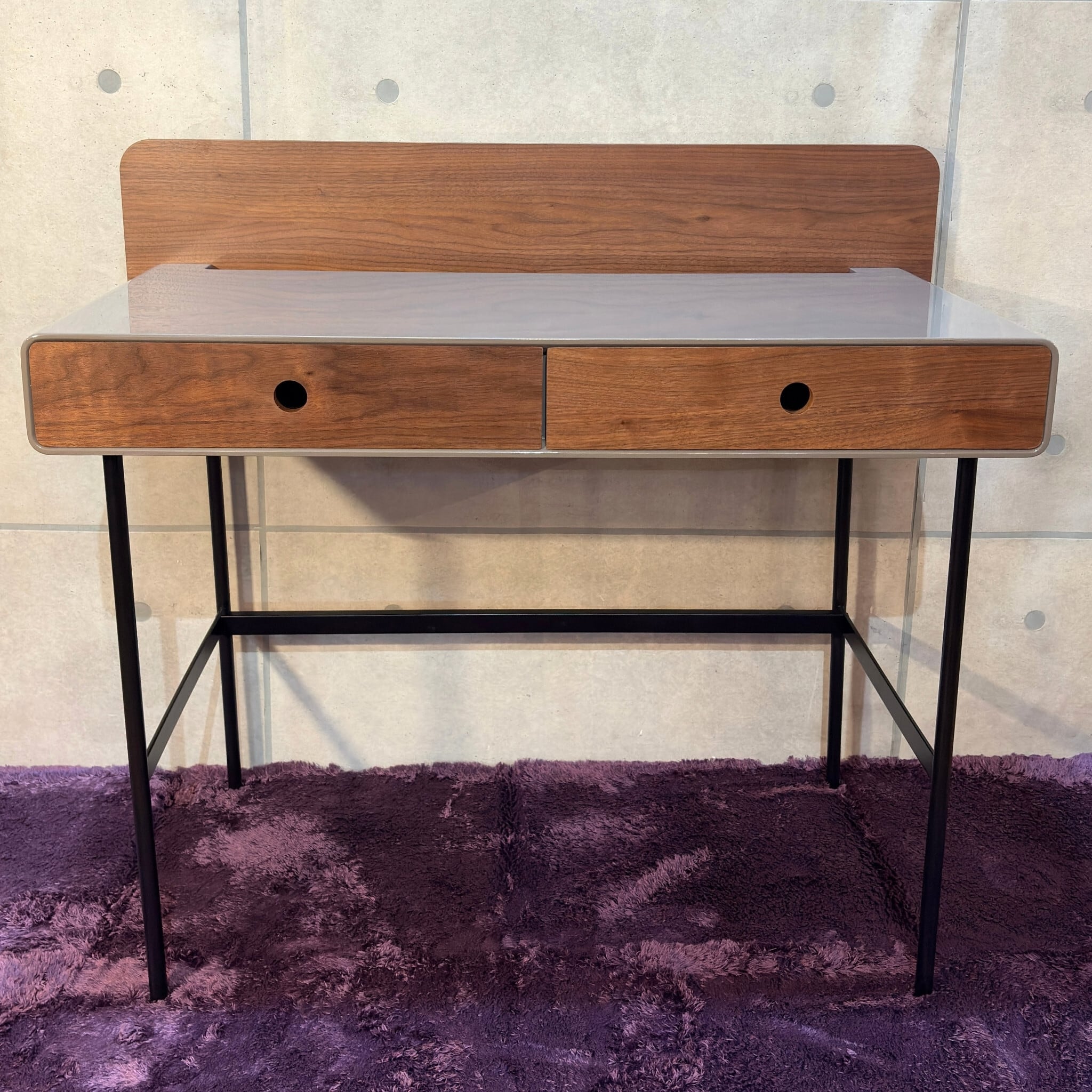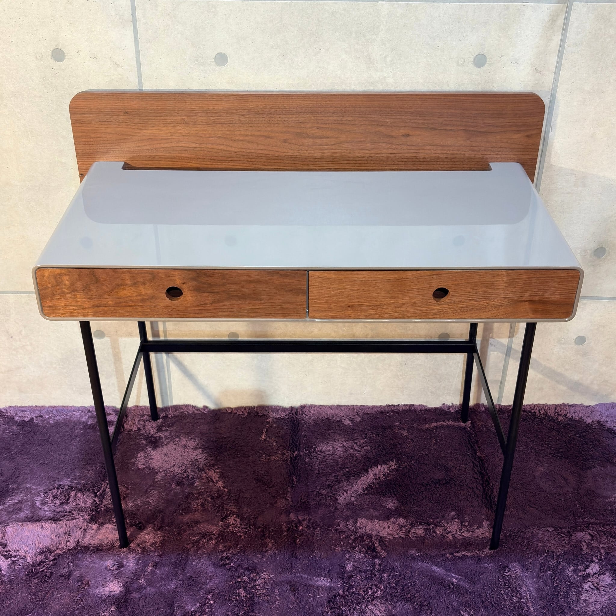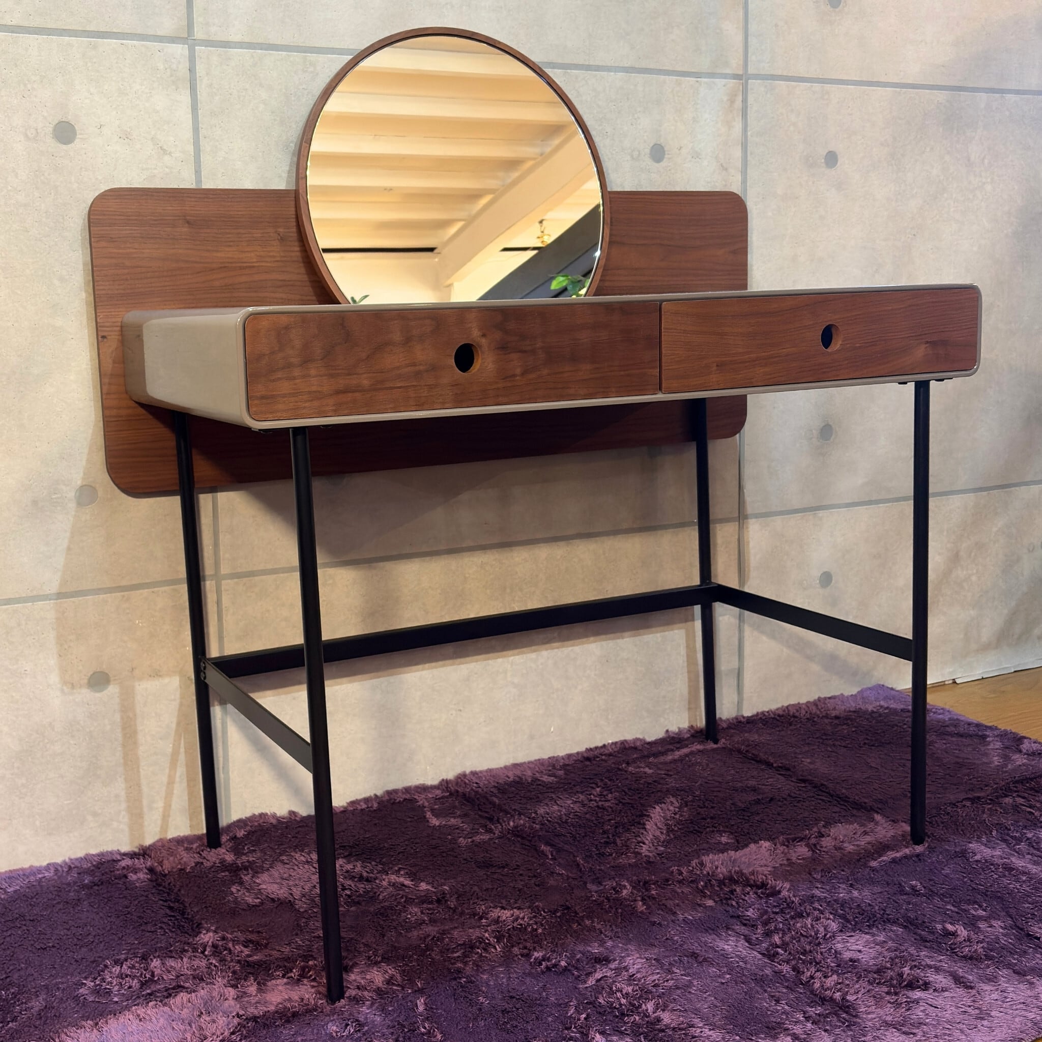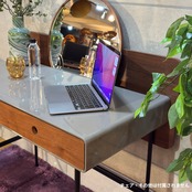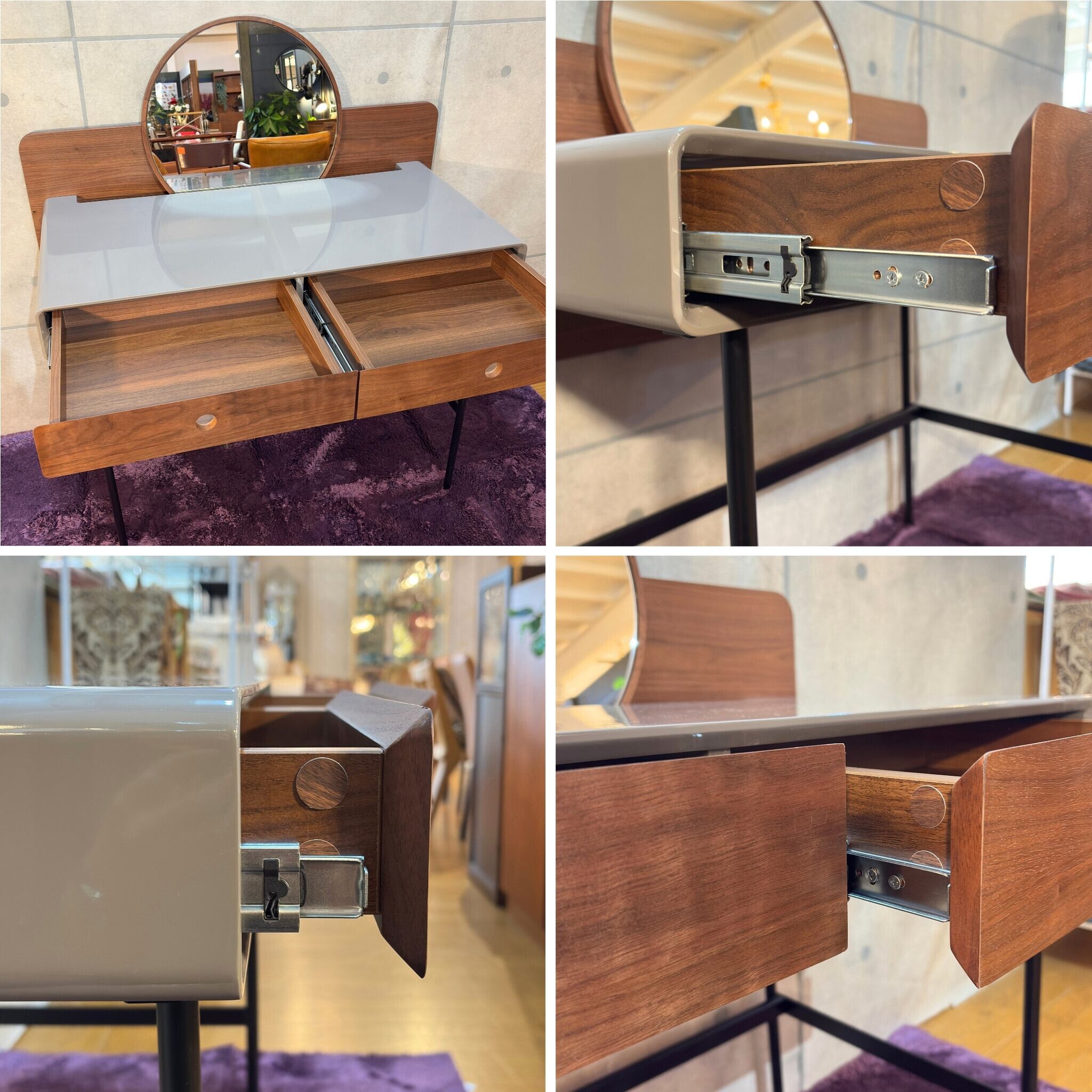ウォルナット材の温もりとスタイリッシュなグレートーンの天板が見事に融合したモダンデザインのドレッシングデスクです。ドレッサー、ワークデスク、コンソールテーブルとして多用途に活躍します。