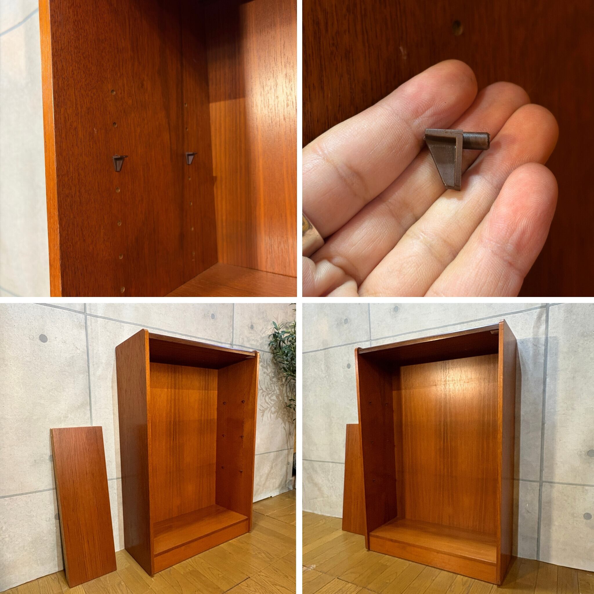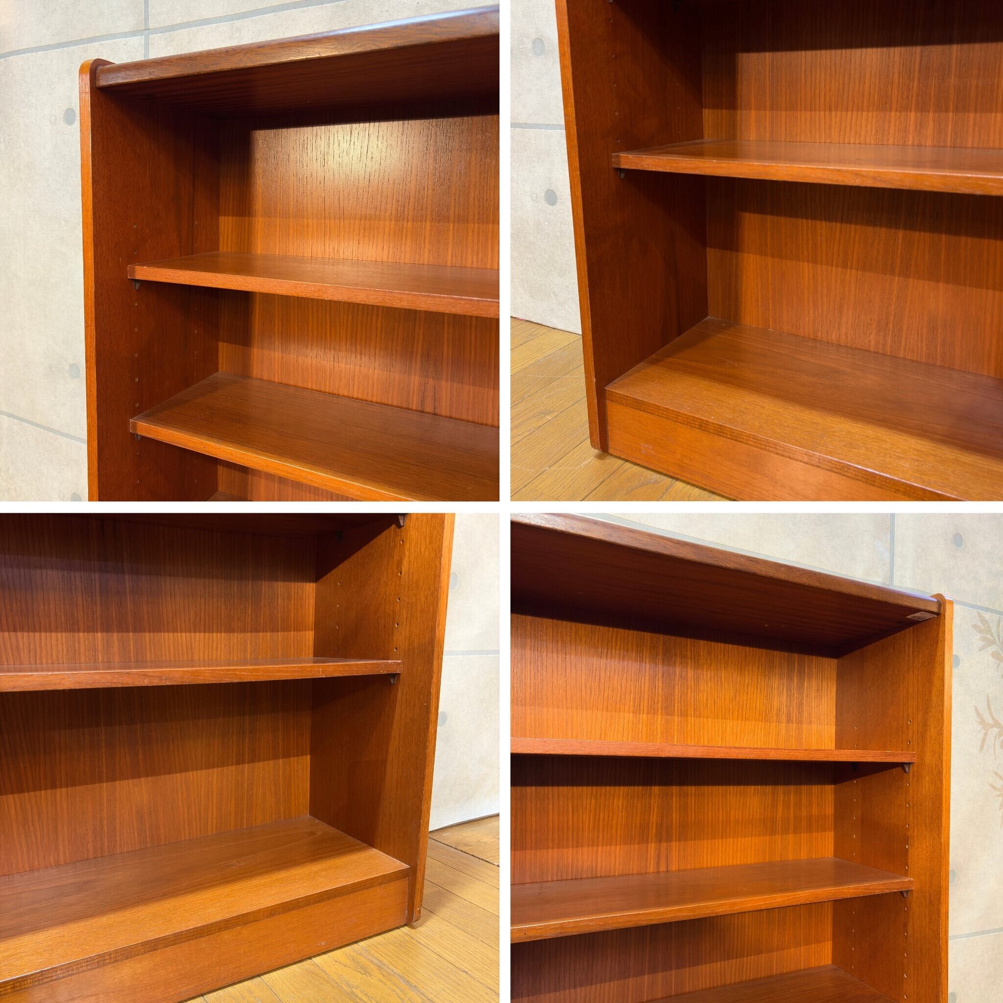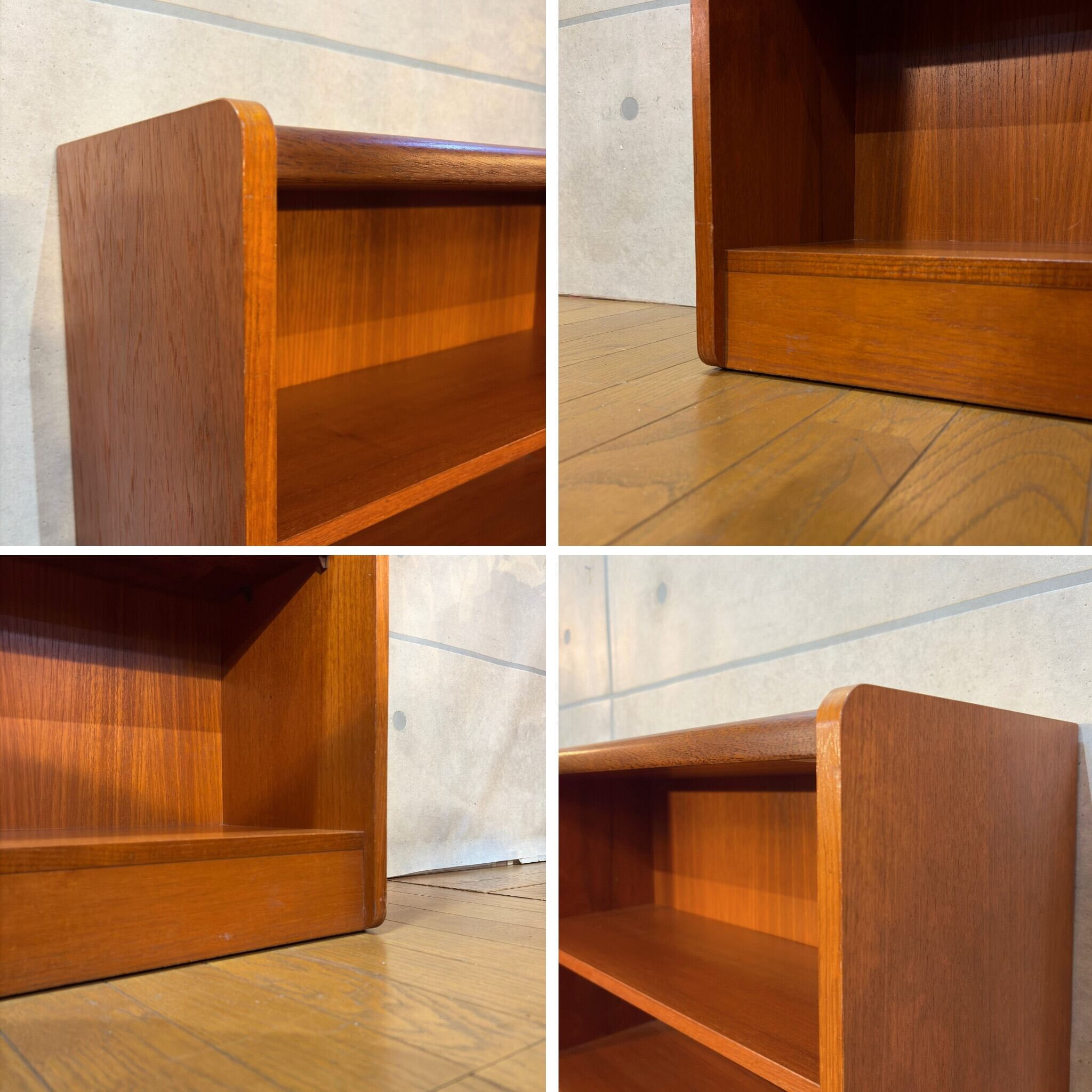 80年代以降になりますとポストモダンやカントリースタイルへ移行していきますのでこのシェルフはチーク材の高品質なミッドセンチュリーモダン家具を生産する最後の時代に作られたものと推測できます。