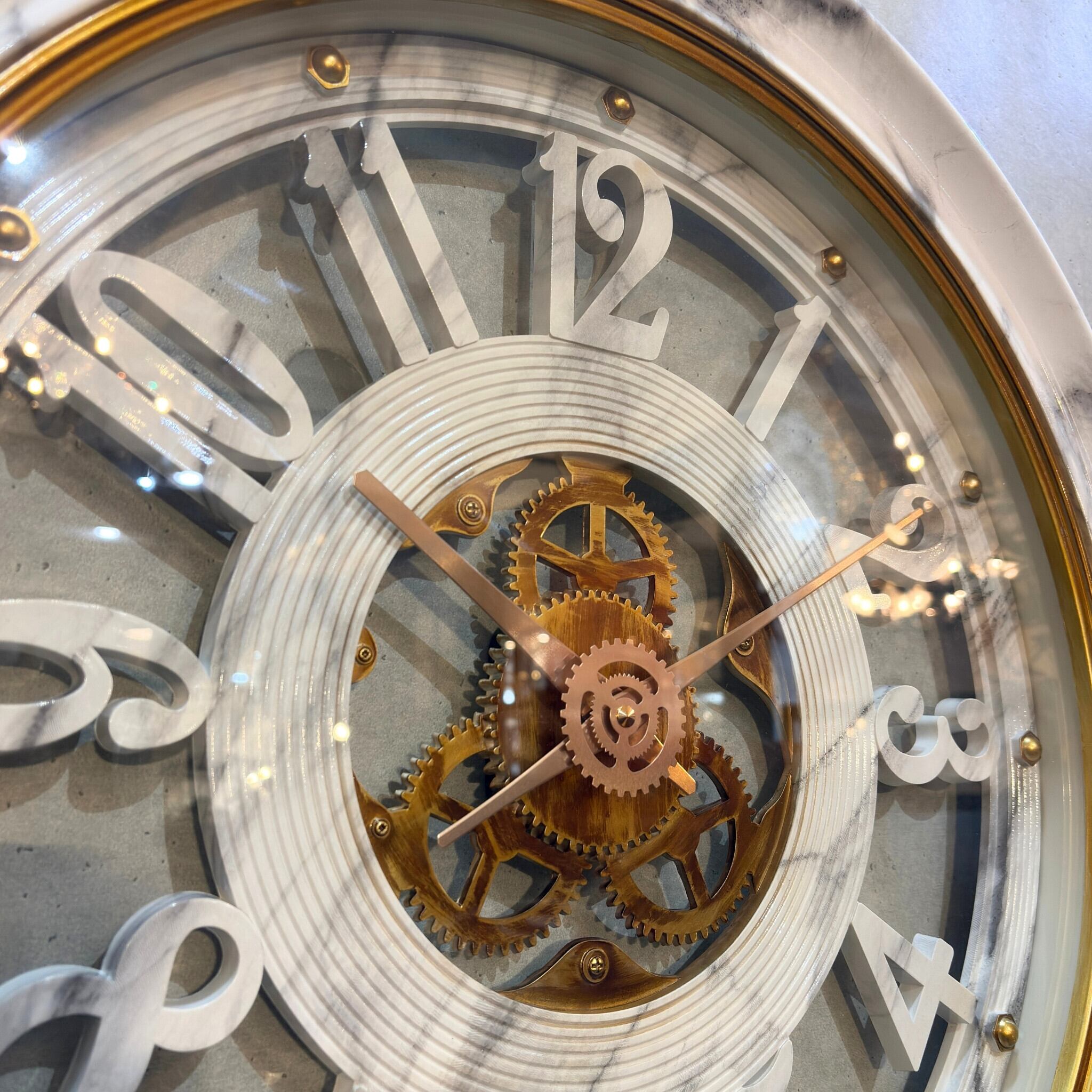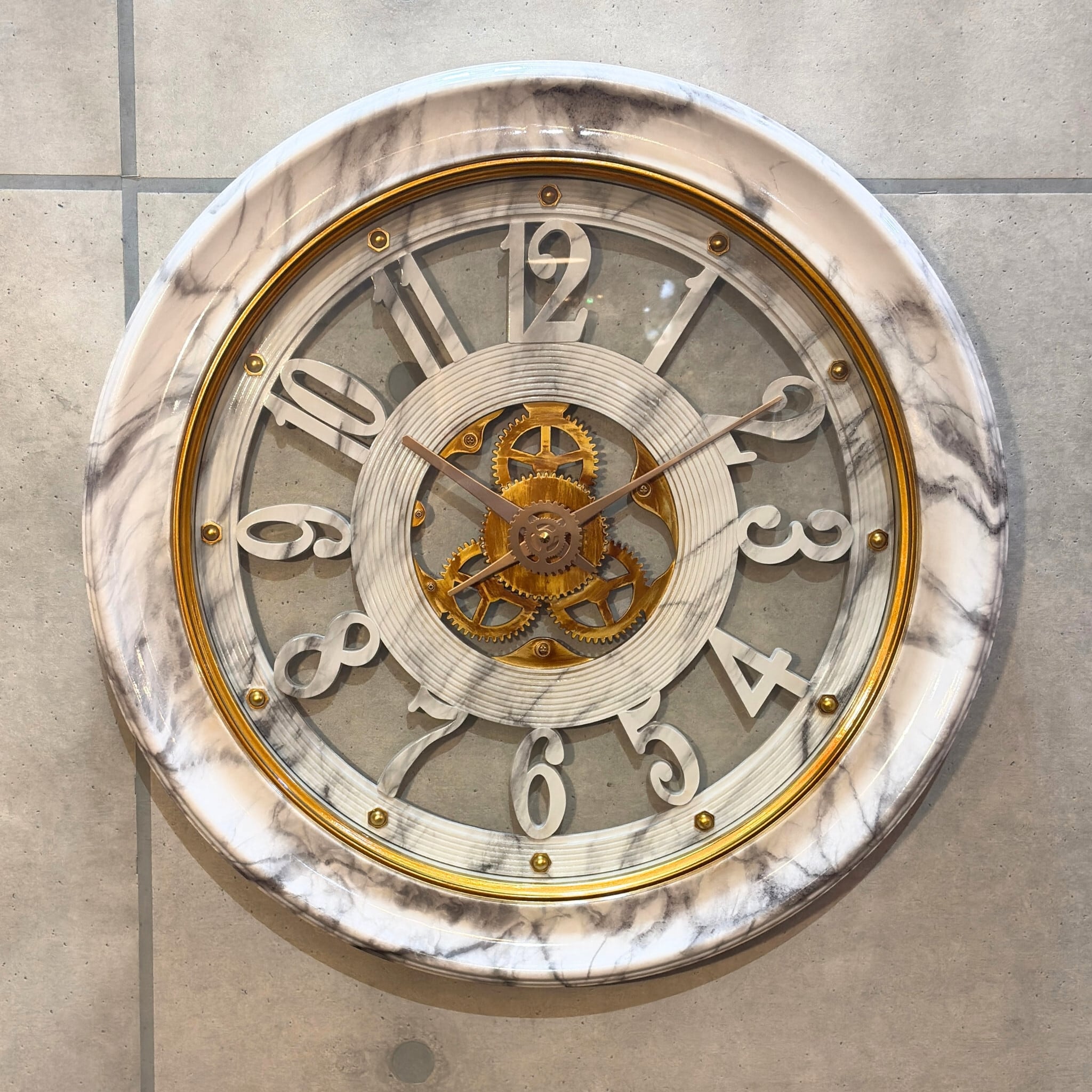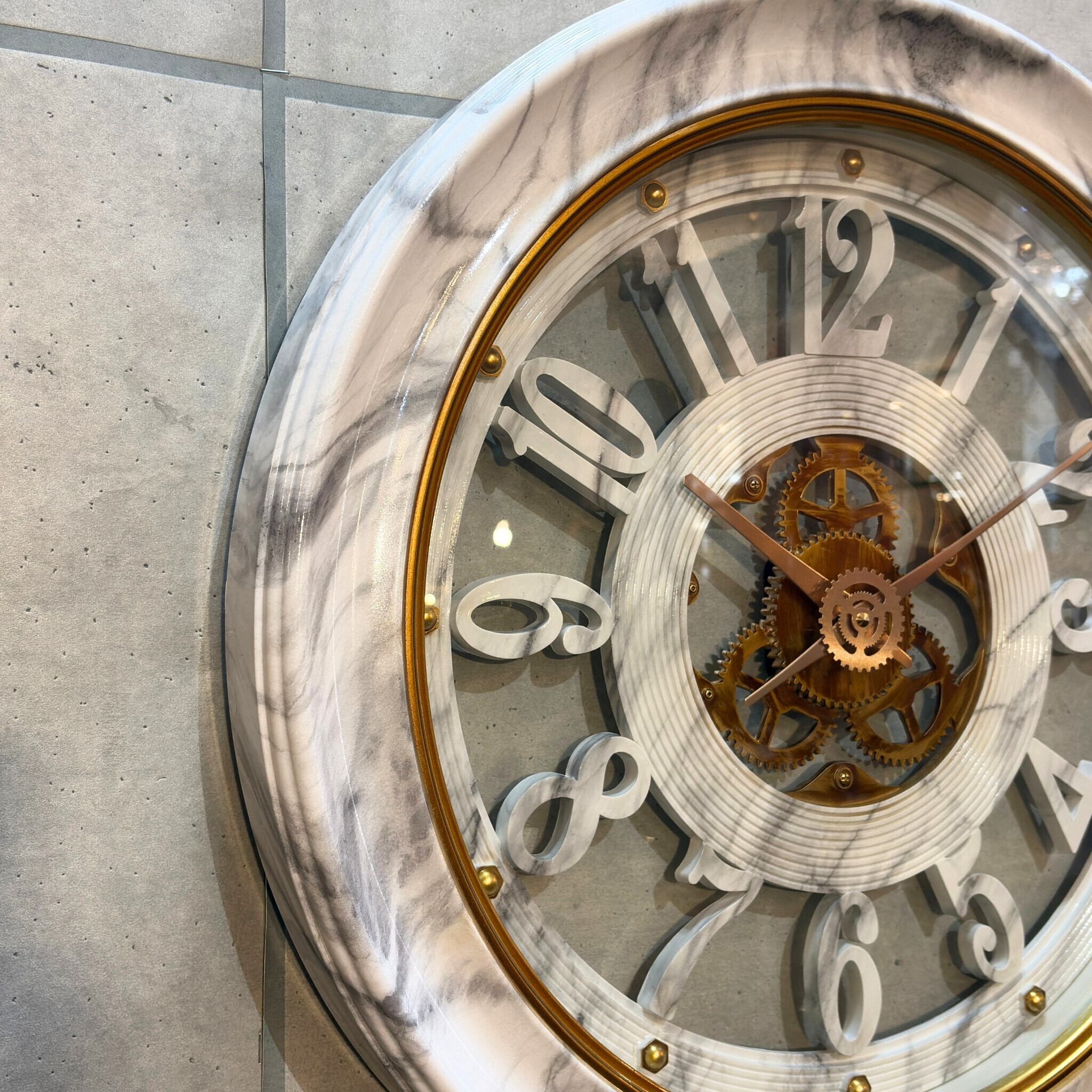 #ウォールクロック #掛け時計 #大理石調 #大型時計 #ゴールドインテリア #スケルトン