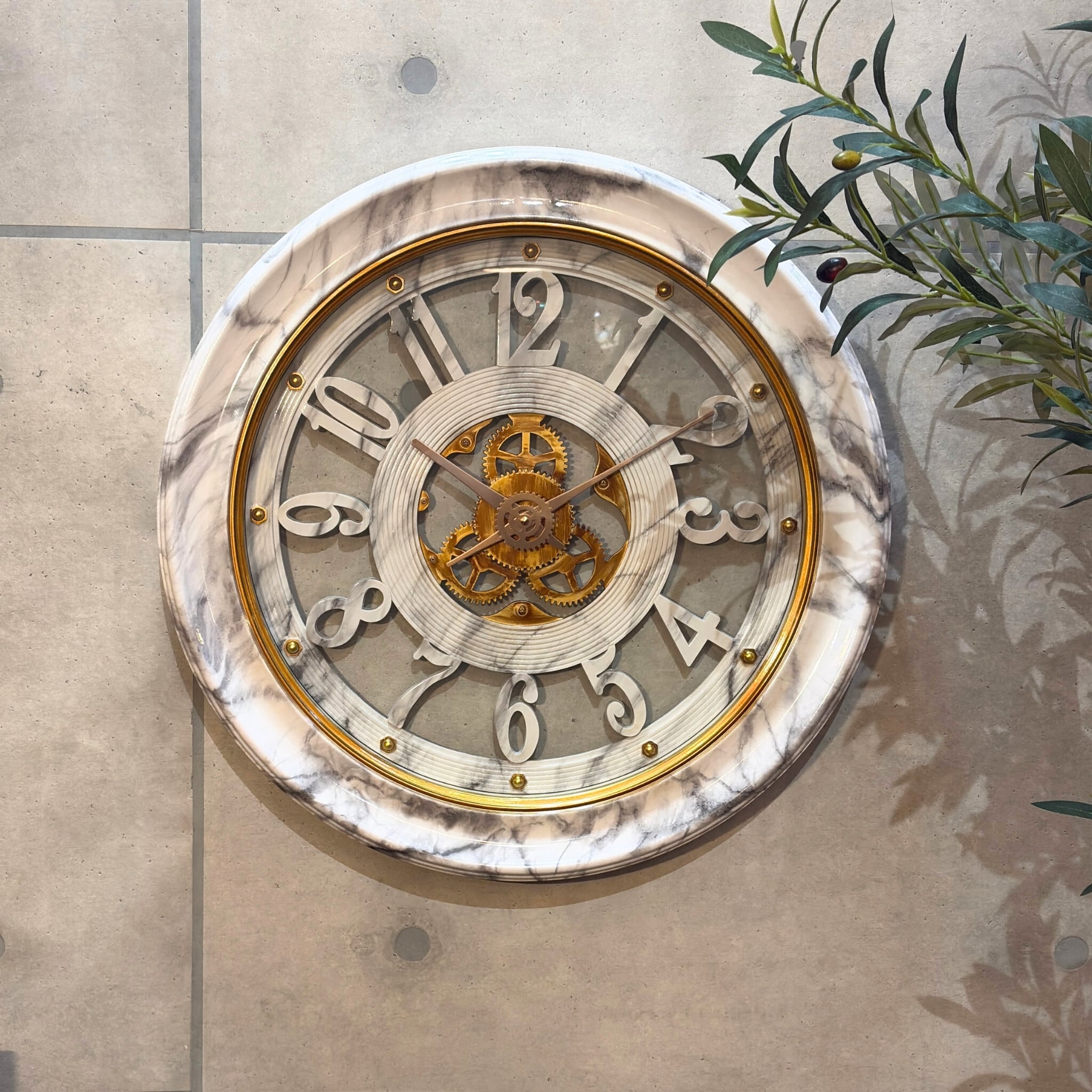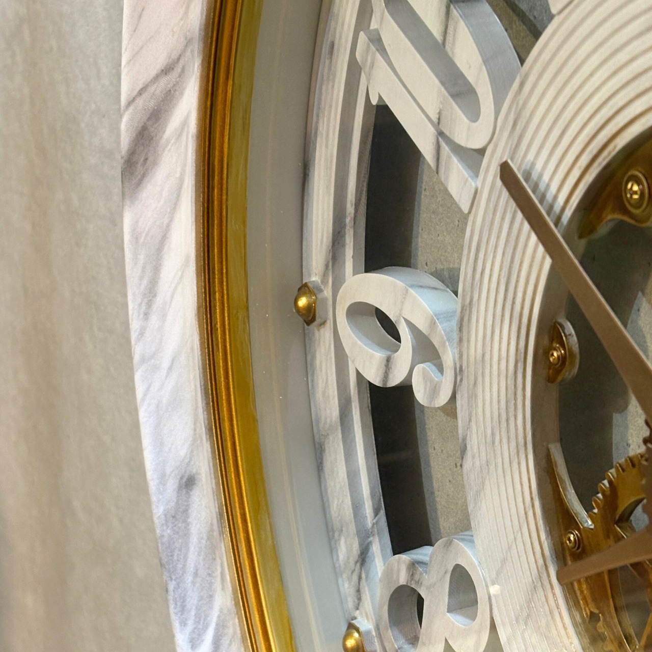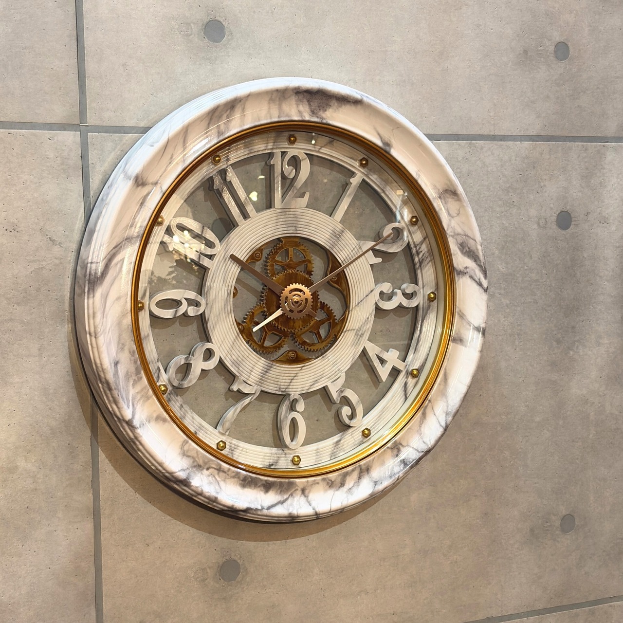 #ウォールクロック #掛け時計 #大理石調 #大型時計 #ゴールドインテリア #スケルトン