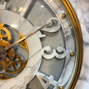大理石調のフレーム/ゴールドの装飾/そしてスケルトンギア(歯車)の組み合わせはクラシックでありながらモダンな空間にも調和し、適度なアクセントを生み出してくれます。