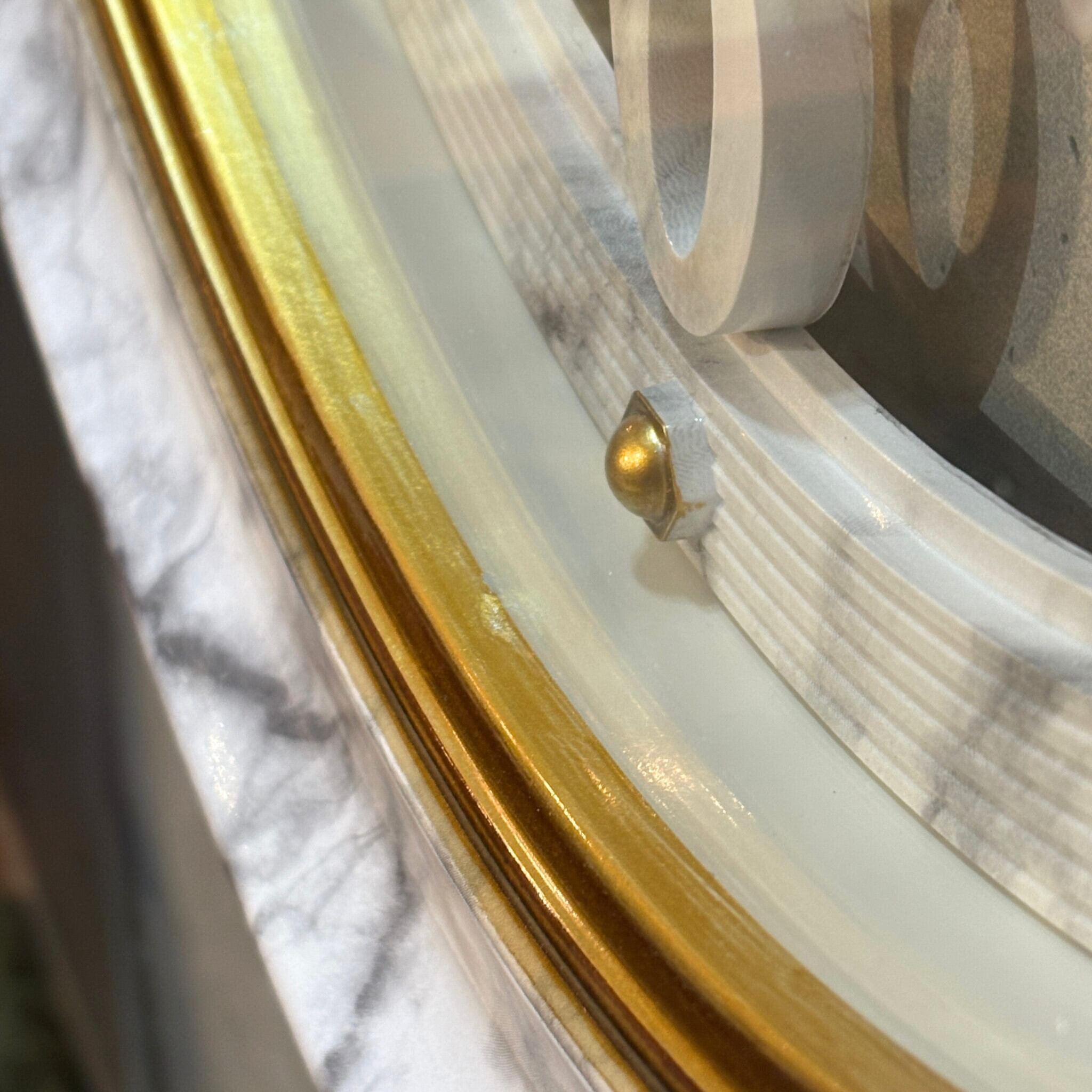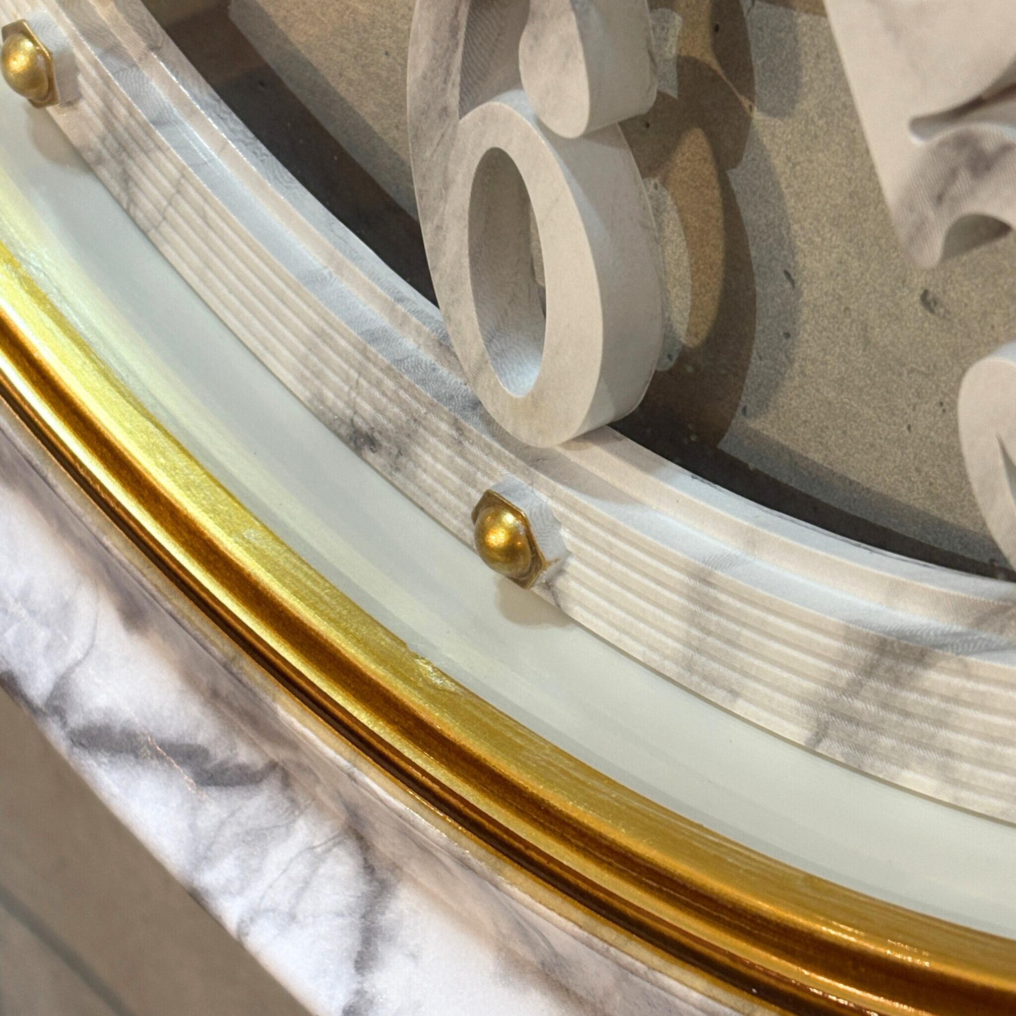 フレームは高級感あふれるマーブル柄(大理石調)。内部のゴールドのリングと装飾が光を反射し、ージャスな雰囲気を醸し出します。
