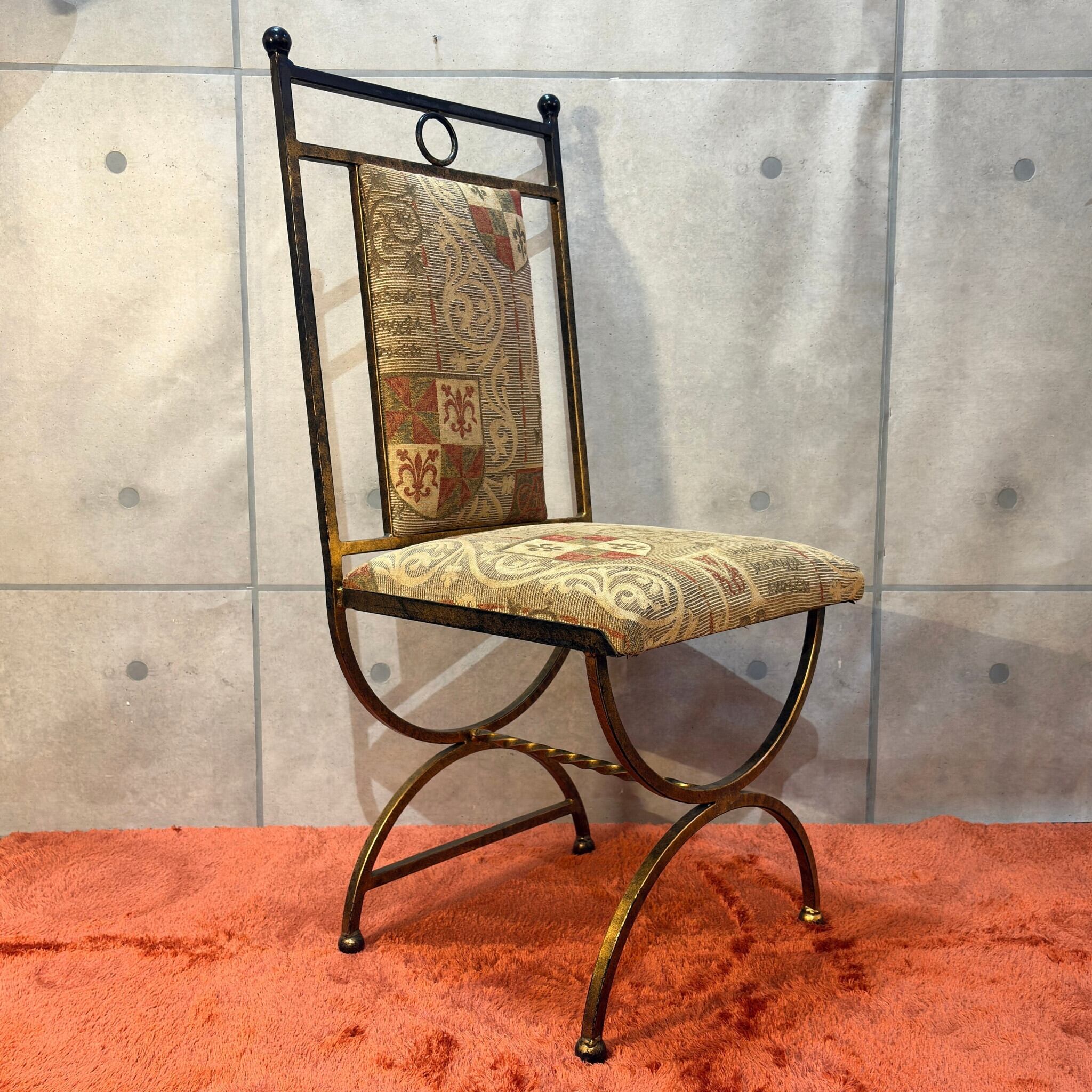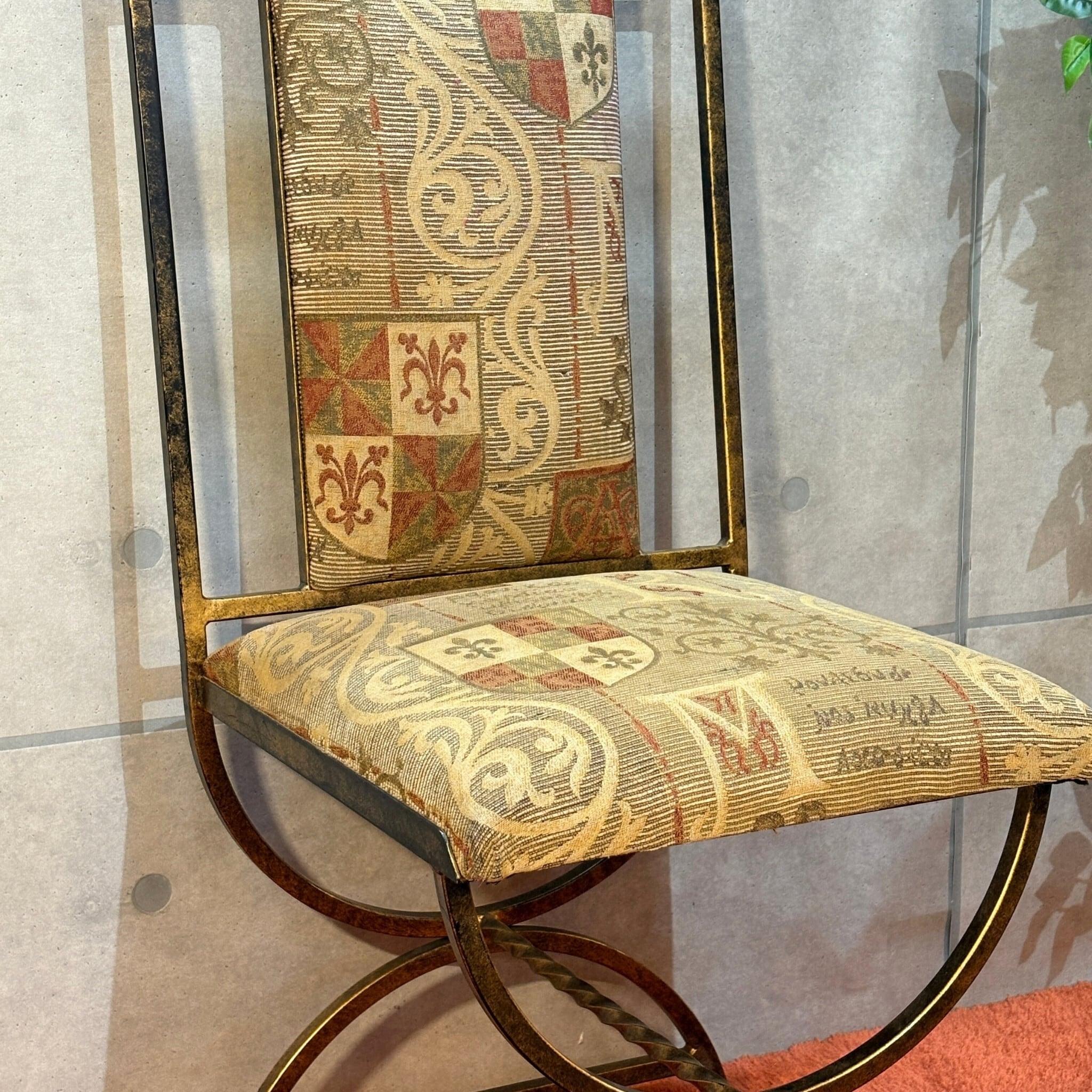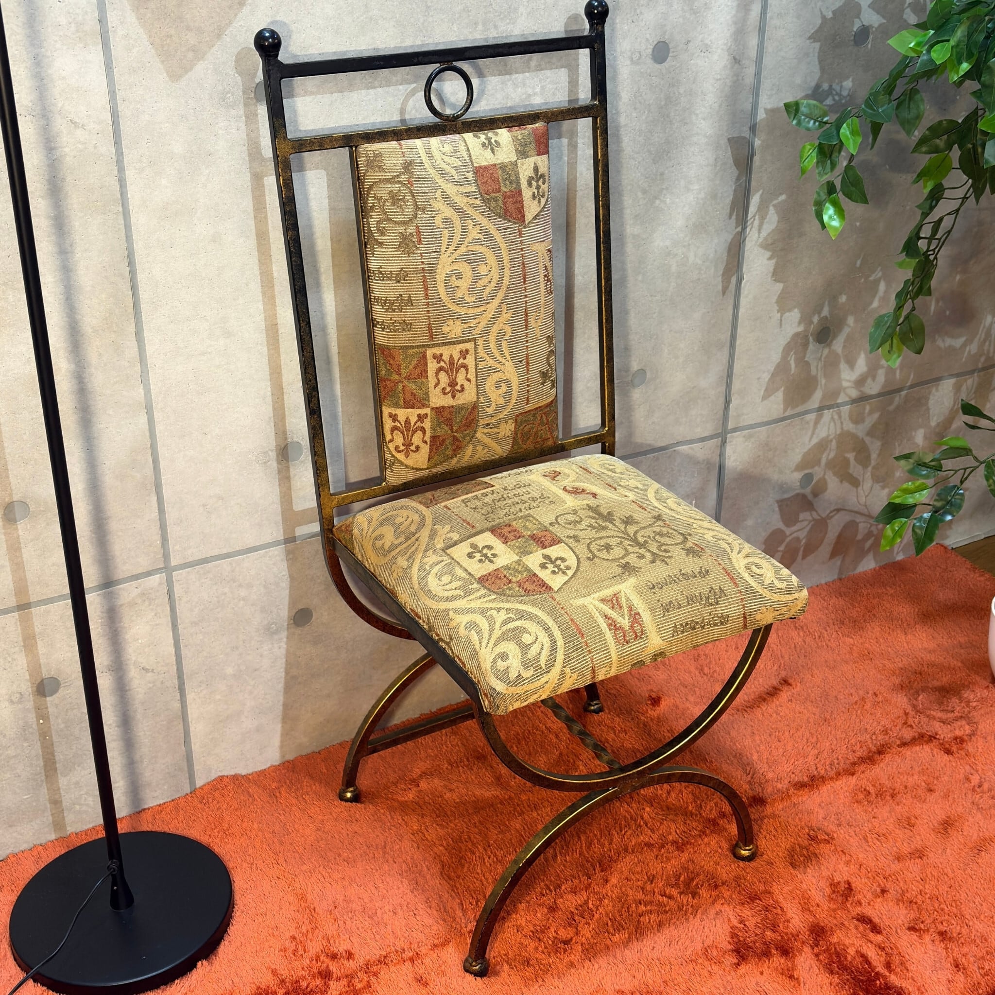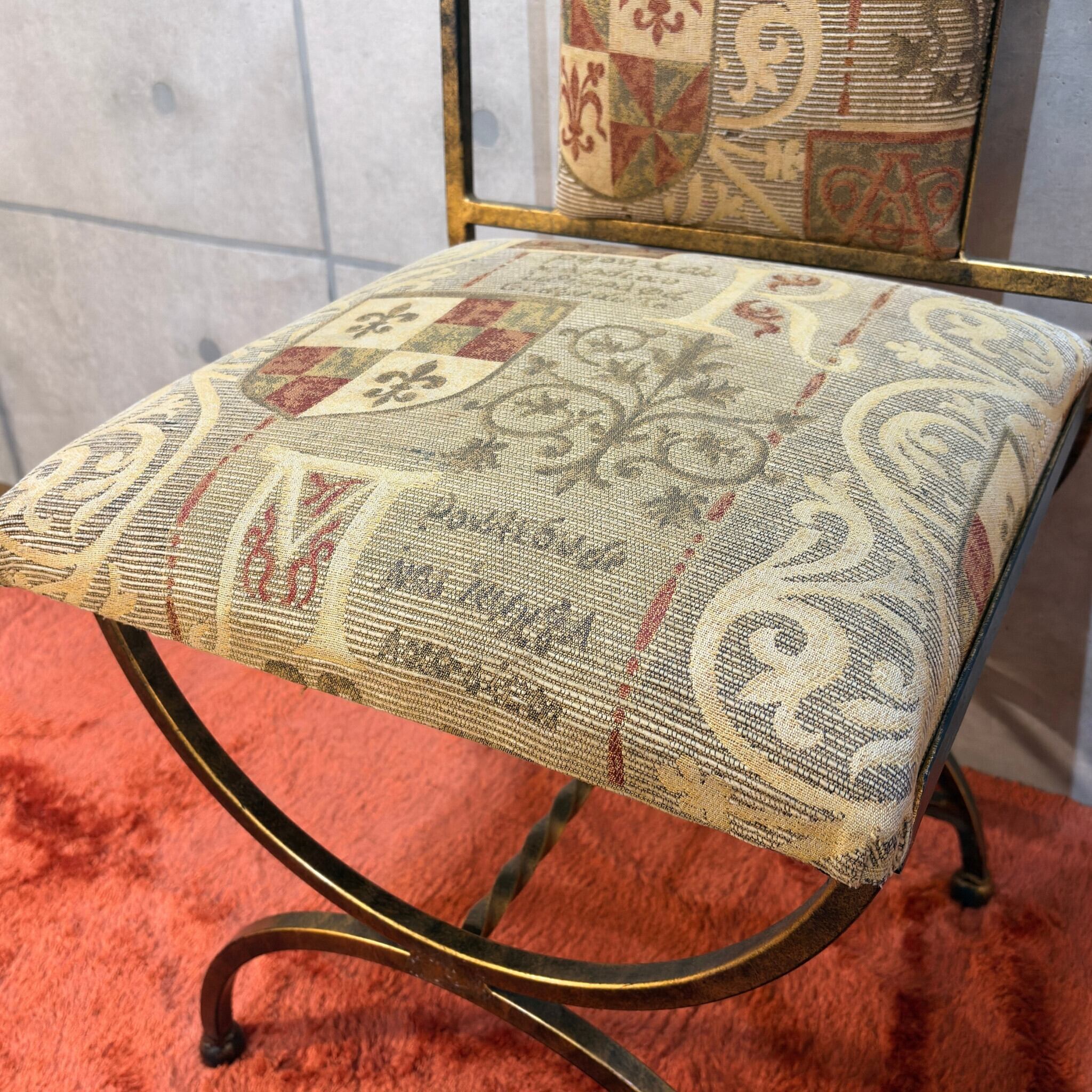 【VINTAGE】アイアンチェア タペストリー&サヴォナローラ風デザイン | クラシック アンティーク UKヴィンテージ