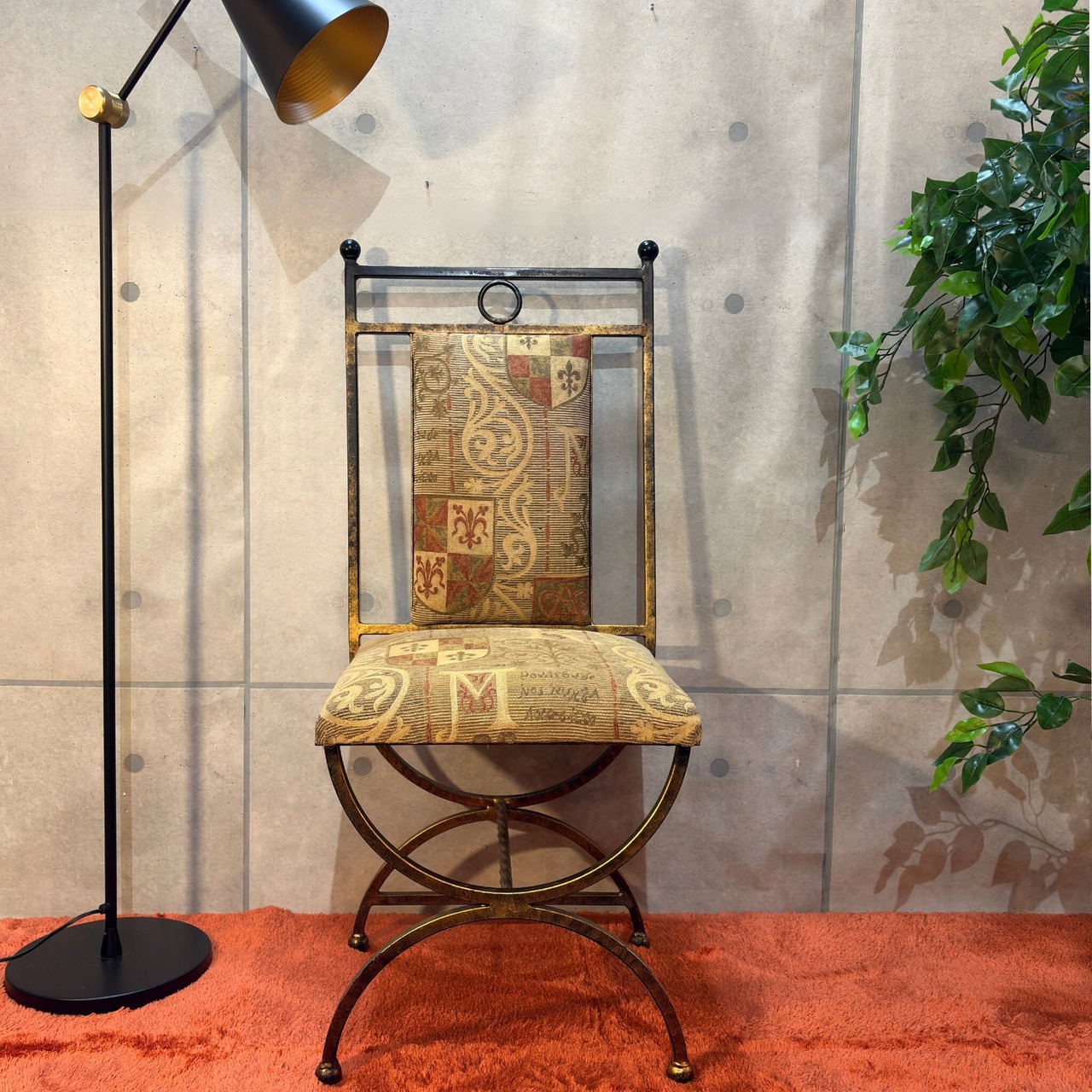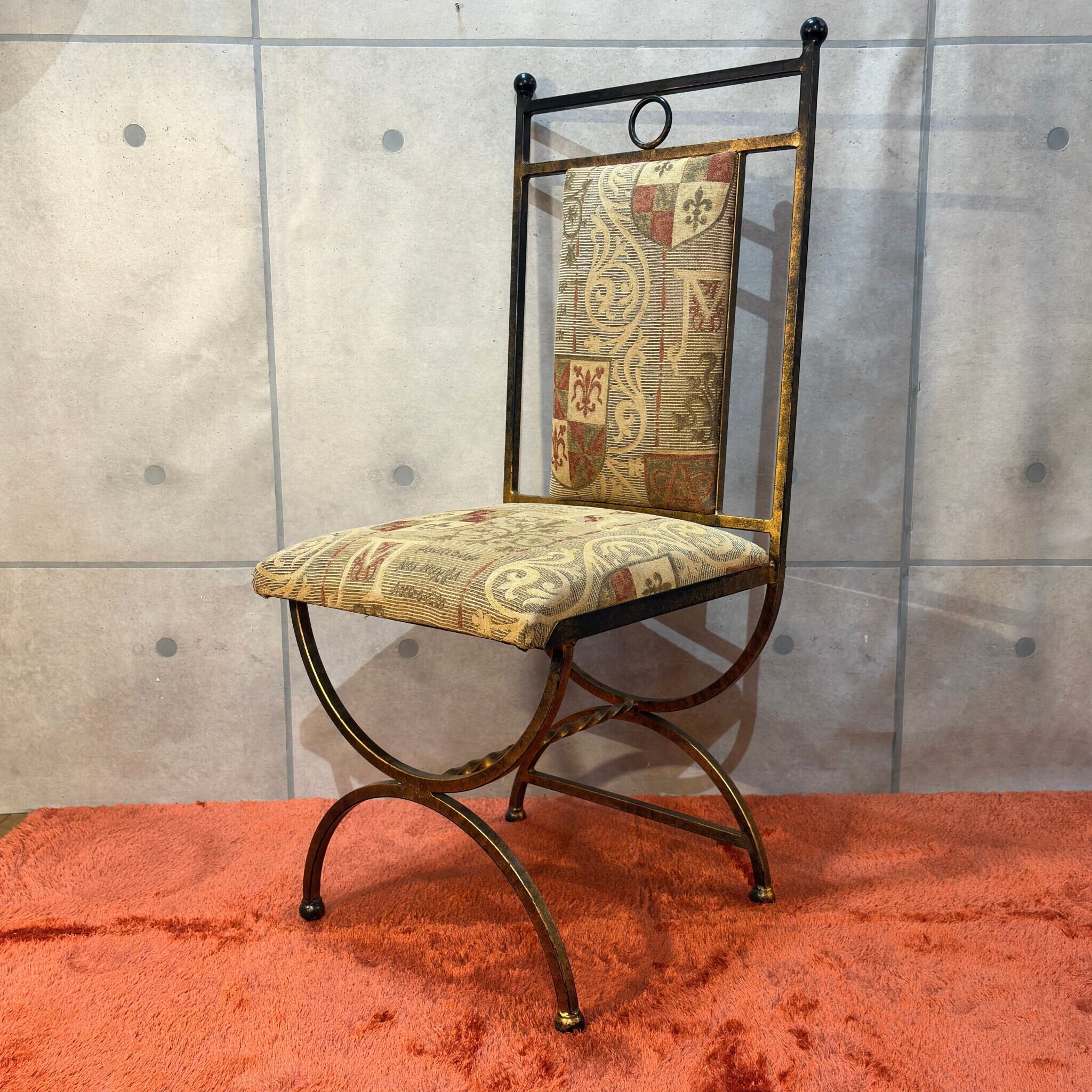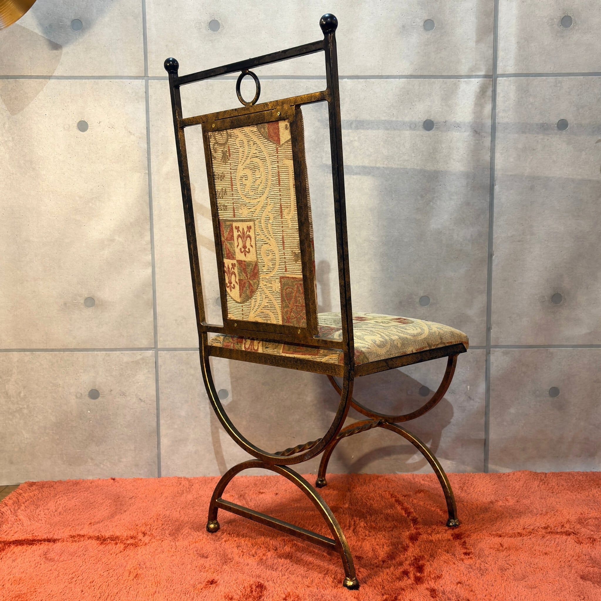 【VINTAGE】アイアンチェア タペストリー&サヴォナローラ風デザイン | クラシック アンティーク UKヴィンテージ