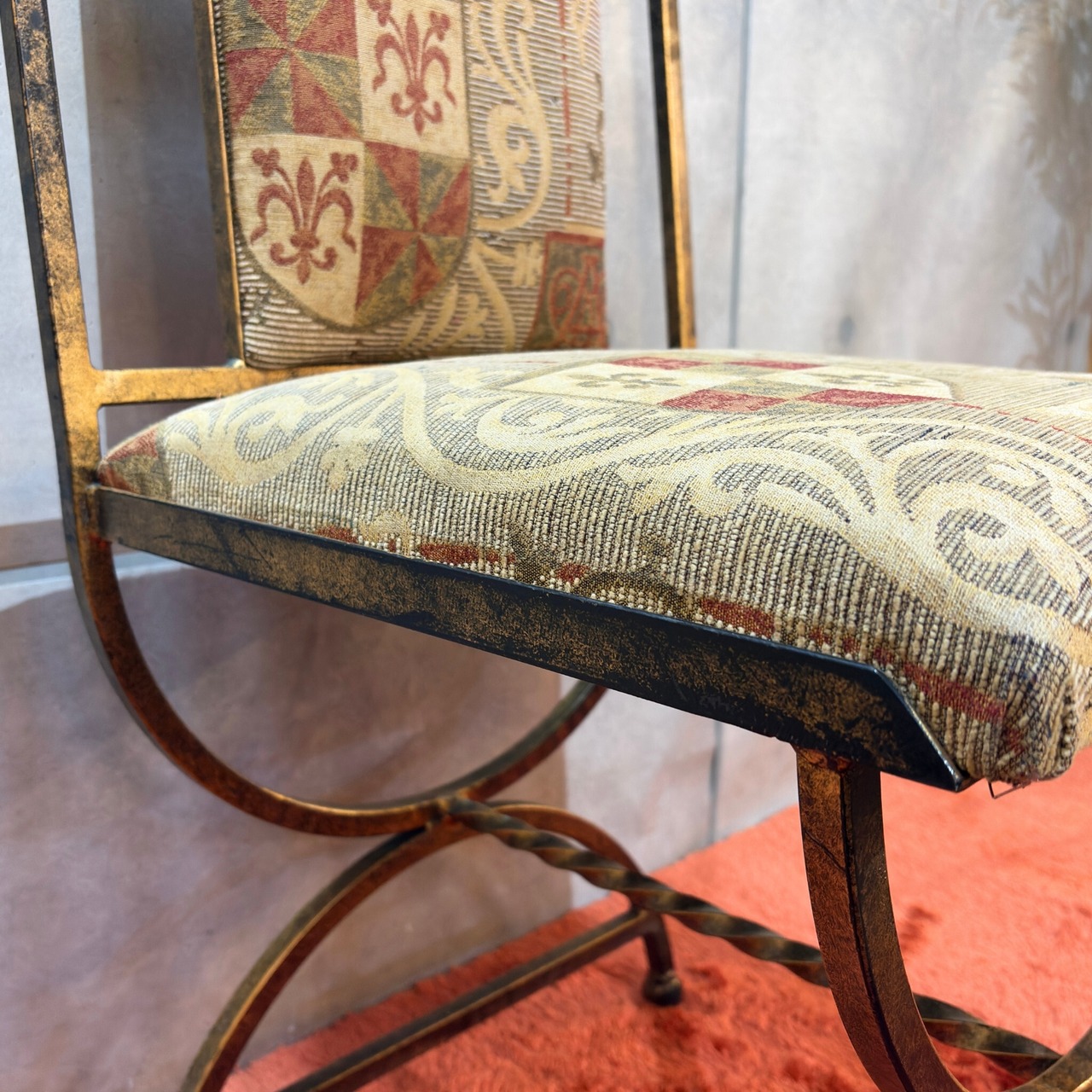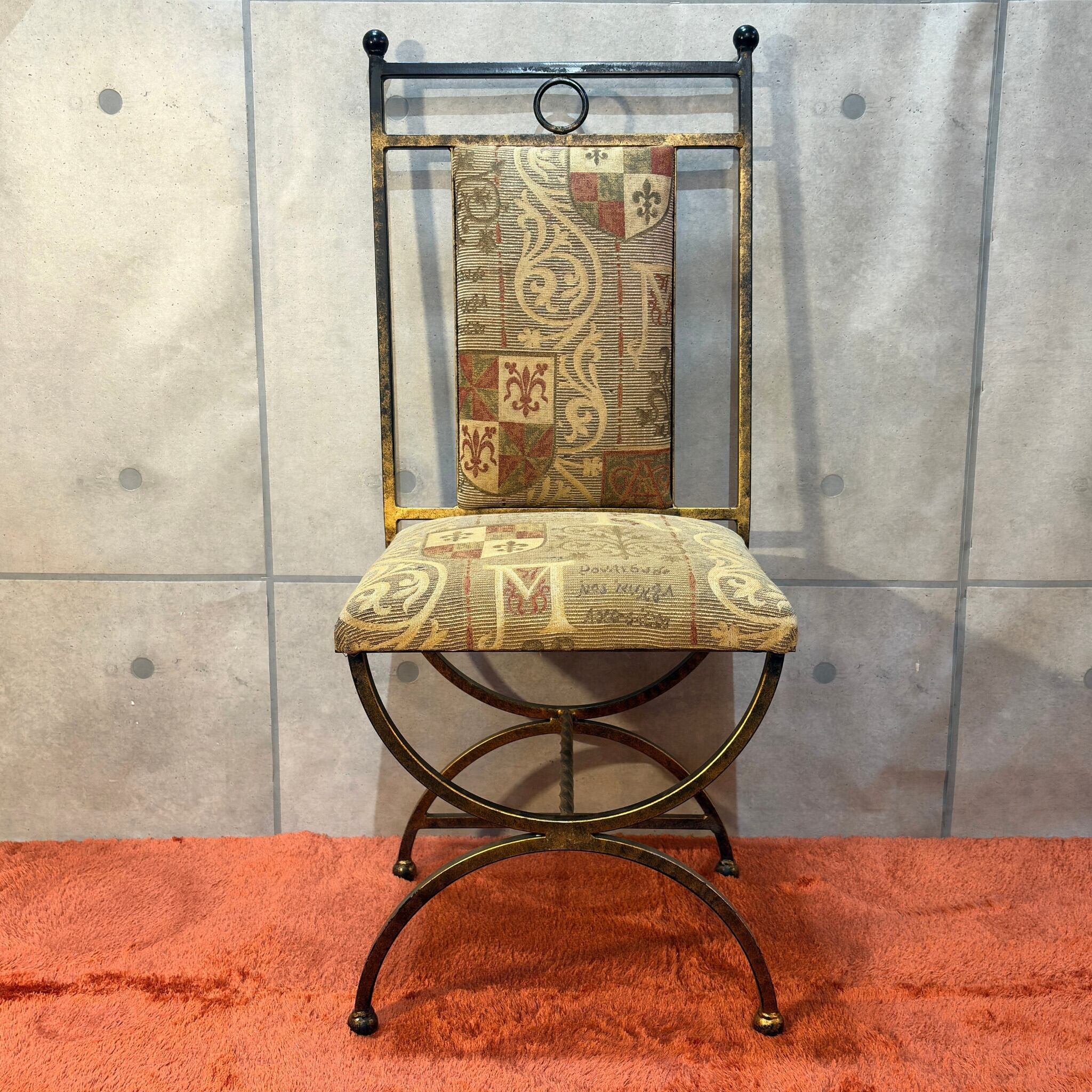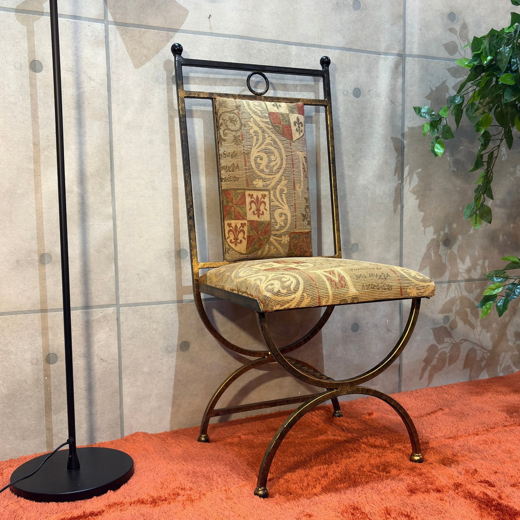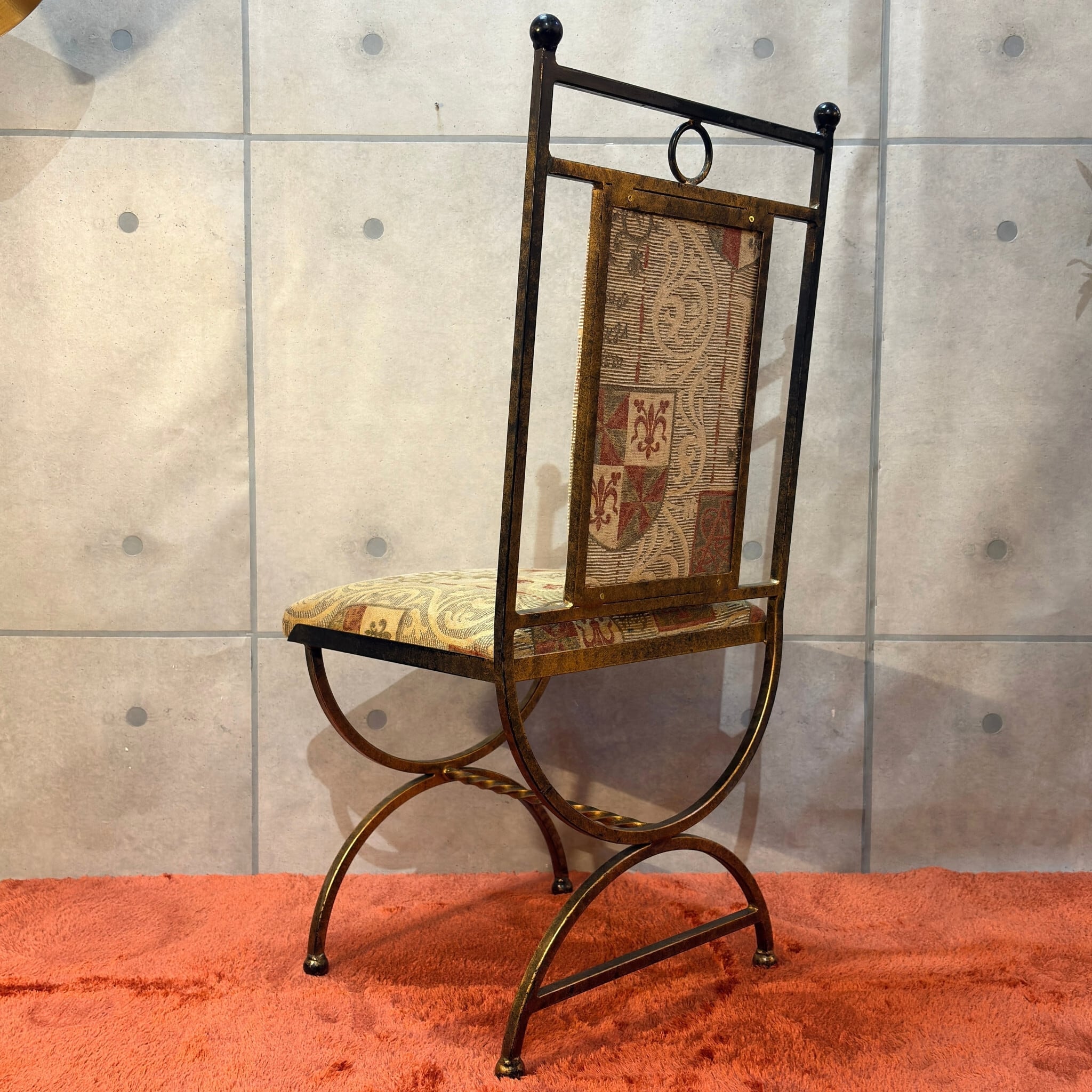 【VINTAGE】アイアンチェア タペストリー&サヴォナローラ風デザイン | クラシック アンティーク UKヴィンテージ