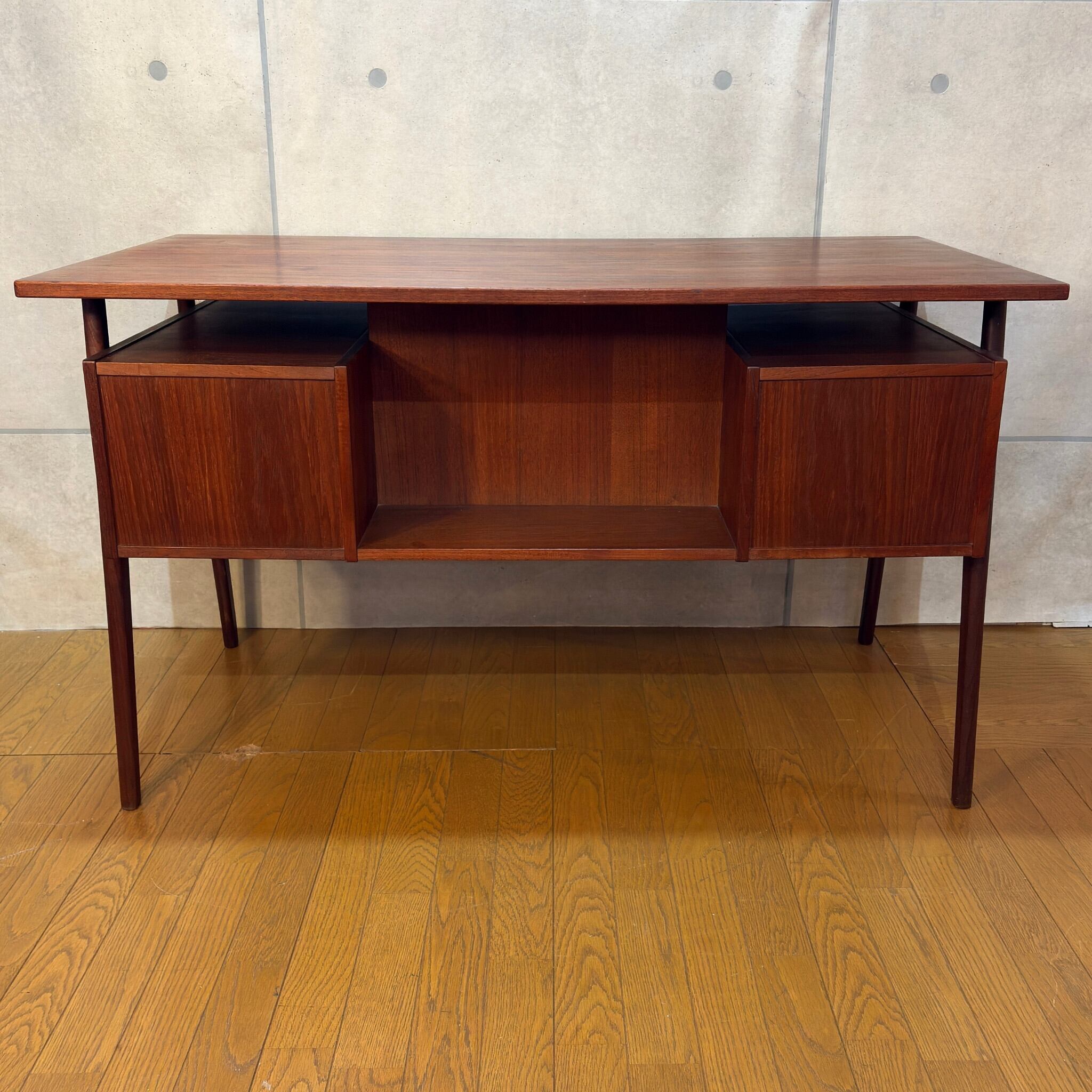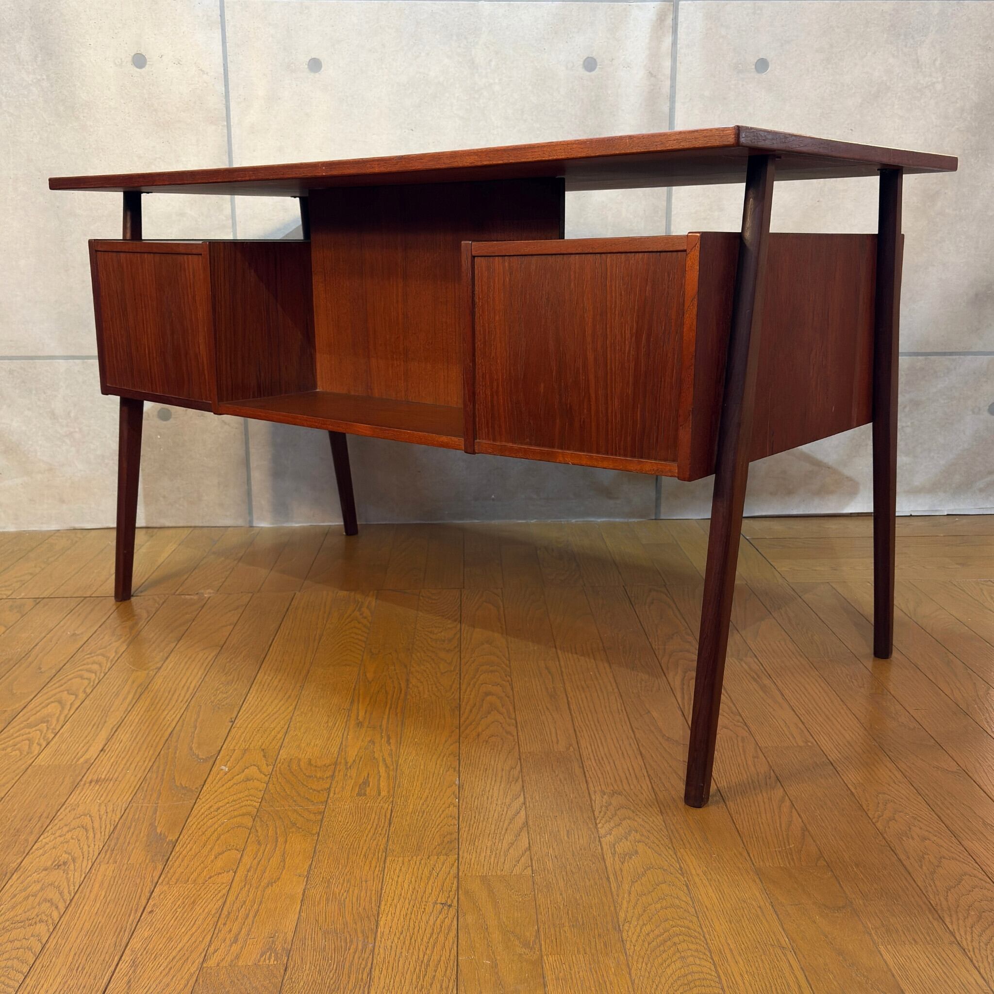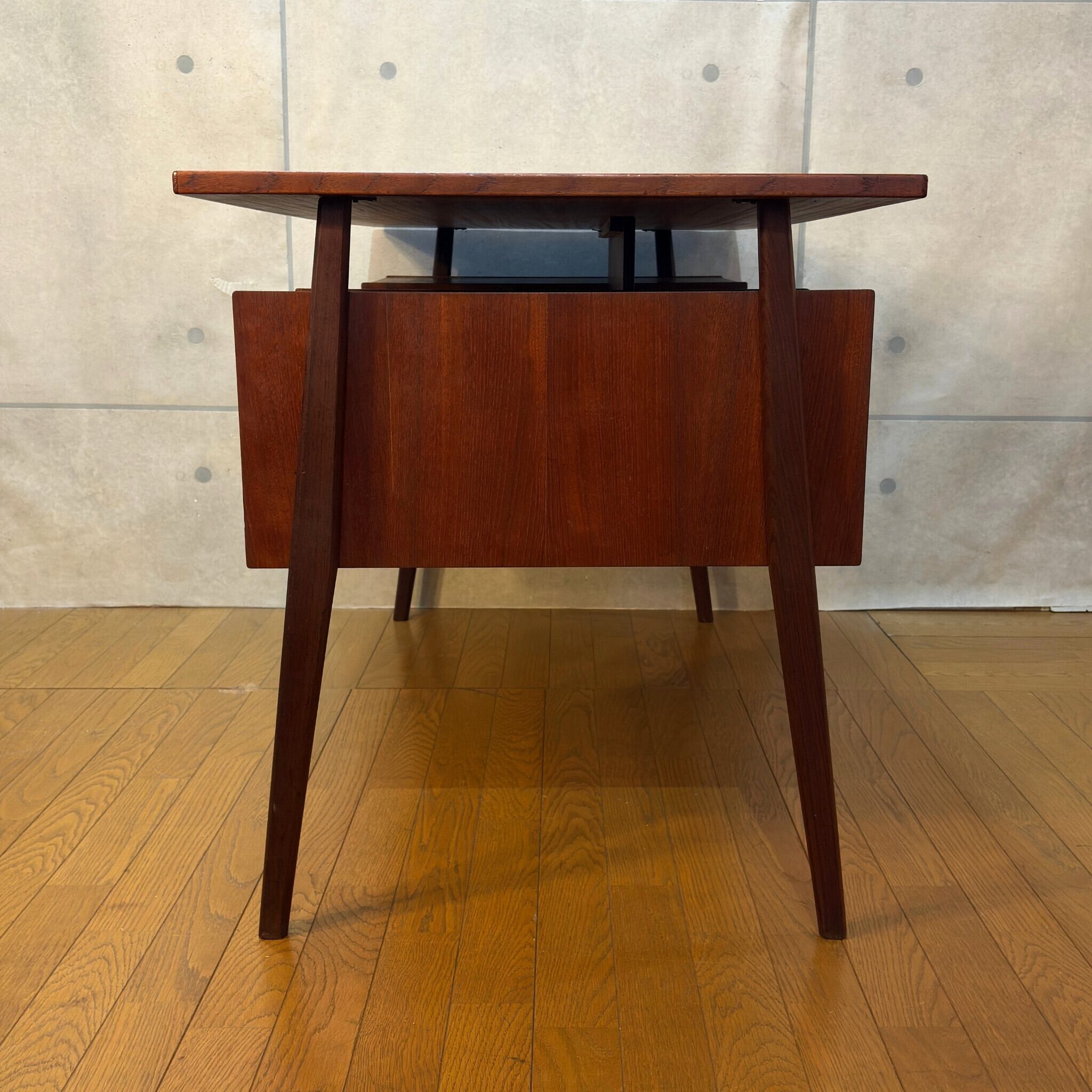 【VINTAGE】Tibergaard ティベルガード フローティングトップ パートナーデスク デンマーク 60s | チーク材 対面デスク 背面収納 両袖机 | 北欧ヴィンテージ Gunnar Nielsen