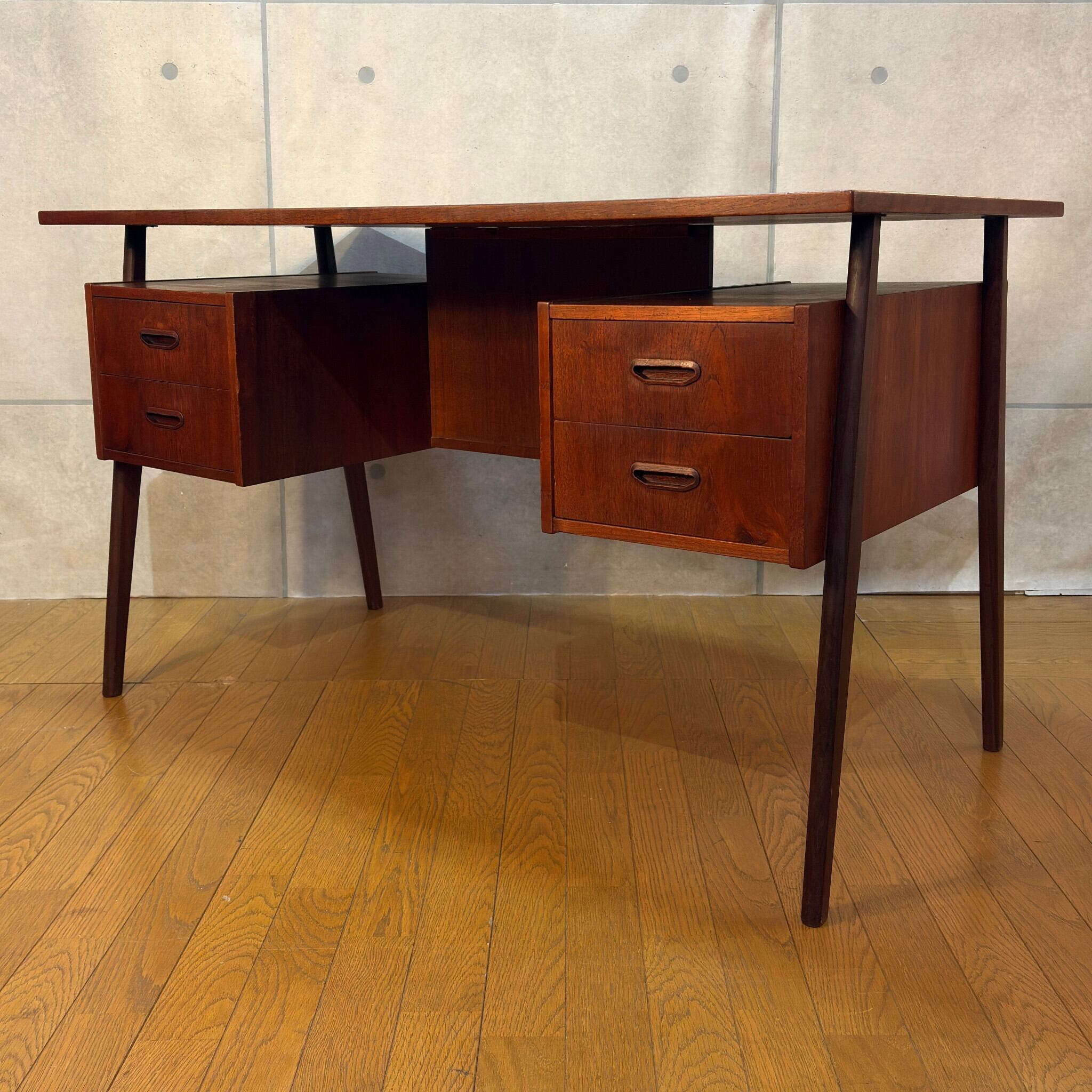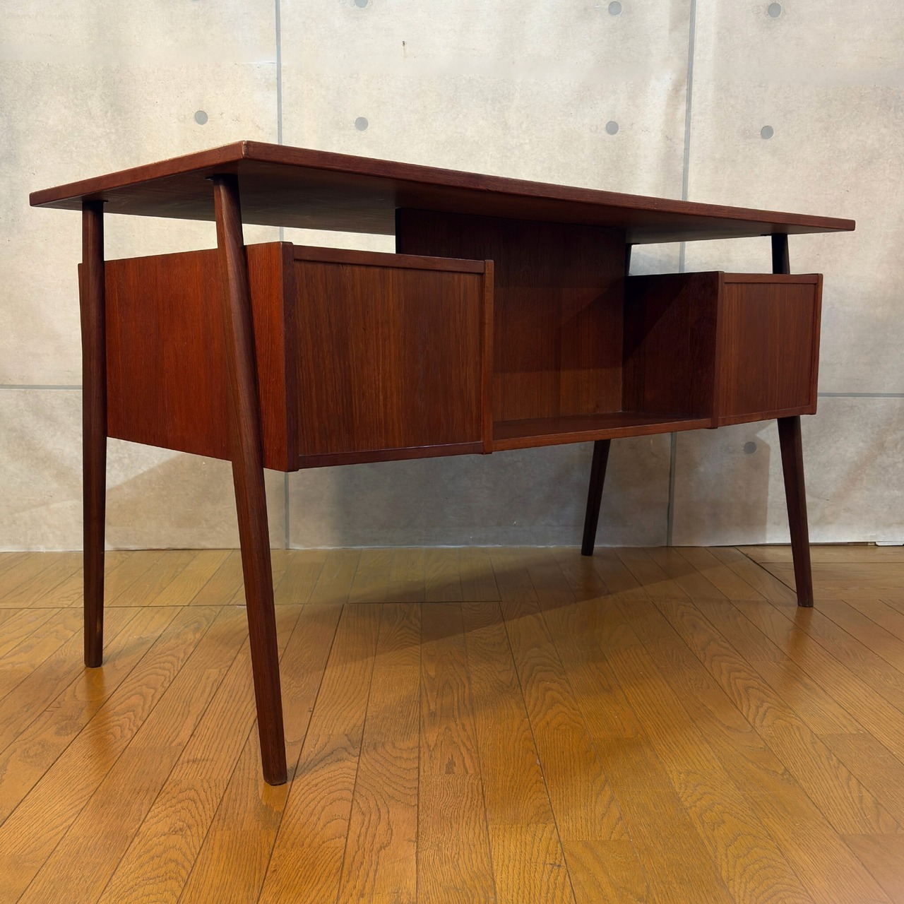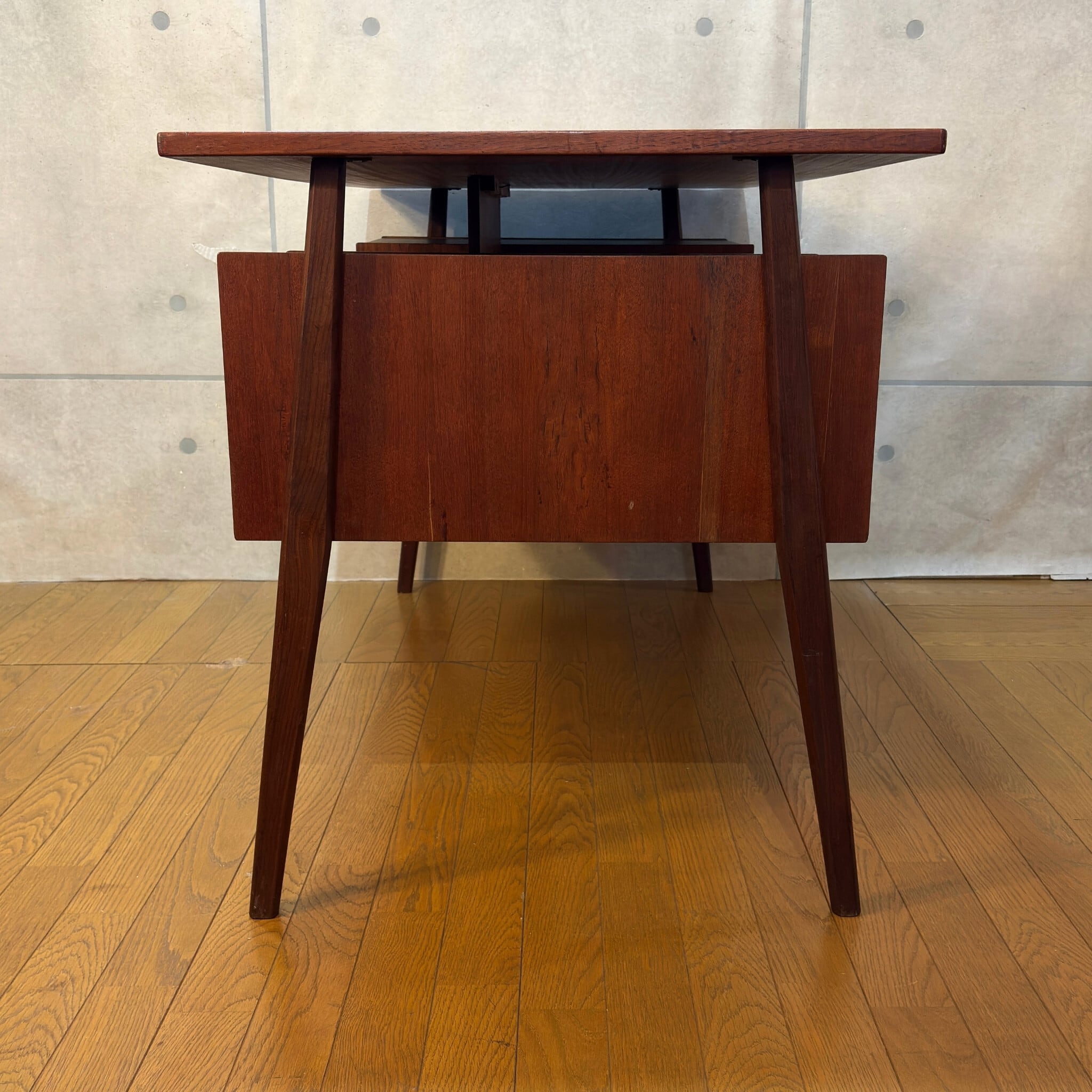 【VINTAGE】Tibergaard ティベルガード フローティングトップ パートナーデスク デンマーク 60s | チーク材 対面デスク 背面収納 両袖机 | 北欧ヴィンテージ Gunnar Nielsen