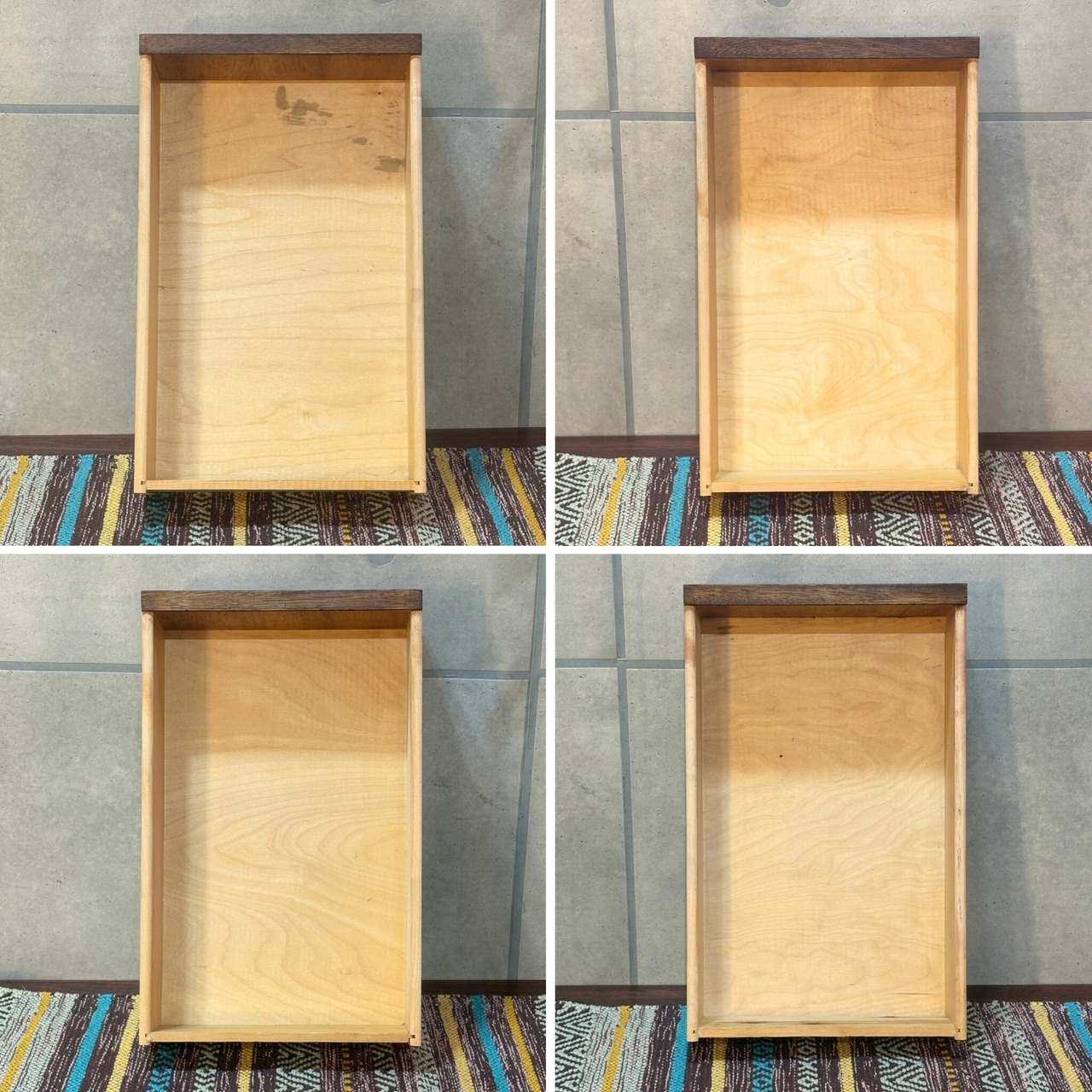引き出しの動作はスムーズです。向かって右下のみ少し固い感じがありますが、他の引き出しと比べてという事であり問題なく動作しています。内部はシミや汚れが多少ありますが使用に差し支えるものはありません。