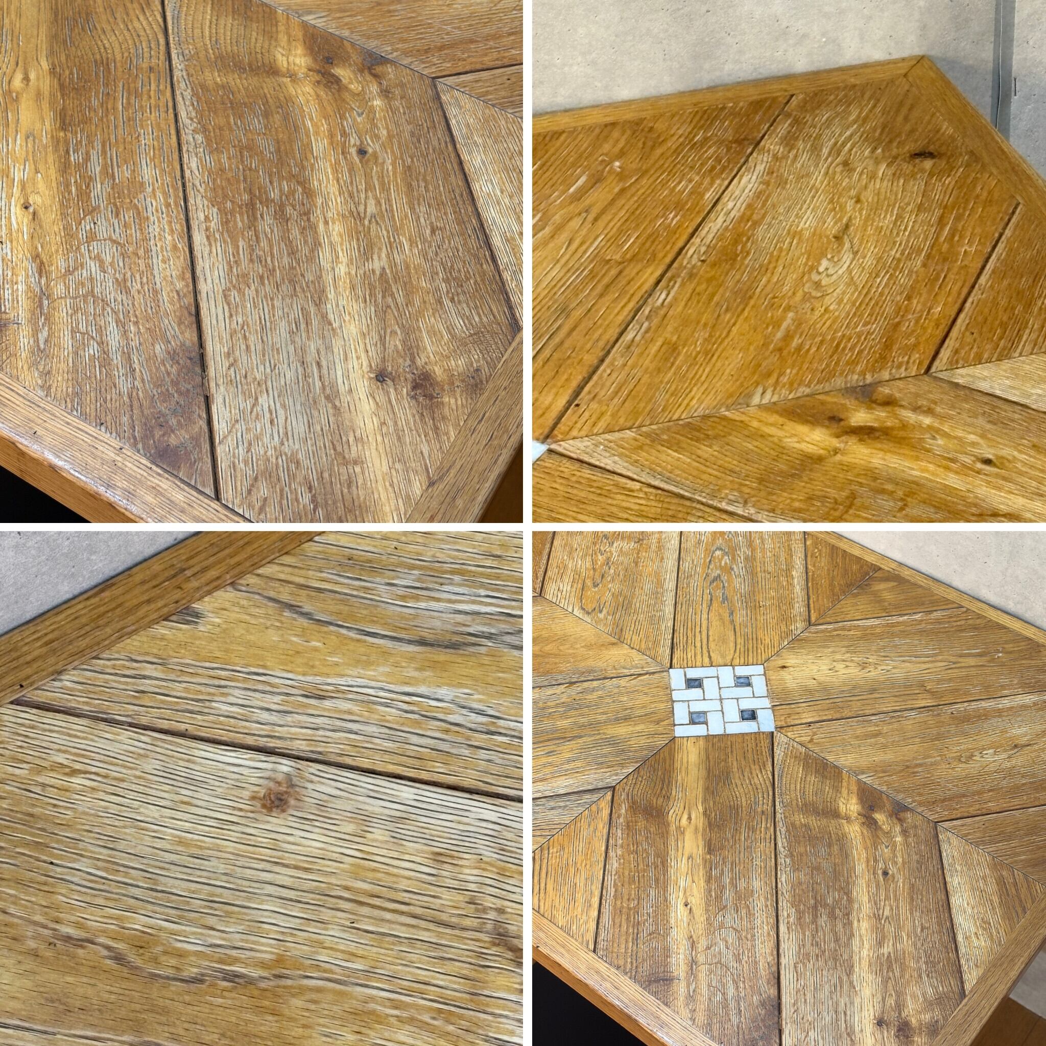 【VINTAGE】Oak Parquet & Tile Cafe Table / オーク材×鉄脚 パーケットとタイルのカフェテーブル