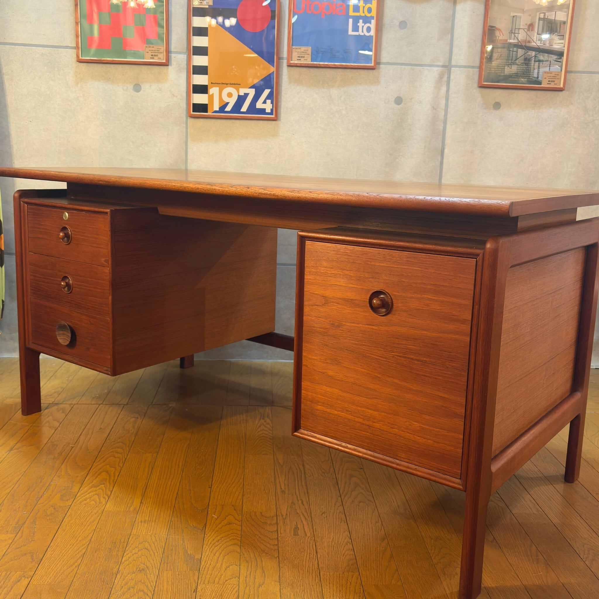【VINTAGE】Nakajima Mokugei Pedestal Desk / 中島木芸社 ジャパンヴィンテージ チーク材 デスク 机 1960s-70s