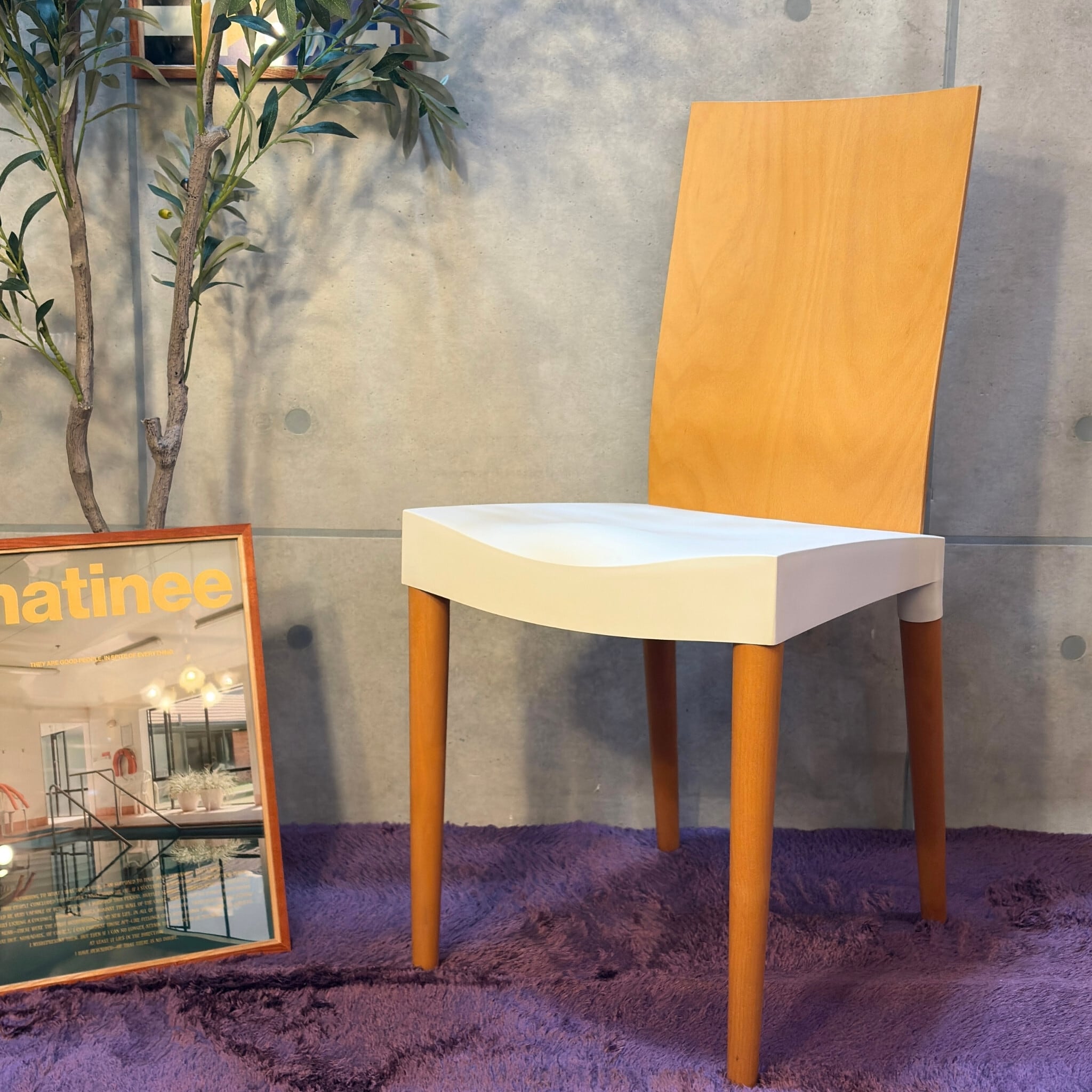 1998年製となります。 プラスチックと天然木(ビーチ材)という相反する素材をスタルク流の感性で見事に融合させた記念碑的なモデルです。ダイニングやデスクチェアとしてはもちろん、サイドチェアとして置いておくだけでも非常に絵になる一脚です。